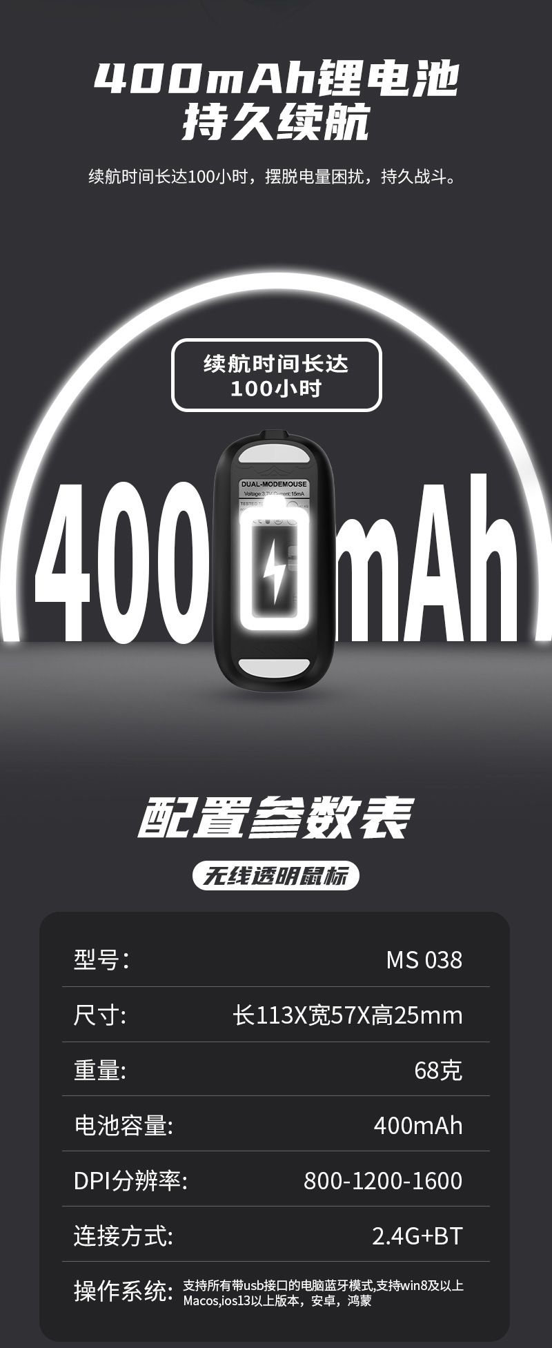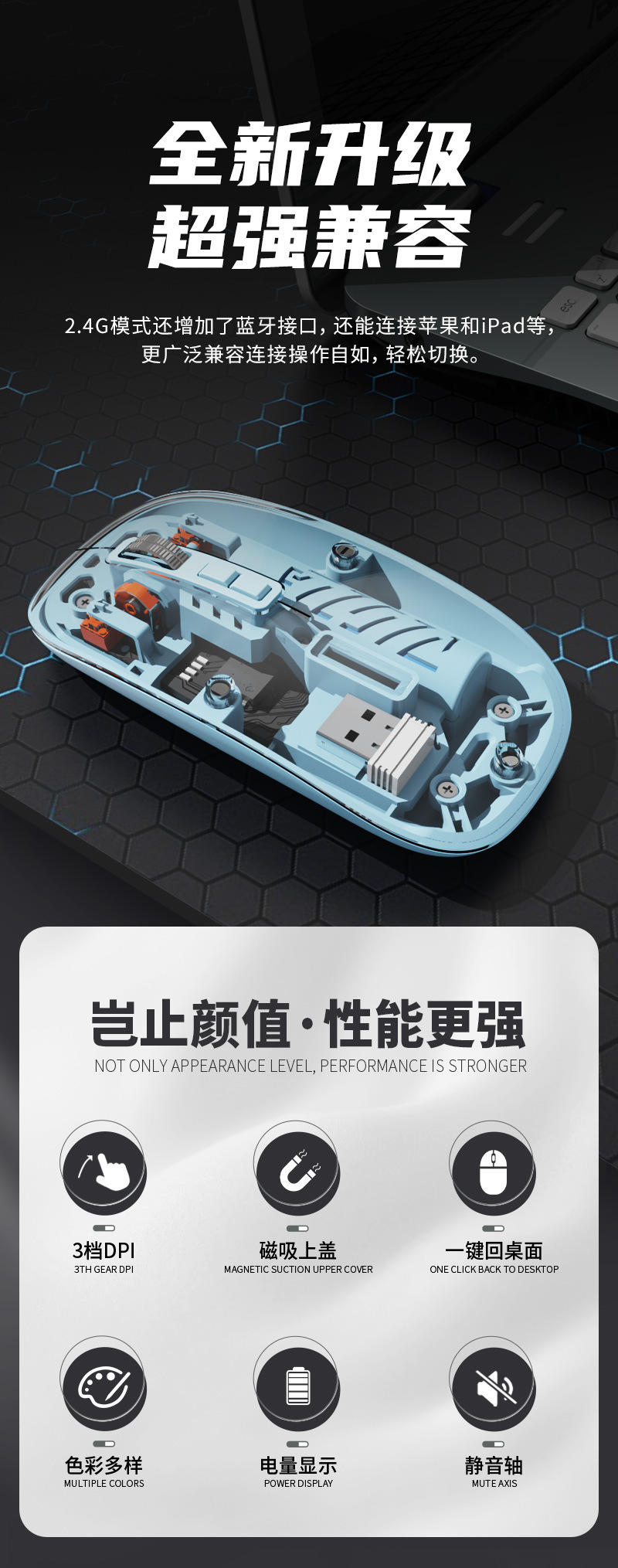투명한 무선 블루투스 듀얼 모드 음소거 마우스 사무실 광전 게임 마우스 컴퓨터 2.4G 충전식 마우스스토어 가기