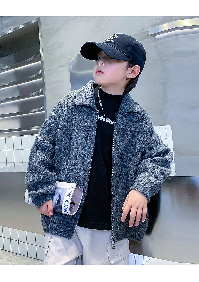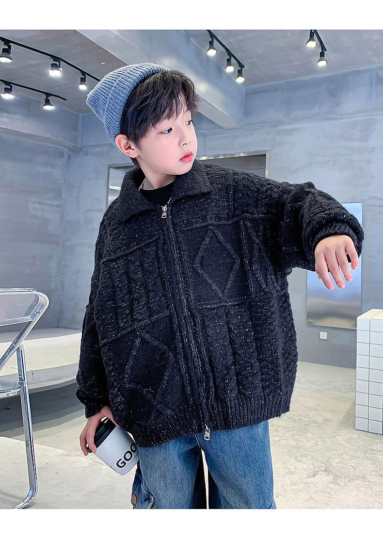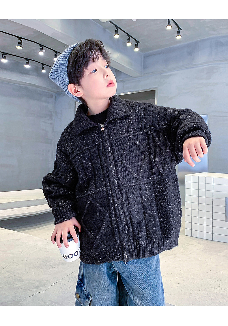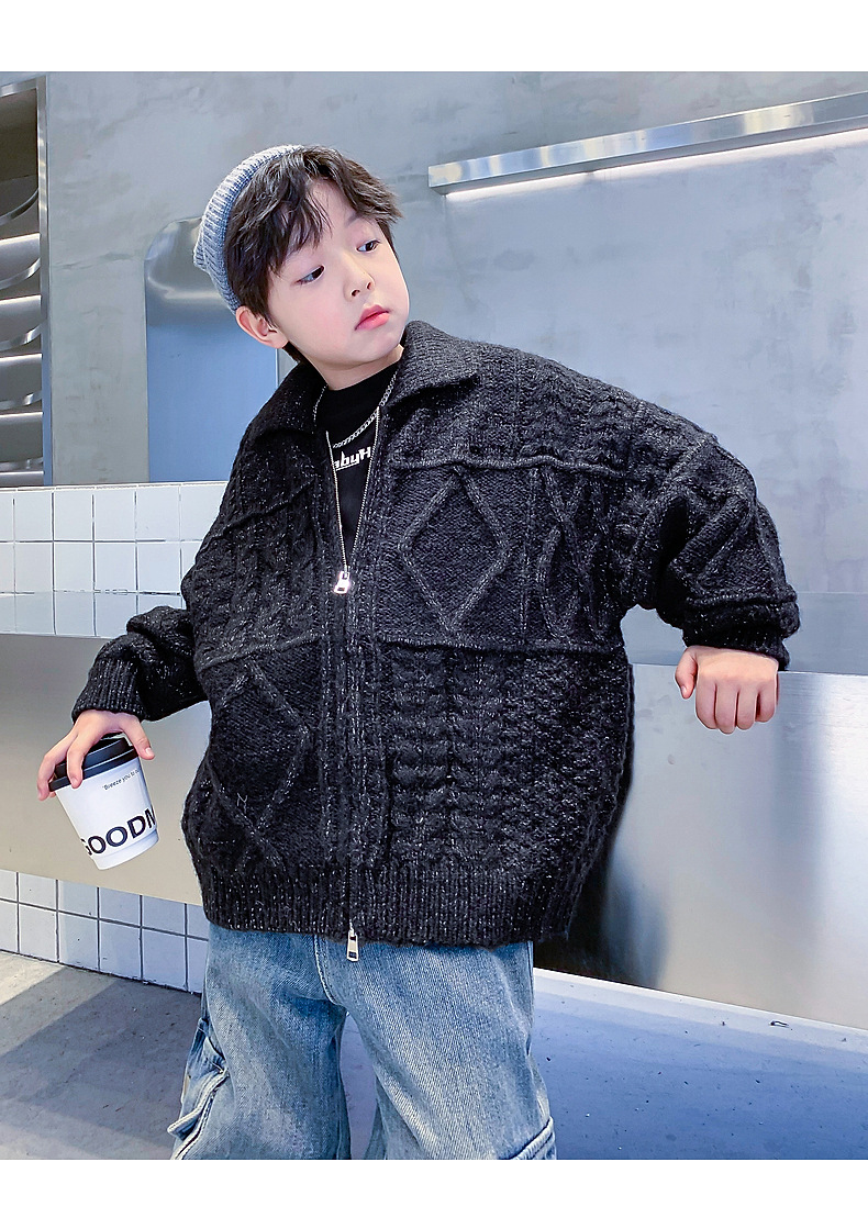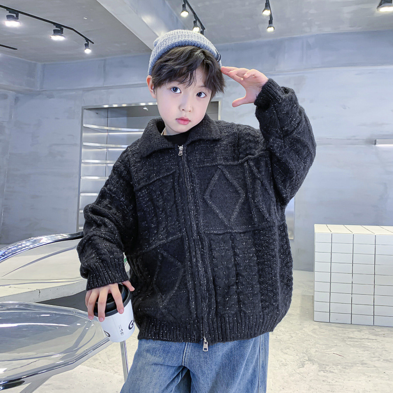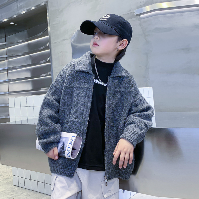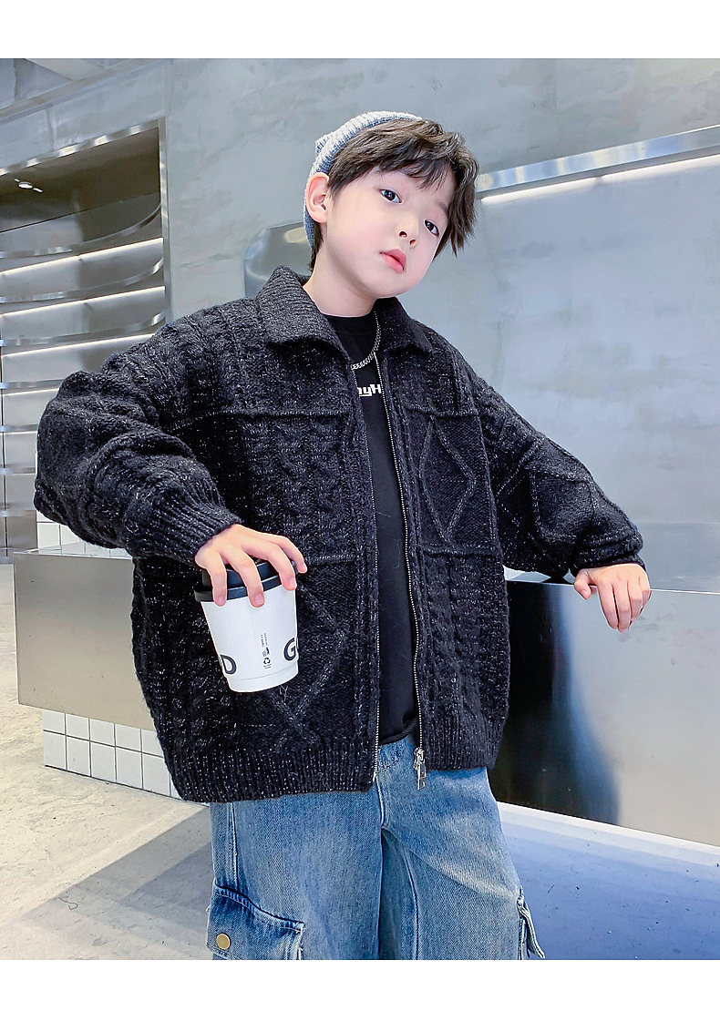 남아용 겨울옷 한국 스타일 두꺼운 니트 자켓 2025년 신상 중대형 아동 가을 겨울 멋진 가디건 스웨터 트렌디스토어 가기