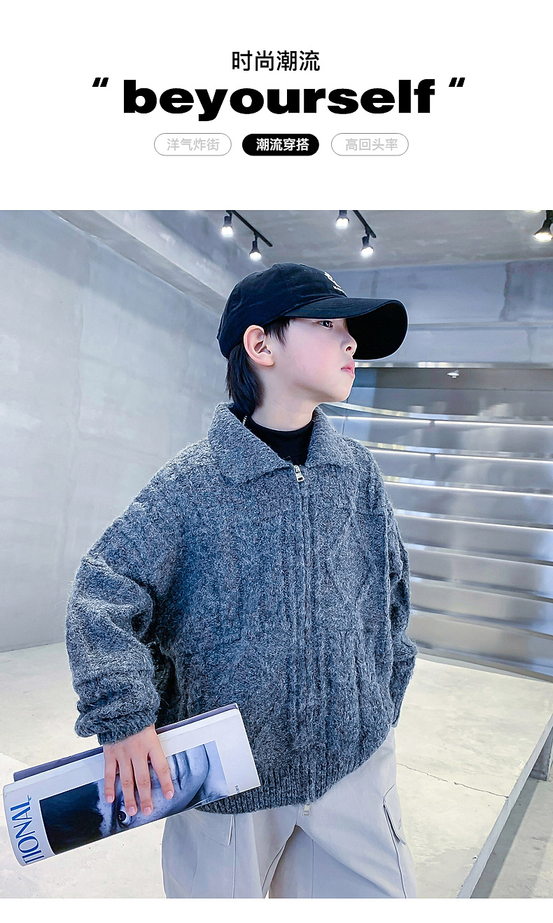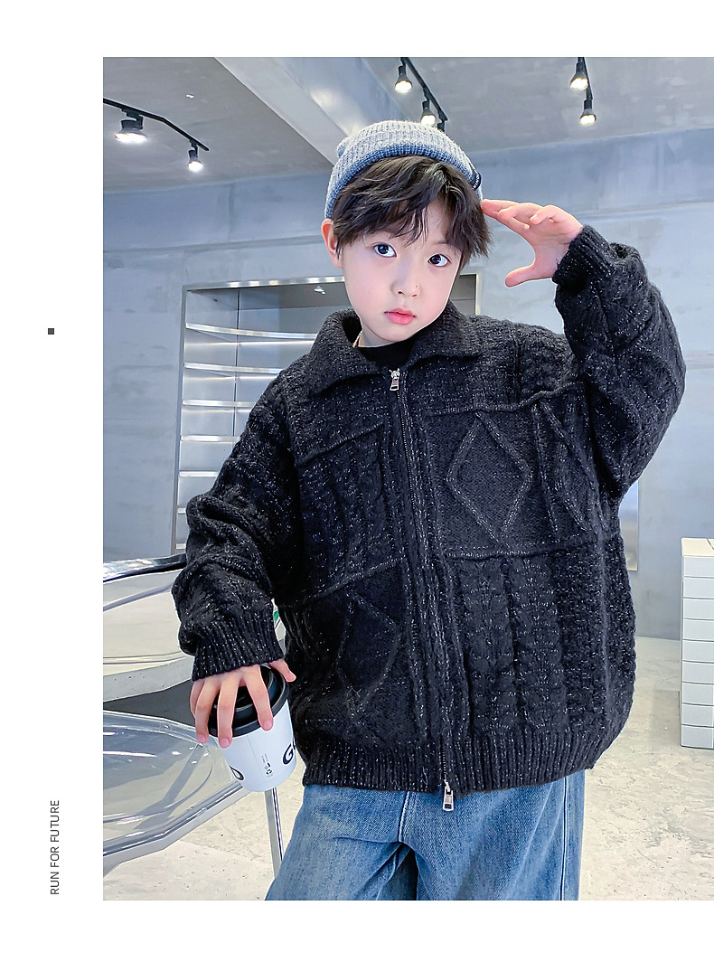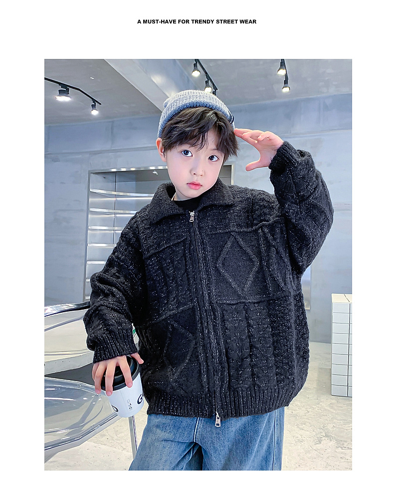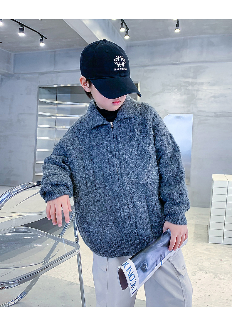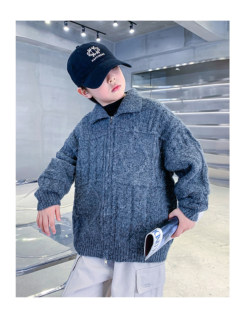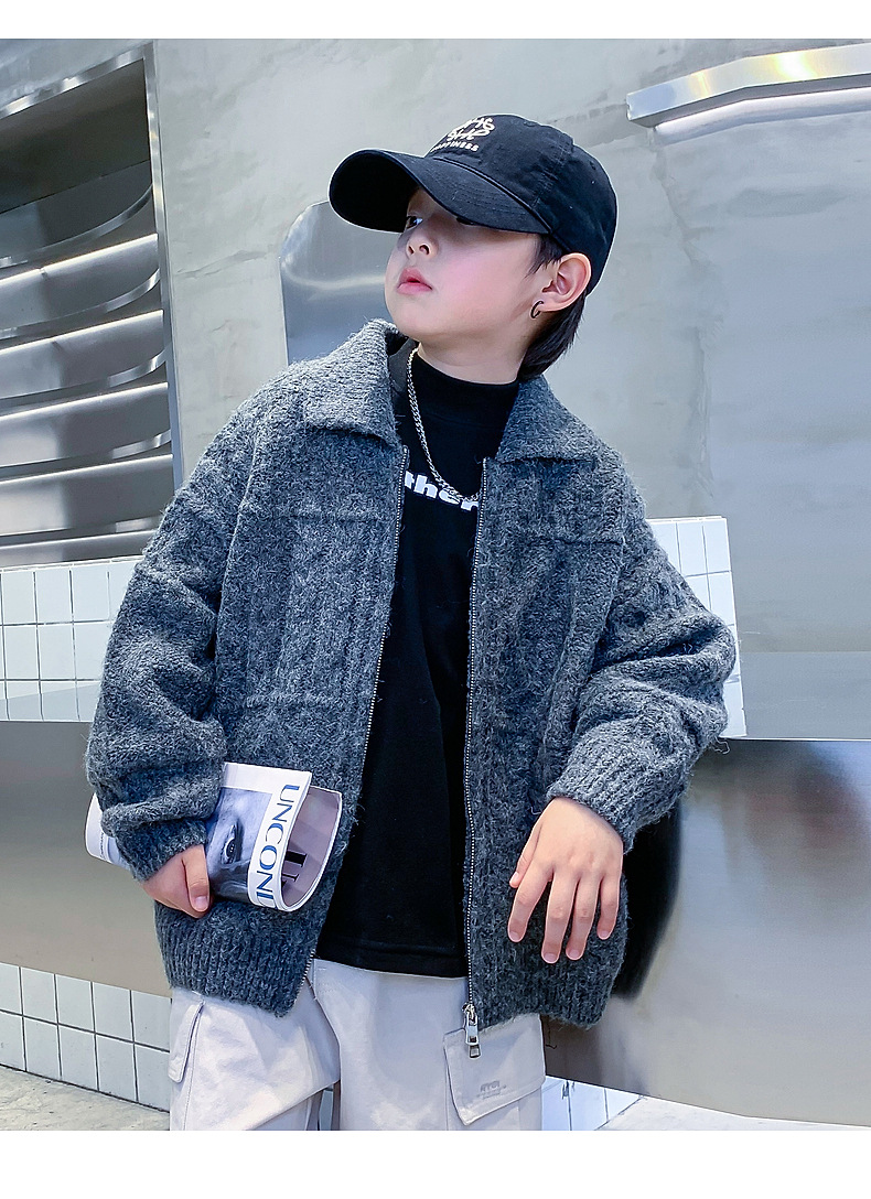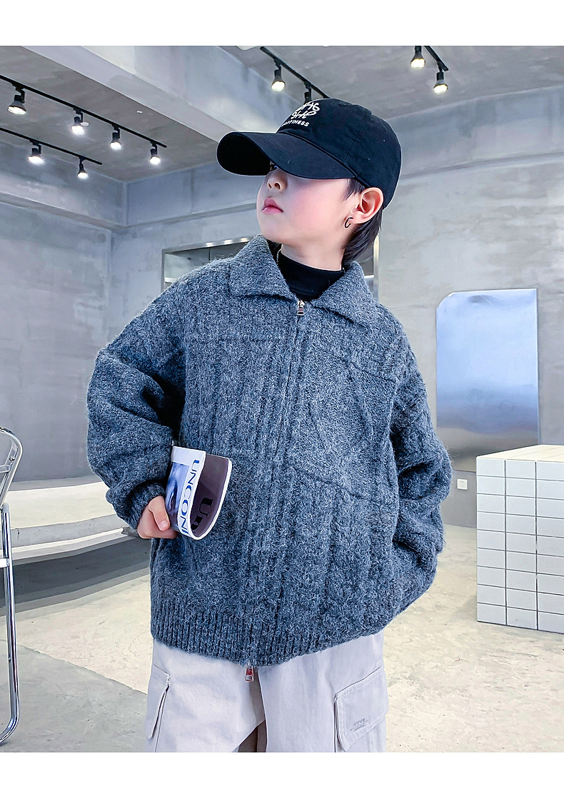 남아용 겨울옷 한국 스타일 두꺼운 니트 자켓 2025년 신상 중대형 아동 가을 겨울 멋진 가디건 스웨터 트렌디스토어 가기
