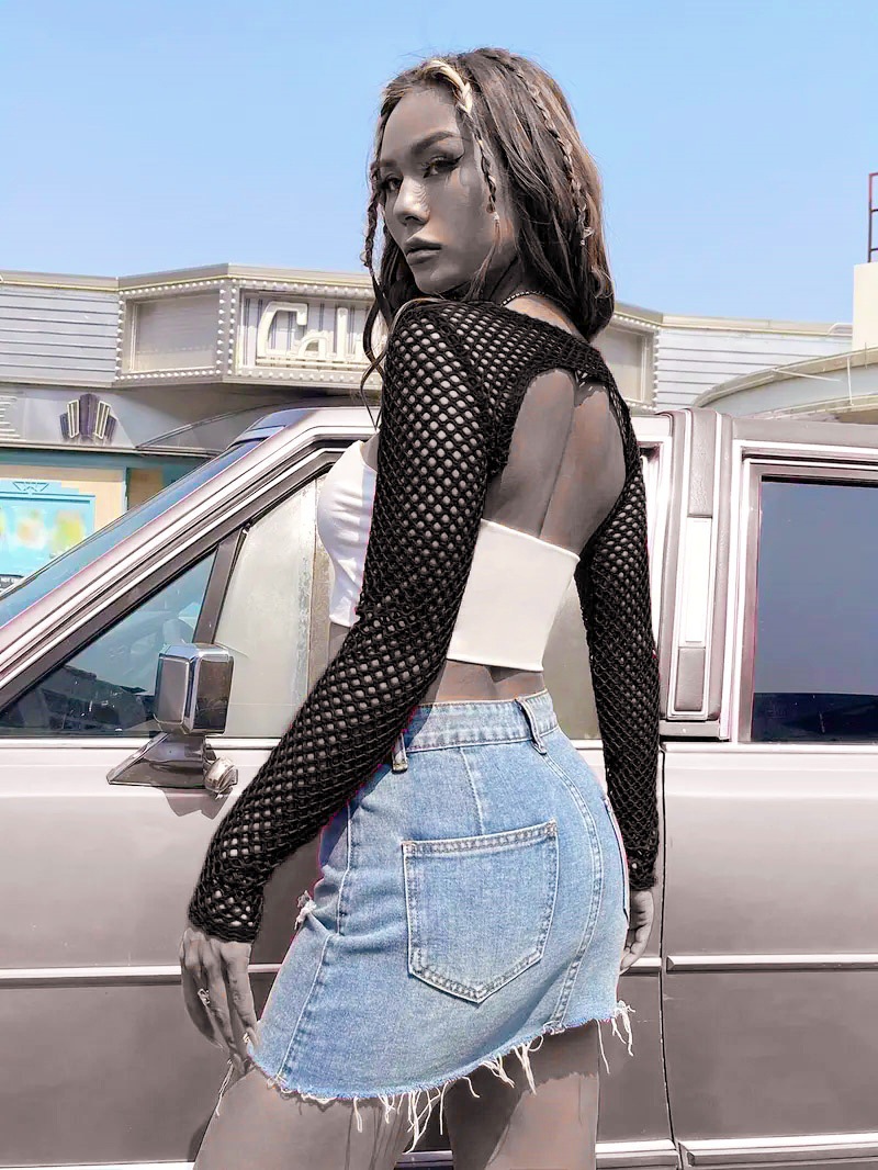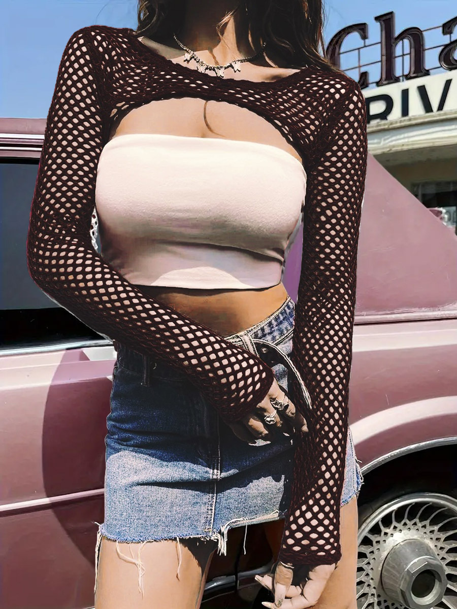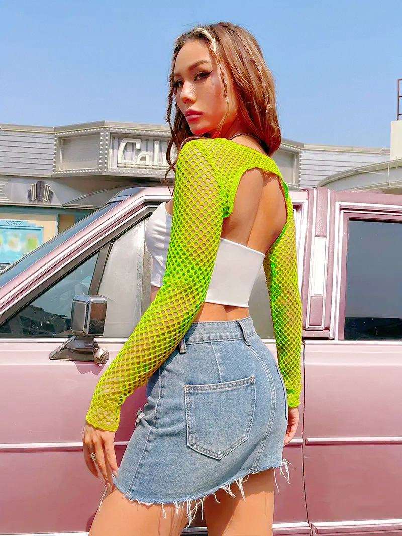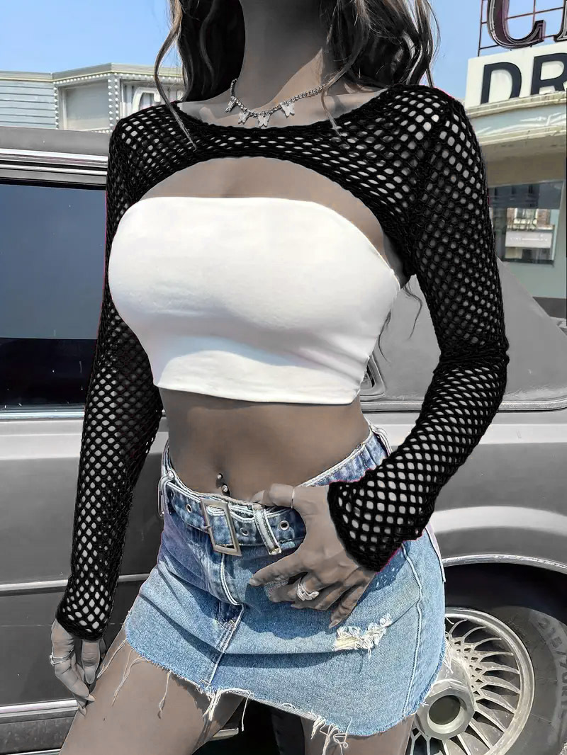 아마존 메쉬 탑 티셔츠 유럽과 미국의 할로우 메쉬 티셔츠 셔츠 크로스 보더 여성용 새로운 핫 걸 티셔츠