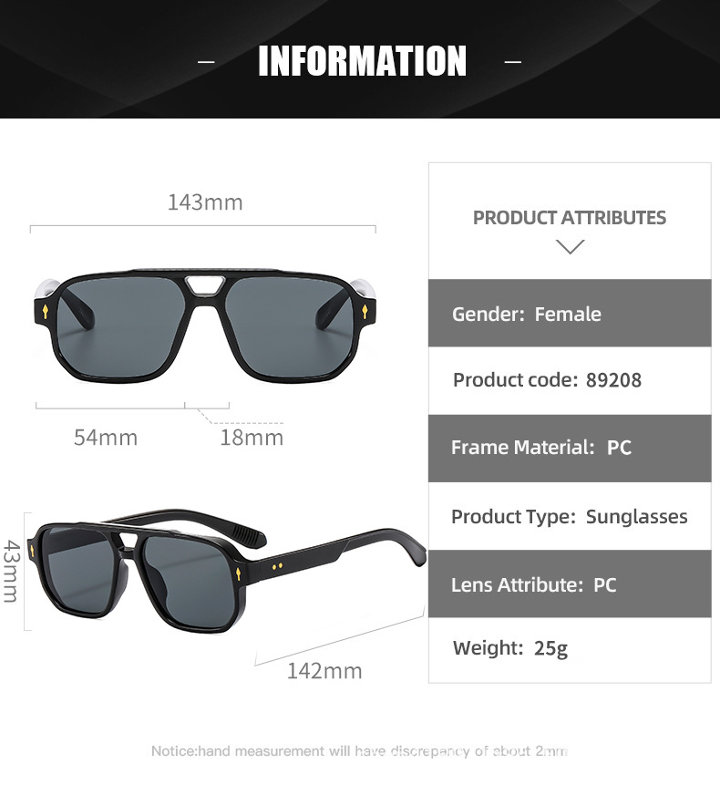 새로운 패션 더블 빔 쌀 네일 선글라스 유니섹스 캐주얼 야외 선글라스 크로스 미러