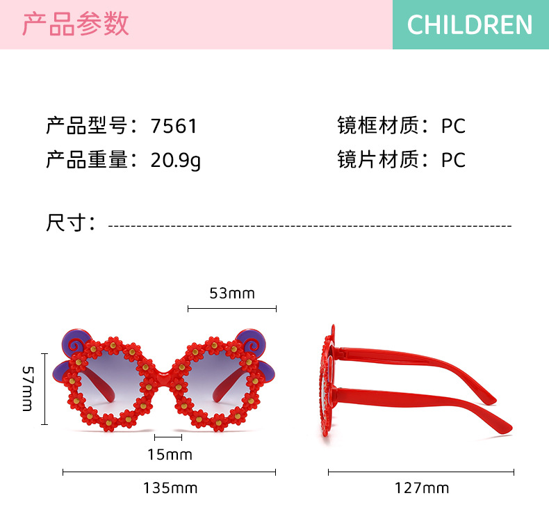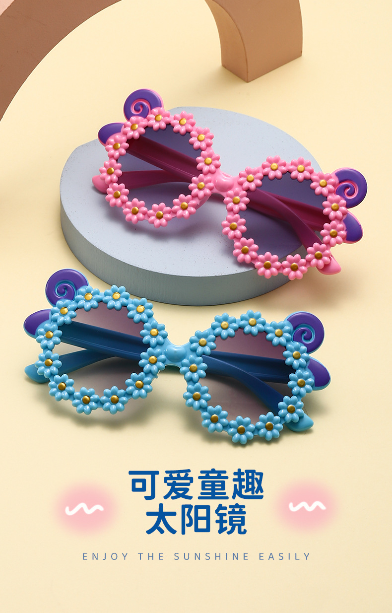어린이 선글라스 작은 데이지 어린이 귀여운 아기 유행 선글라스 소년 소녀 자외선 방지 꽃 안경 파티