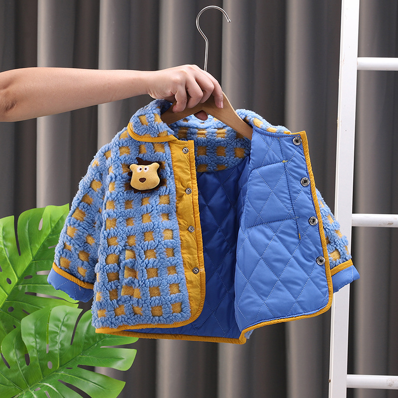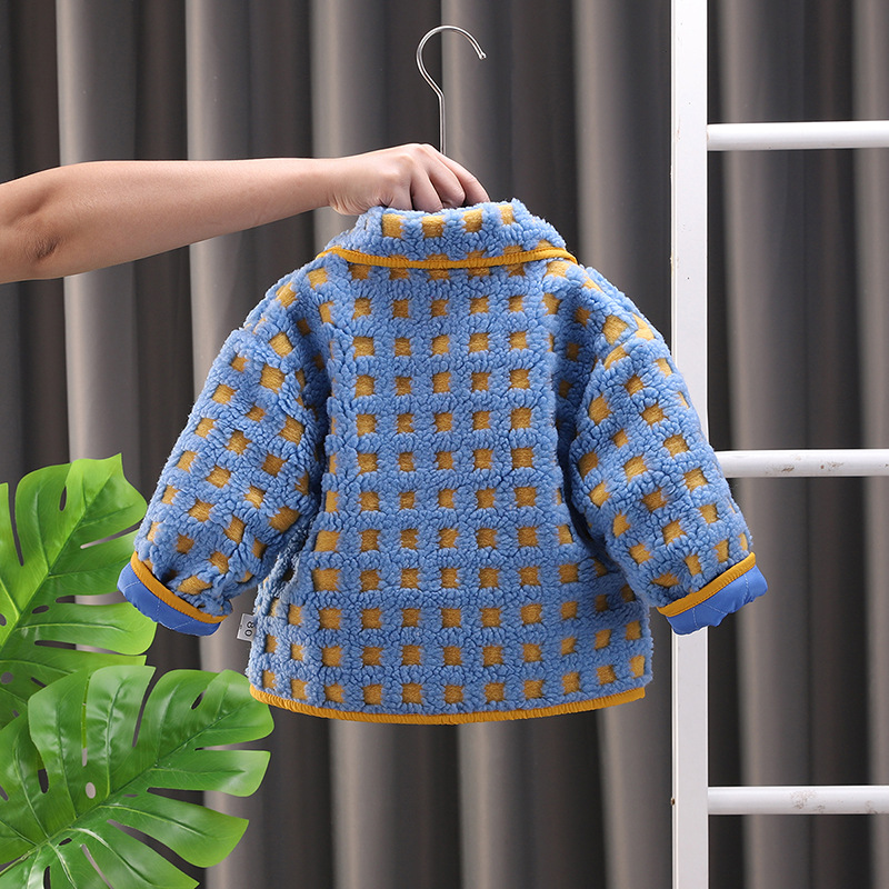 아기의 세련된 격자 무늬 겨울 코트 2024 겨울 새 소년과 소녀 따뜻한 카디건 유행 어린이 탑스토어 가기