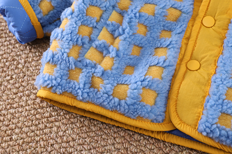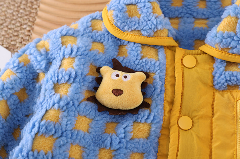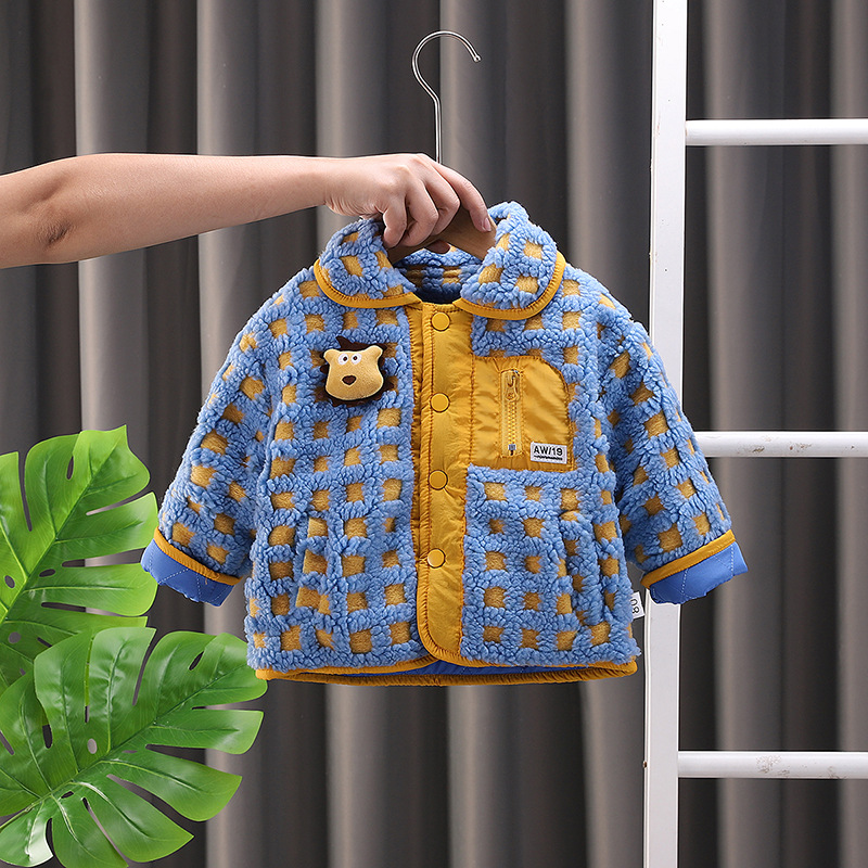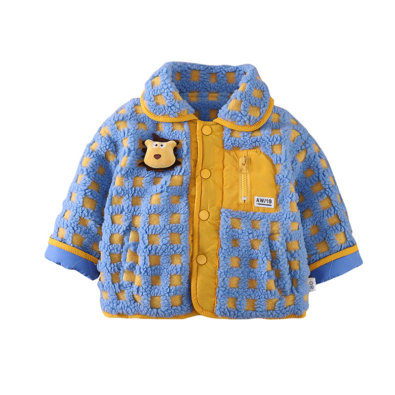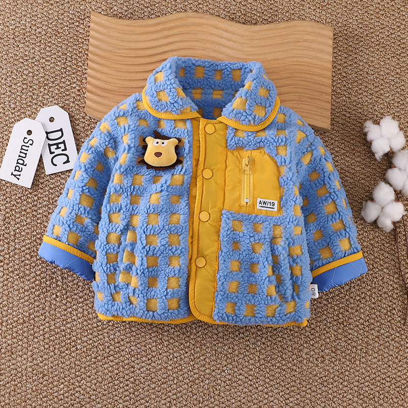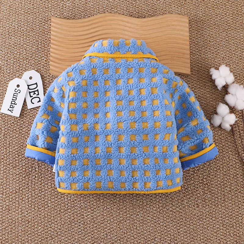 아기의 세련된 격자 무늬 겨울 코트 2024 겨울 새 소년과 소녀 따뜻한 카디건 유행 어린이 탑