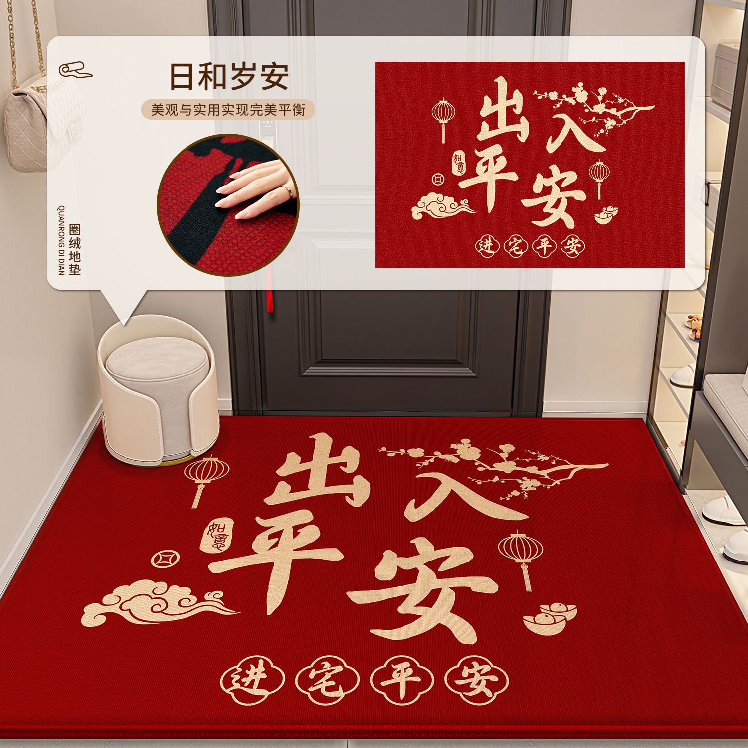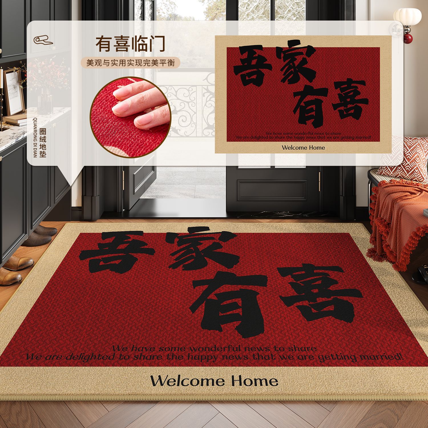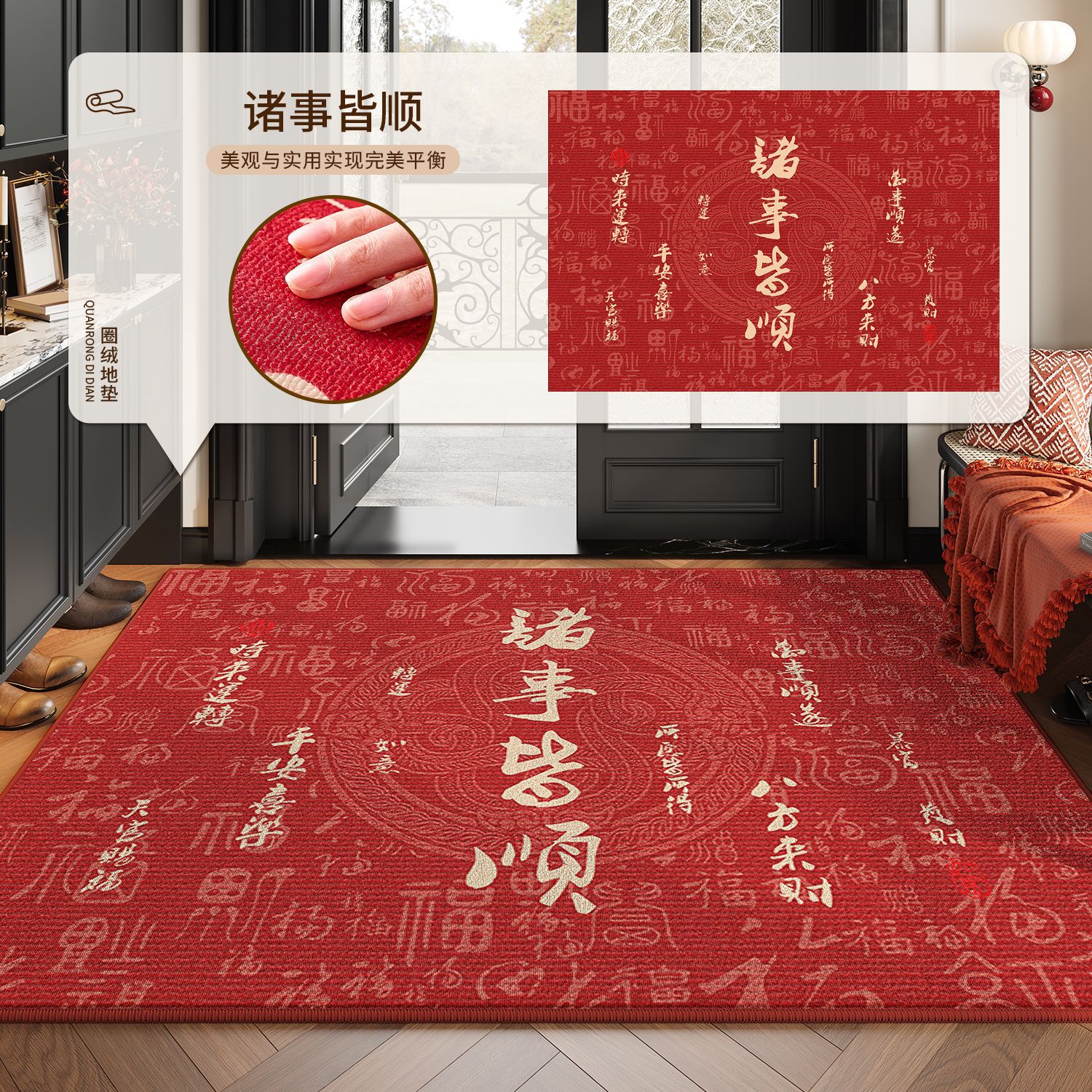 현관문 매트, 말년 매트, 고급스러운 느낌의 출입구 매트, 오염 방지 미끄럼 방지 카펫, 가정용 빨간색 현관 매트
