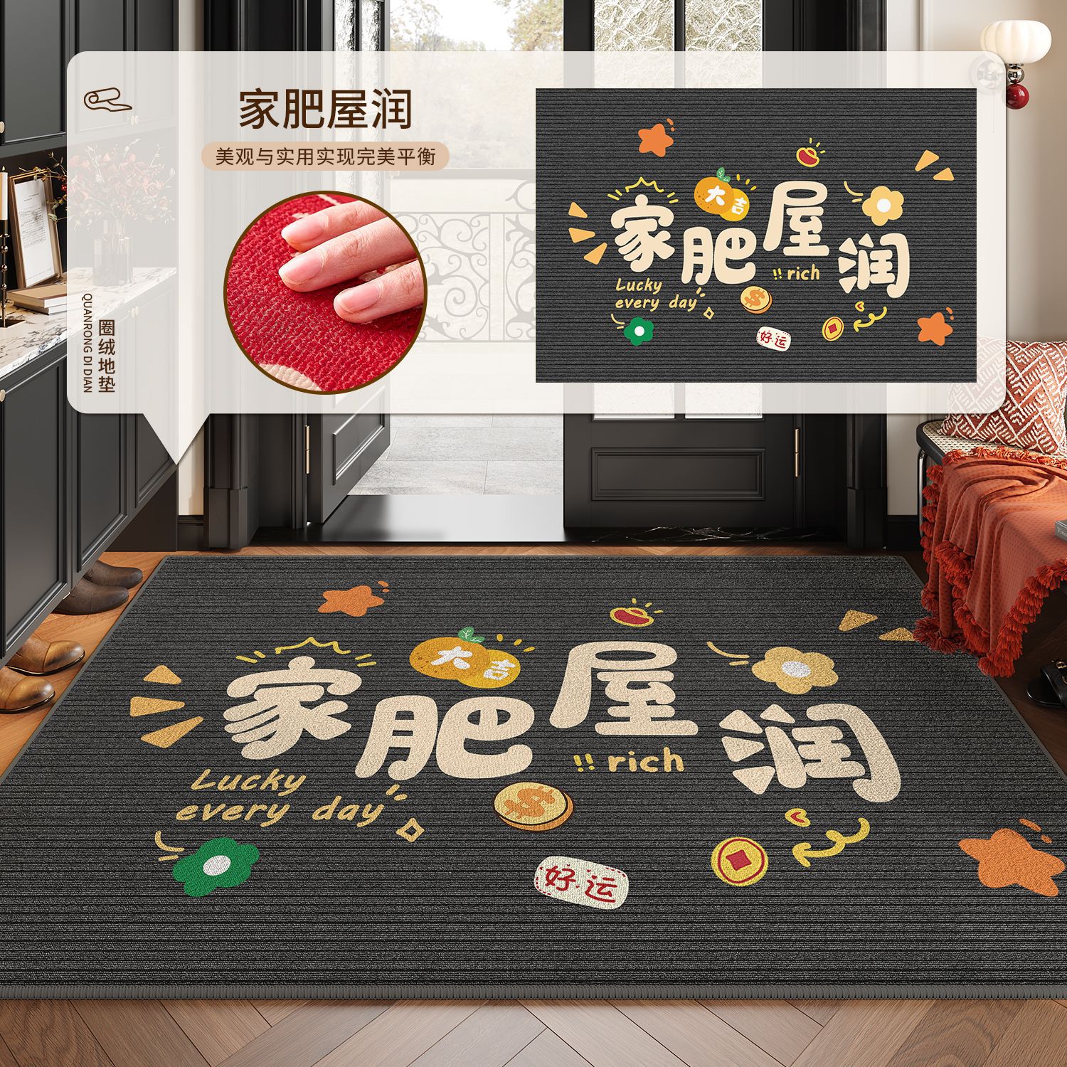 현관문 매트, 말년 매트, 고급스러운 느낌의 출입구 매트, 오염 방지 미끄럼 방지 카펫, 가정용 빨간색 현관 매트스토어 가기