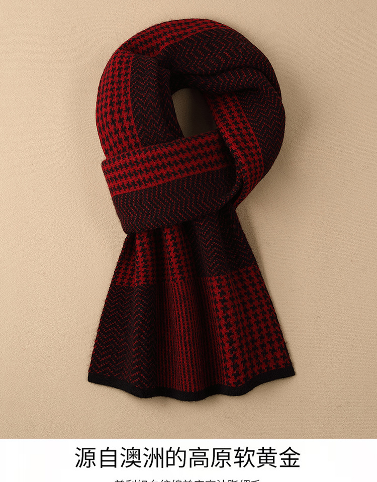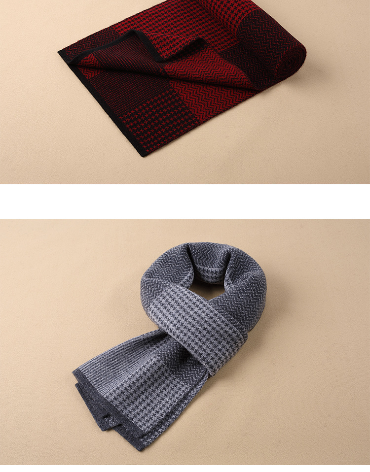 새로운 다용도 100% 순모 스카프 남성용 겨울 두꺼운 격자무늬 따뜻한 비즈니스 니트 스카프 도매가