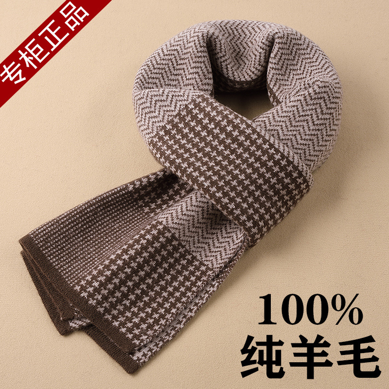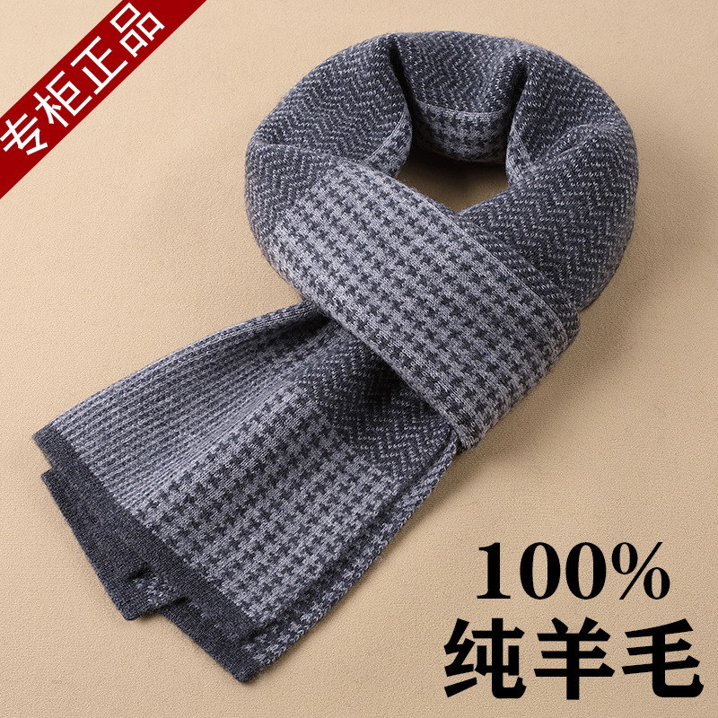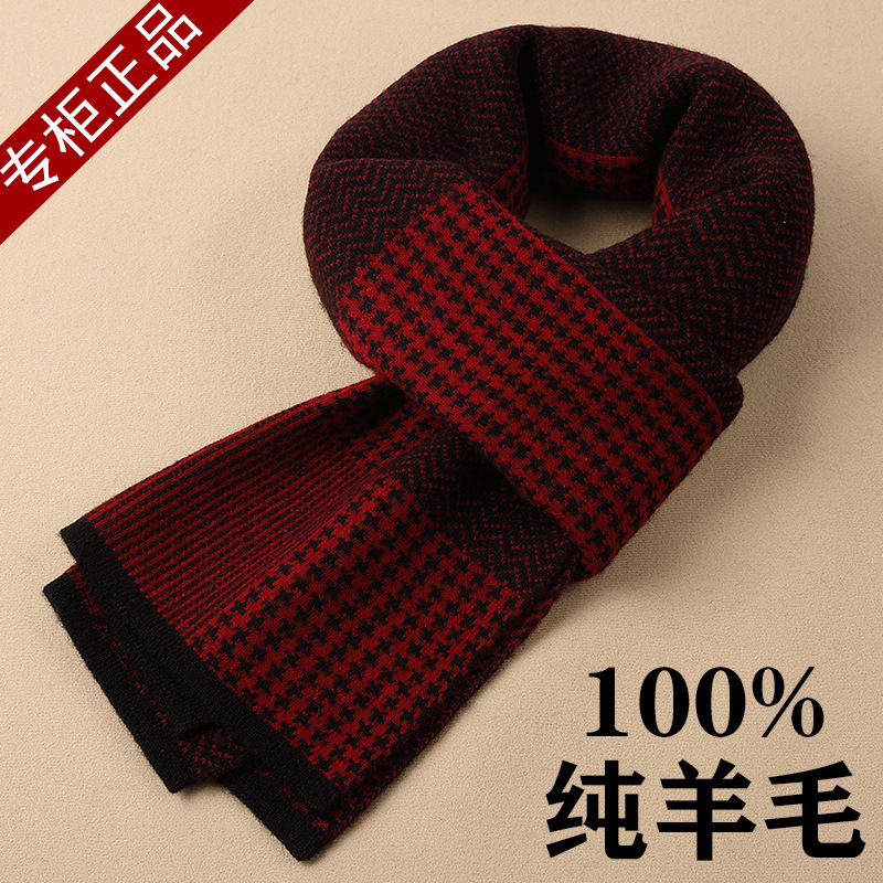 새로운 다용도 100% 순모 스카프 남성용 겨울 두꺼운 격자무늬 따뜻한 비즈니스 니트 스카프 도매가스토어 가기