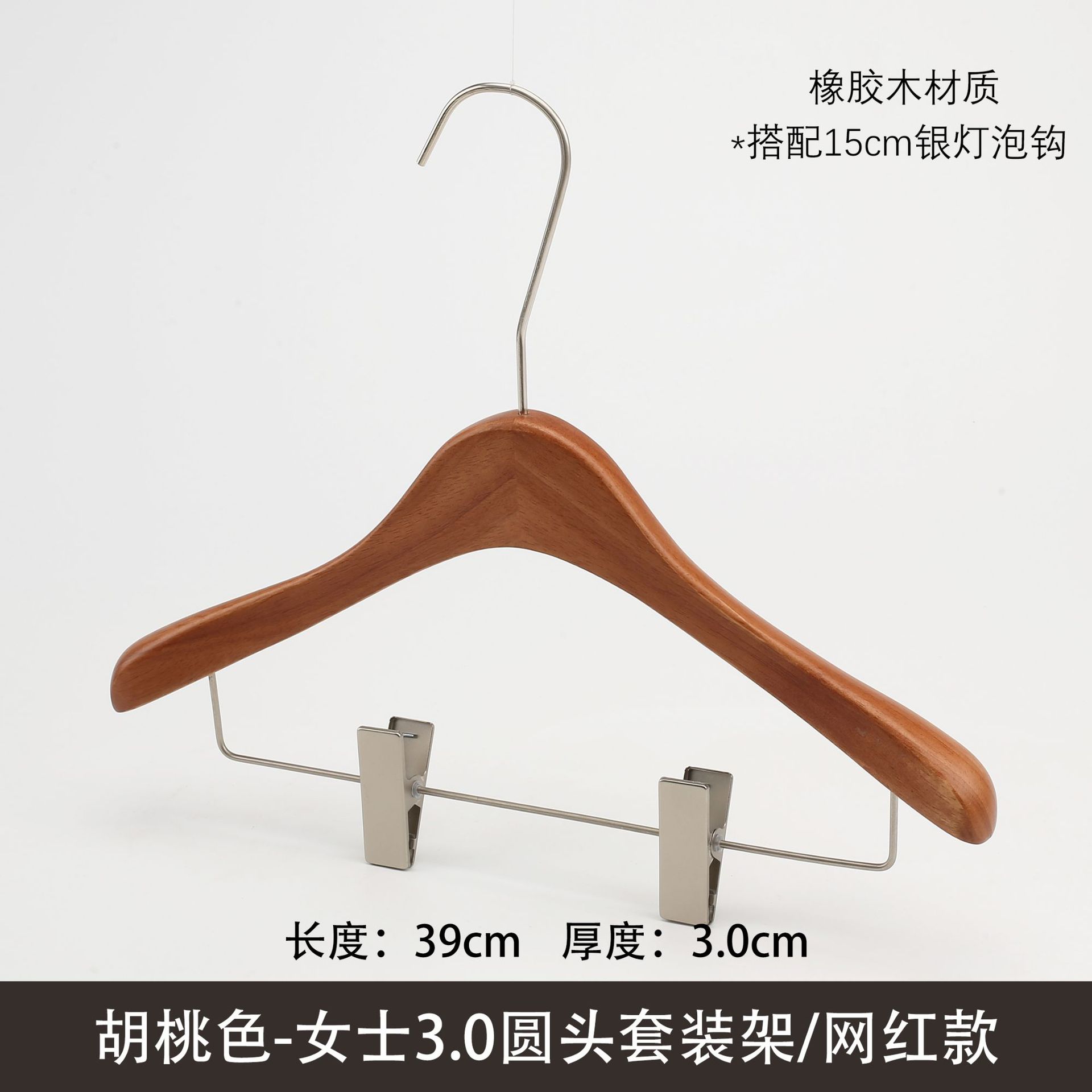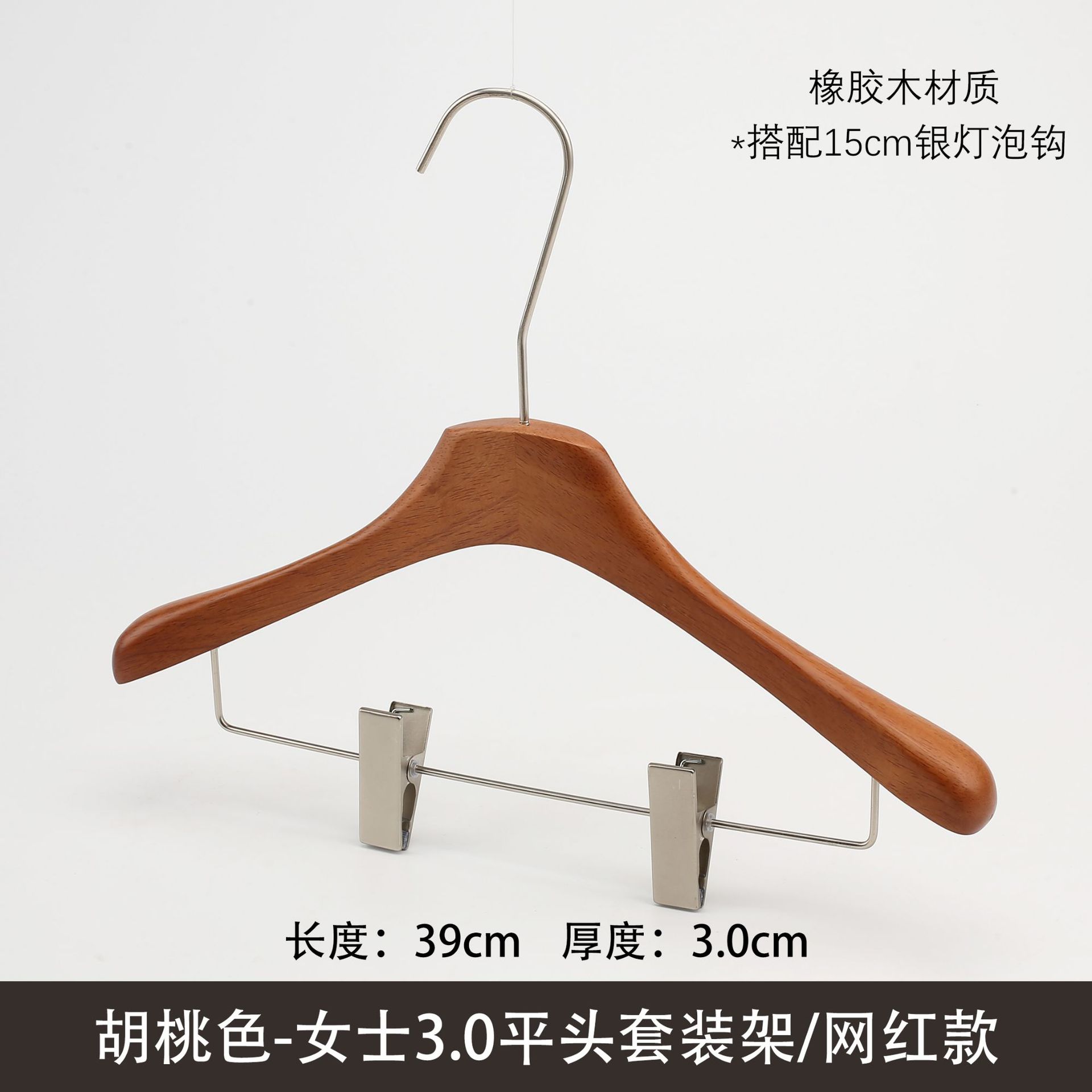 한국식 의류 매장 솔리드 우드 행거 월넛 컬러 두꺼운 미끄럼 방지 원활한 조명 럭셔리 레트로 여성 의류 옷걸이 성인 바지 랙