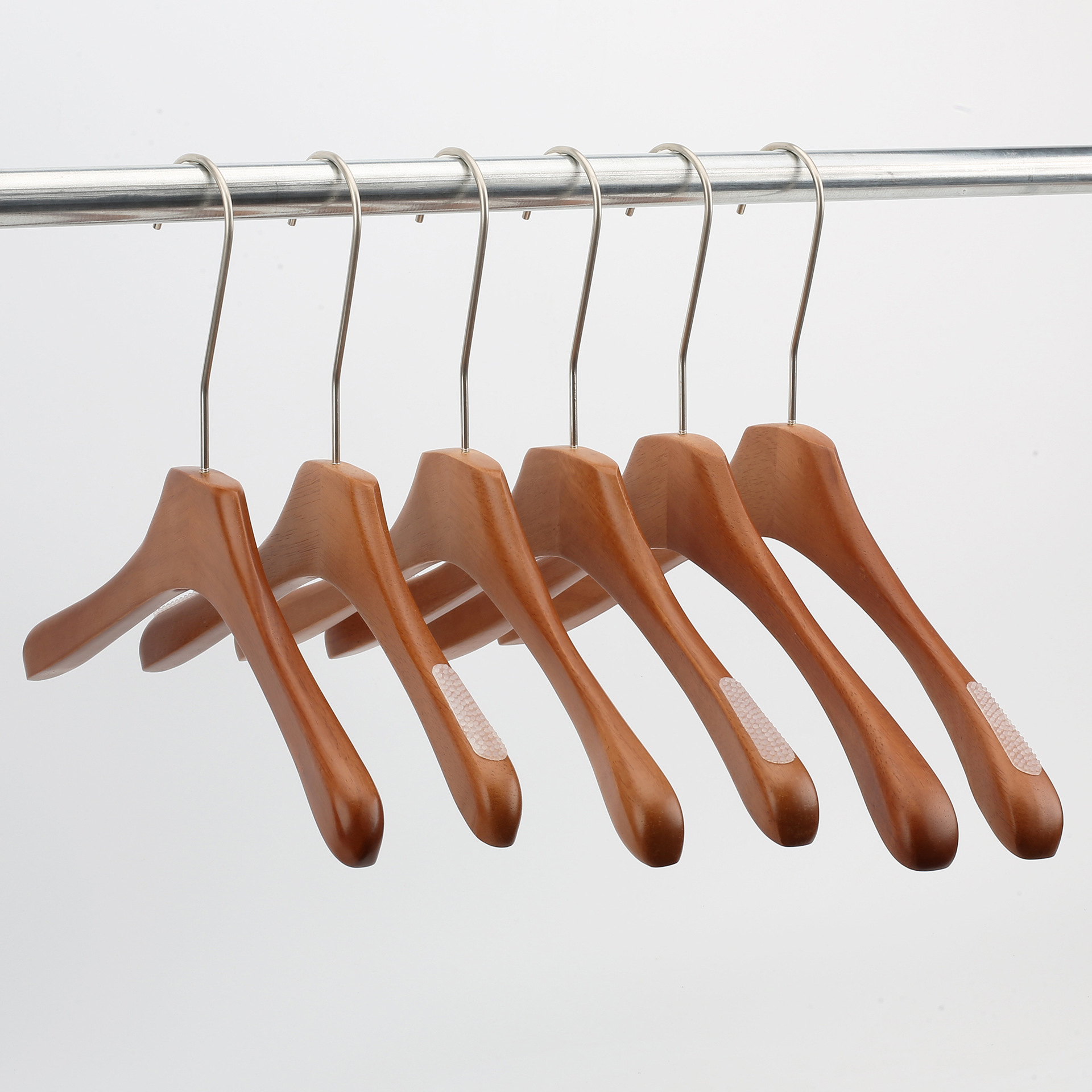 한국식 의류 매장 솔리드 우드 행거 월넛 컬러 두꺼운 미끄럼 방지 원활한 조명 럭셔리 레트로 여성 의류 옷걸이 성인 바지 랙스토어 가기