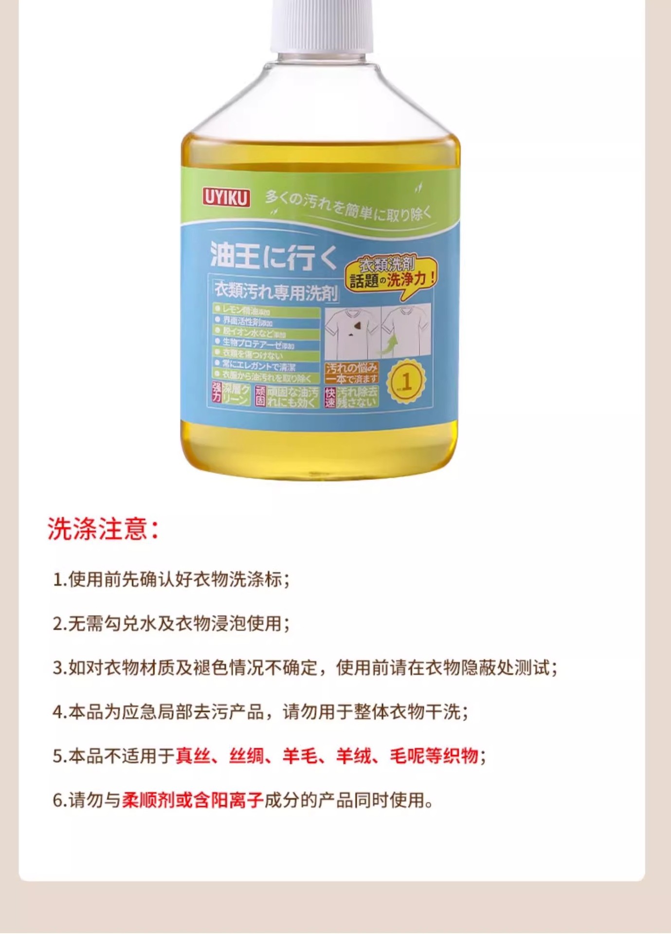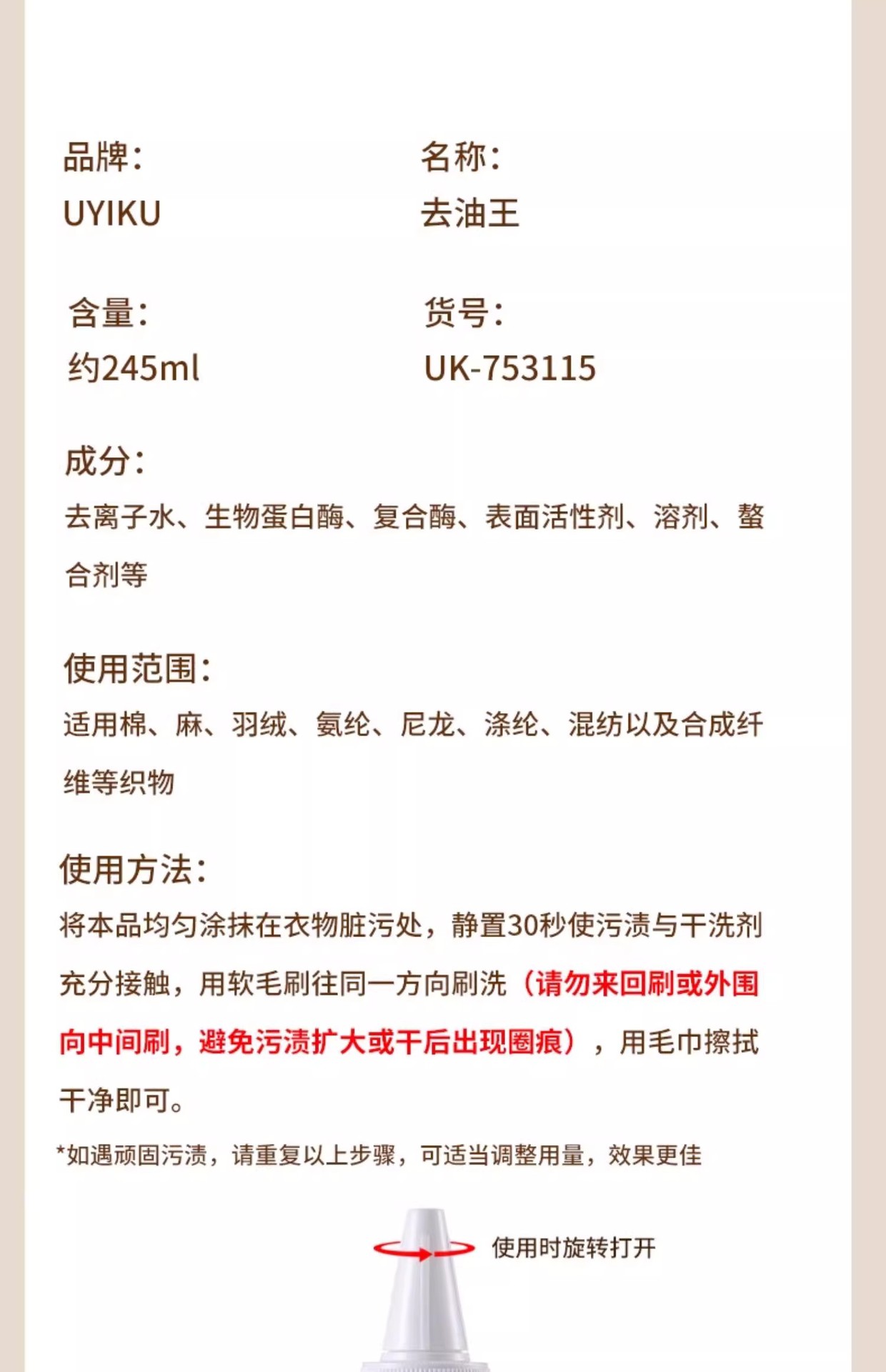 UYIKU Degreer King 옷 강한 기름 얼룩 청소 노란색 얼룩 더 유물 옷 청소 오일 얼룩 청소기스토어 가기