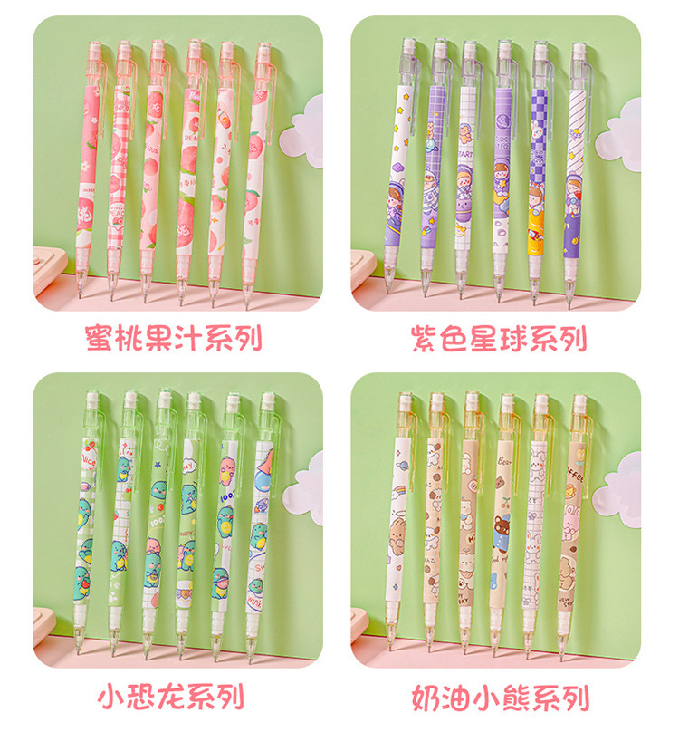 자동 연필 초등학교 학생 지속적인 핵심 높은 색상 가치 만화 0.5 활동 연필 지우개 어린이 보호 연필