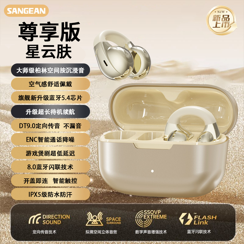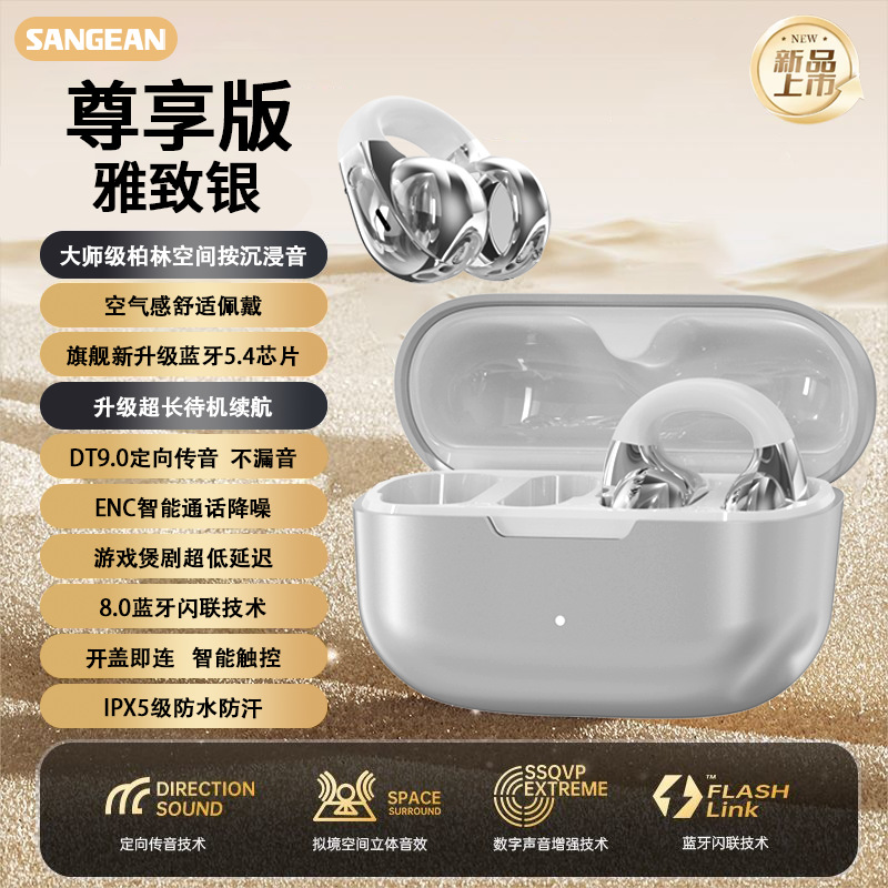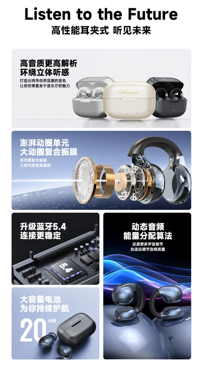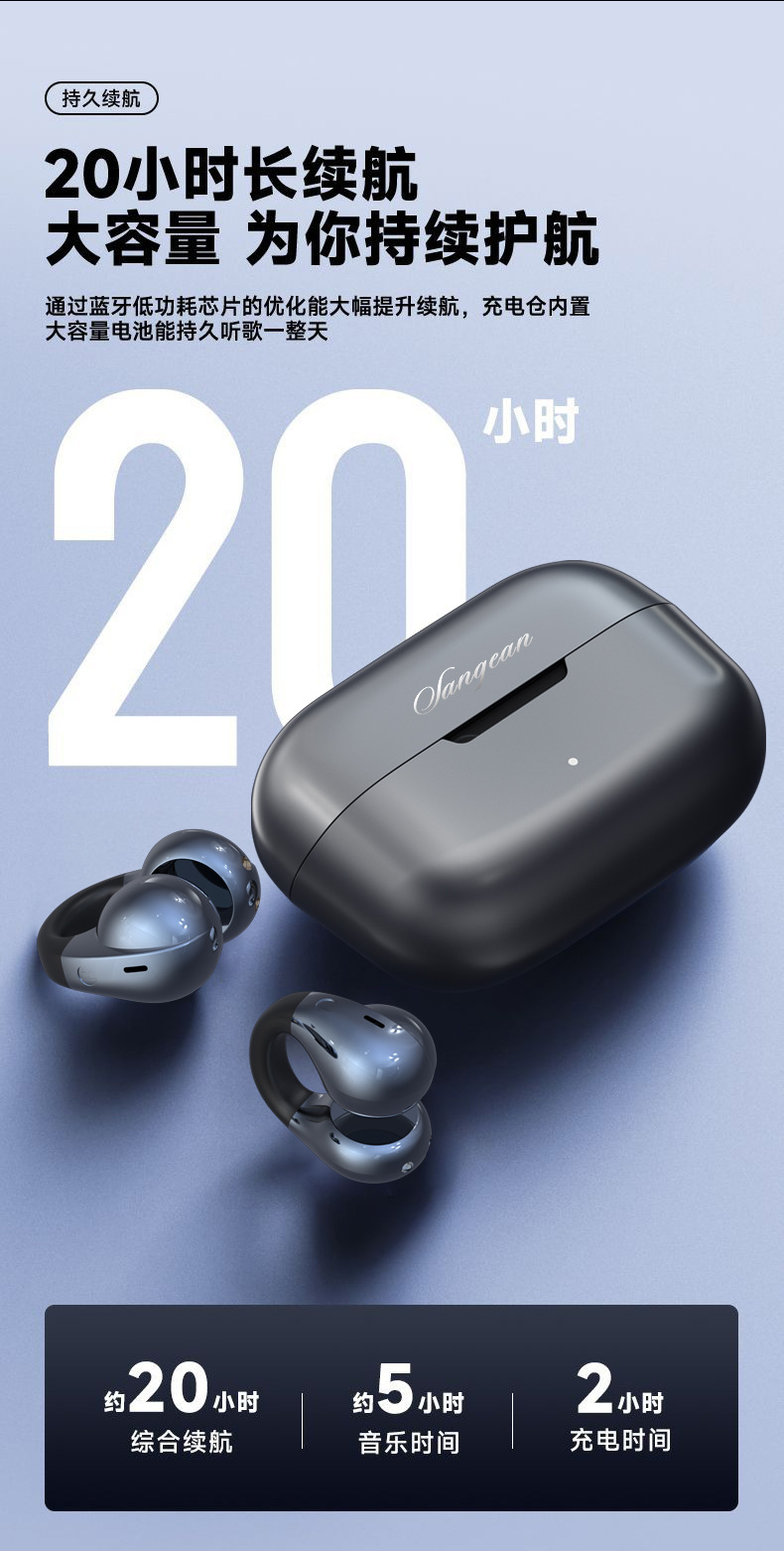 산진 M05 신형 비삽입형 골전도 블루투스 이어폰, 귀걸이형, 고급스러운 디자인, 긴 배터리 수명, 스포츠 및 러닝용