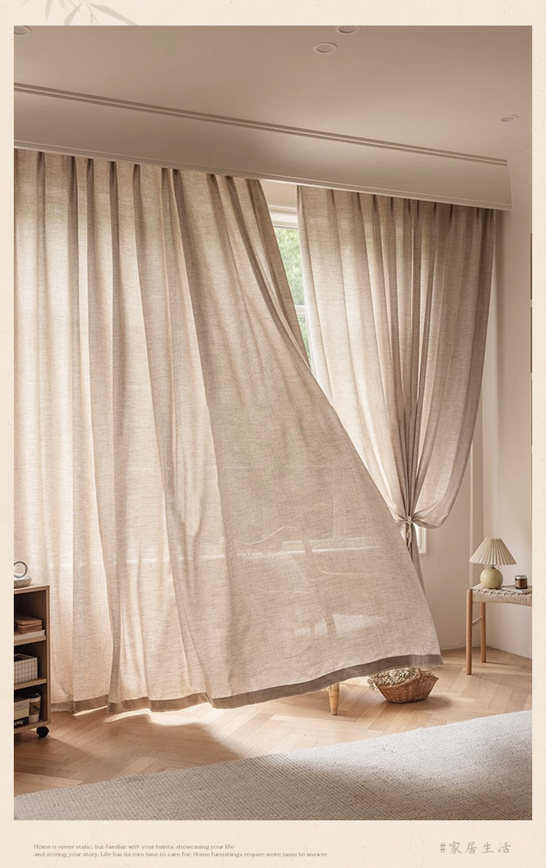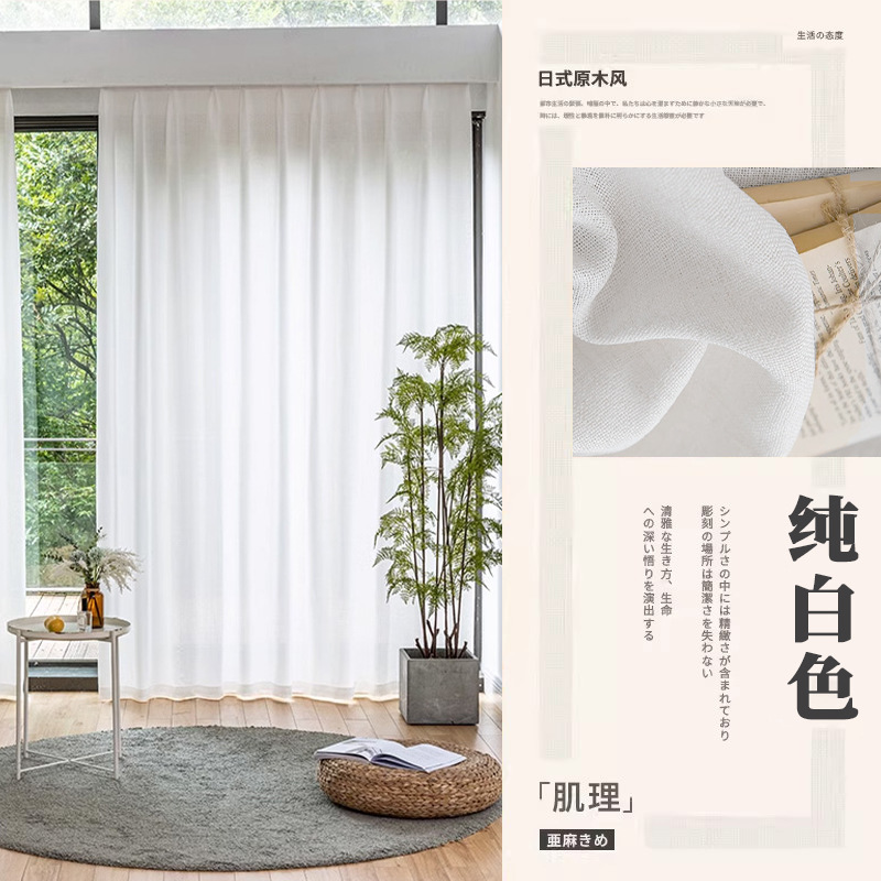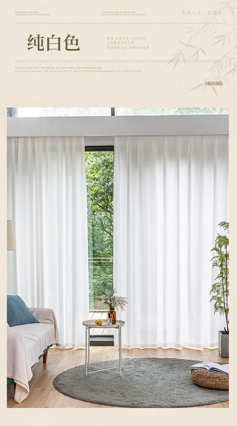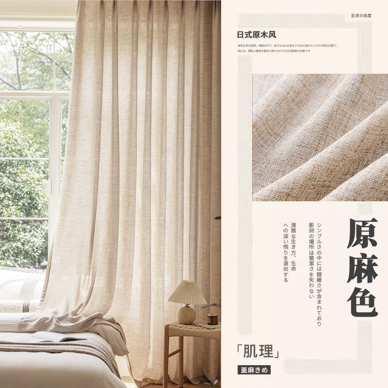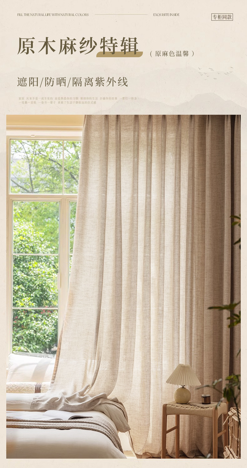 원목색 거즈 커튼, 빛은 투과하지만 사람을 보이지 않게 하는 거실 발코니 린넨 창문 커튼, 차양 및 단열 효과, 레인보우 린넨 원색스토어 가기