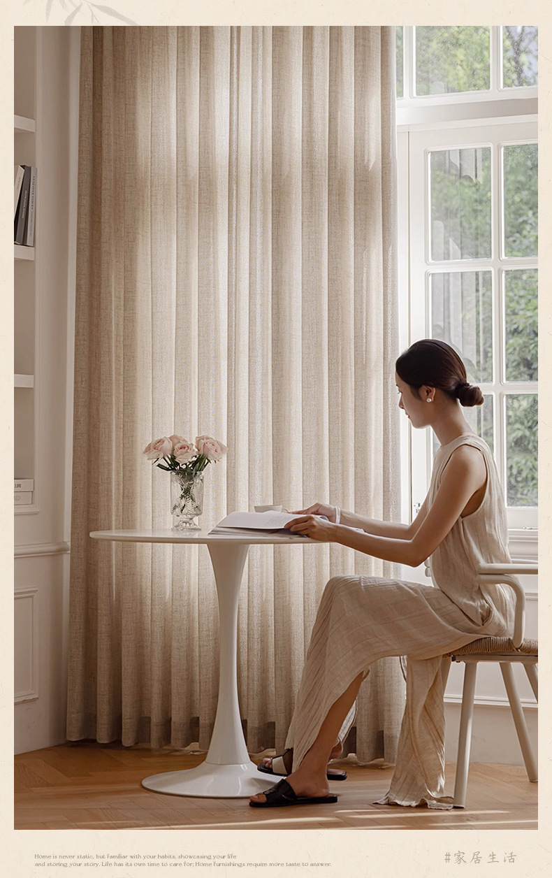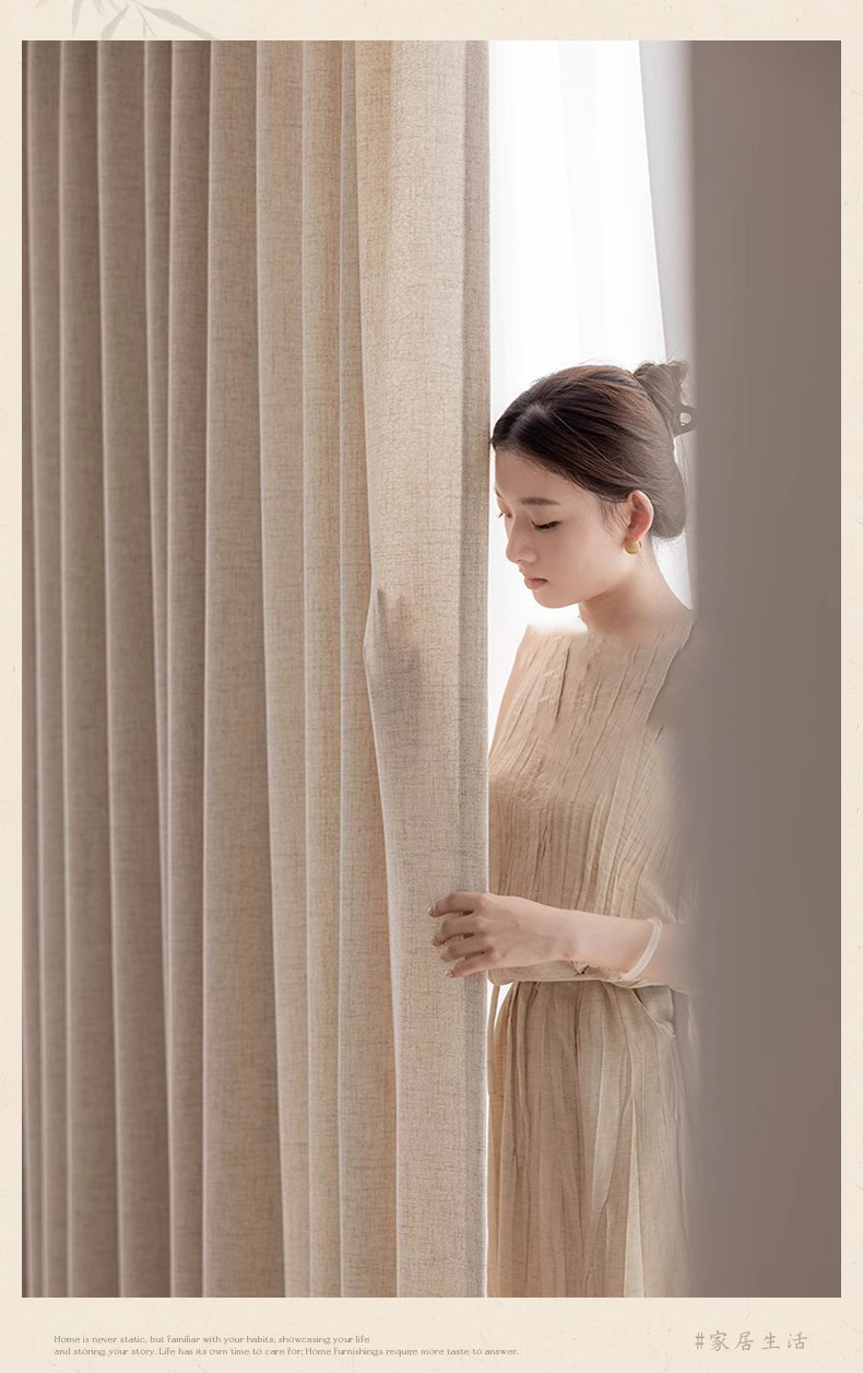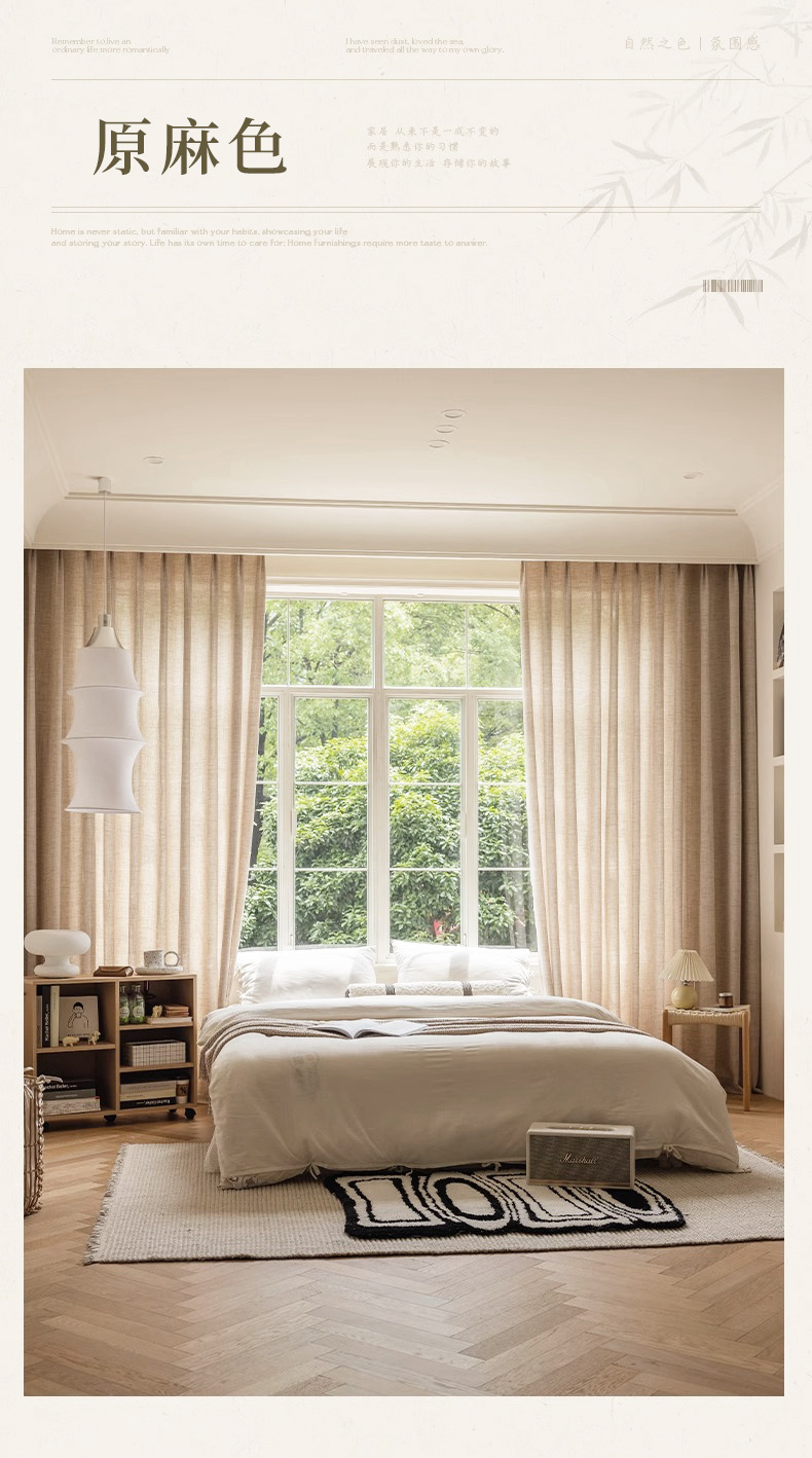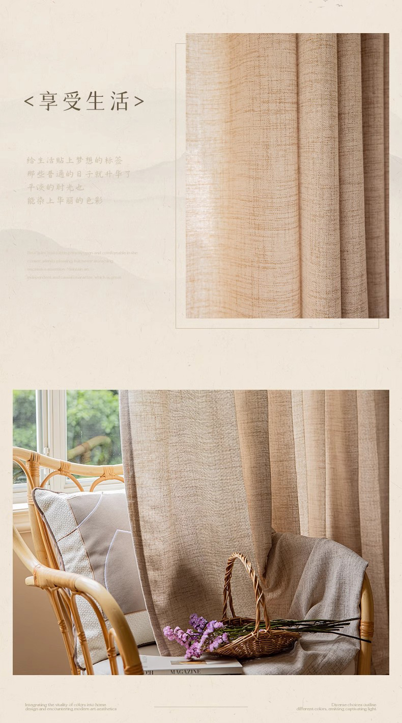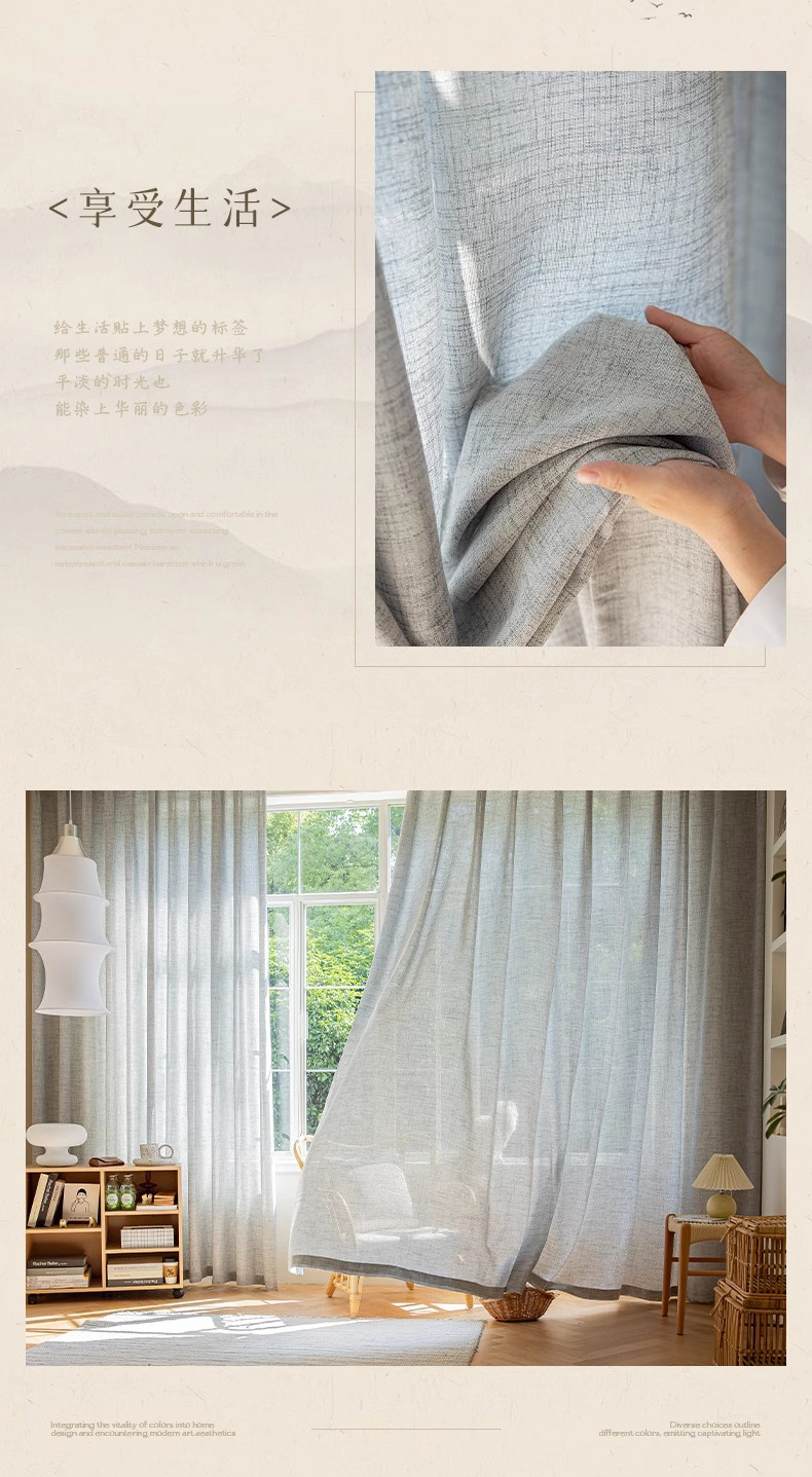 원목색 거즈 커튼, 빛은 투과하지만 사람을 보이지 않게 하는 거실 발코니 린넨 창문 커튼, 차양 및 단열 효과, 레인보우 린넨 원색스토어 가기
