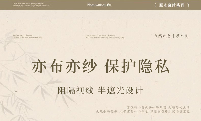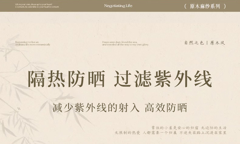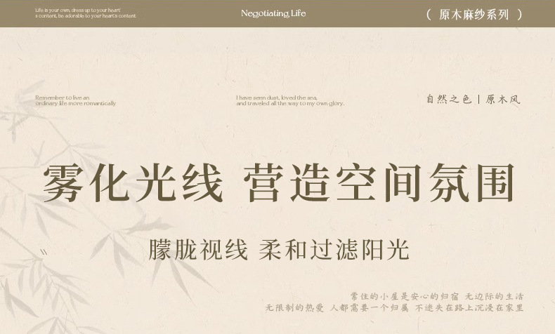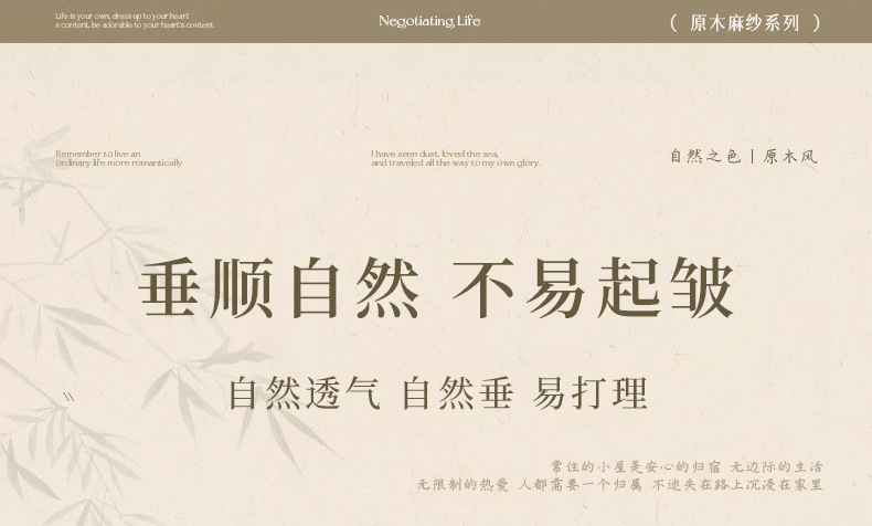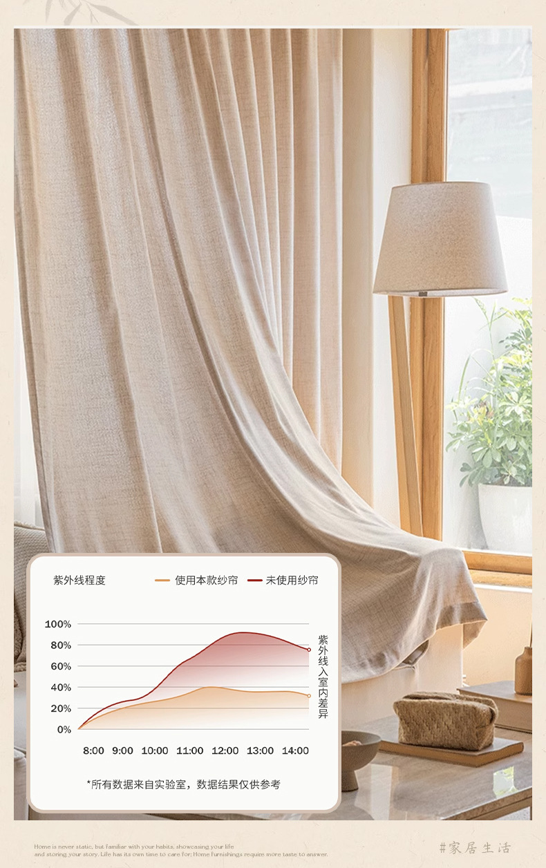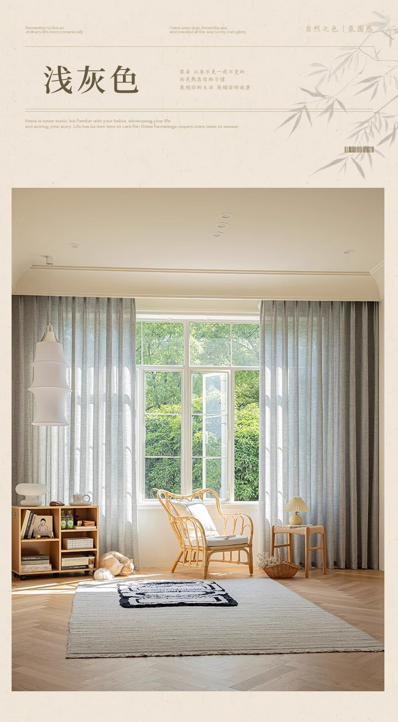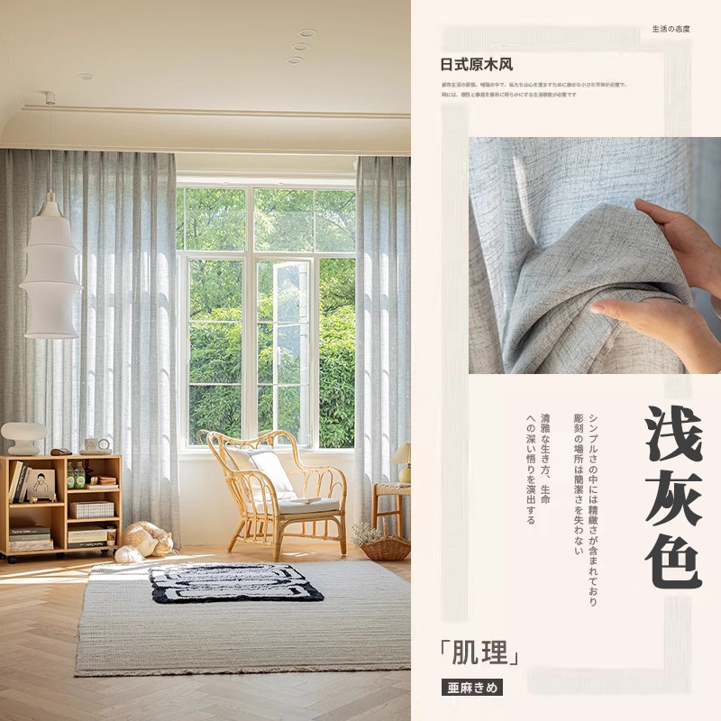 원목색 거즈 커튼, 빛은 투과하지만 사람을 보이지 않게 하는 거실 발코니 린넨 창문 커튼, 차양 및 단열 효과, 레인보우 린넨 원색스토어 가기