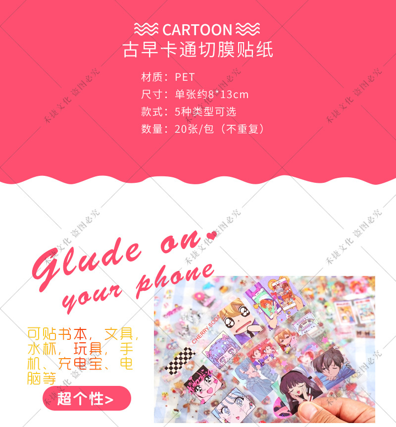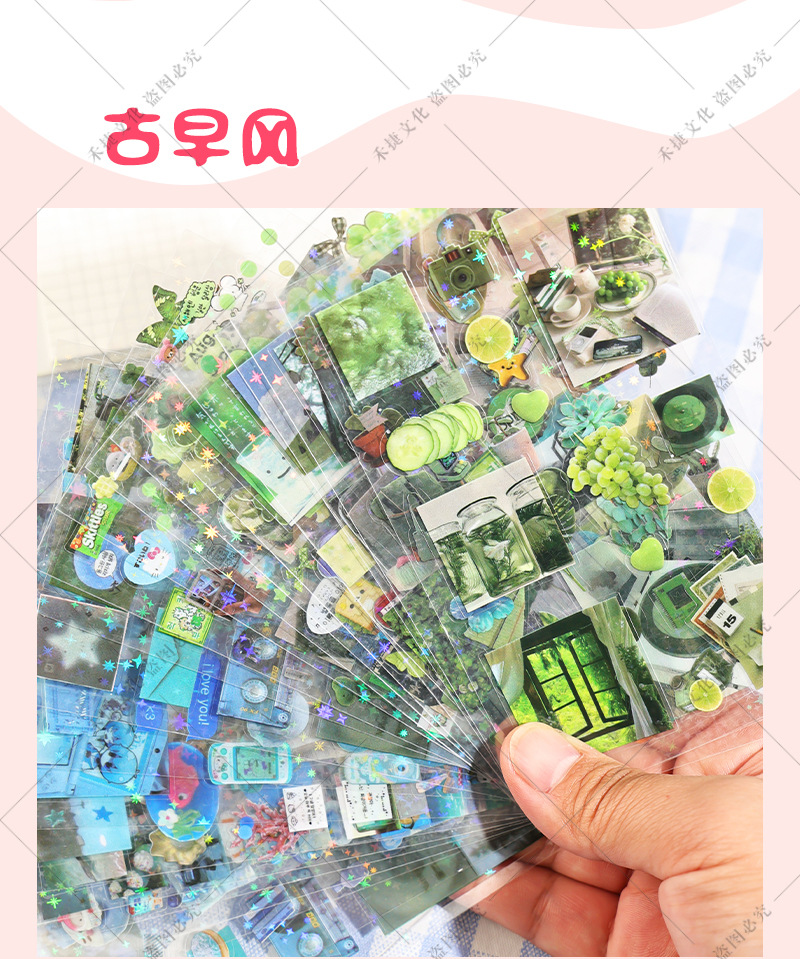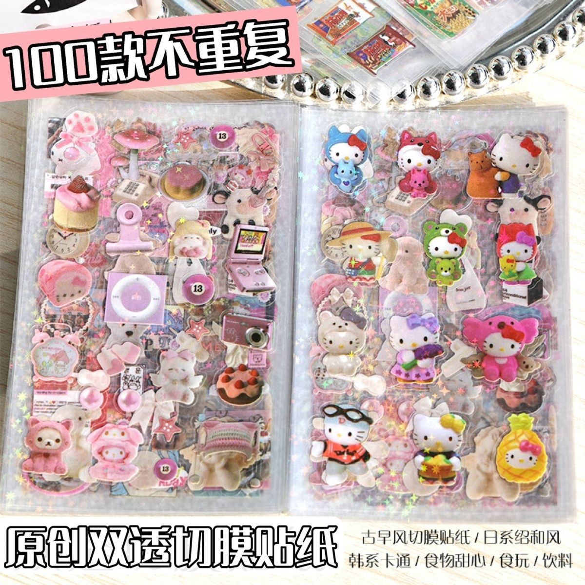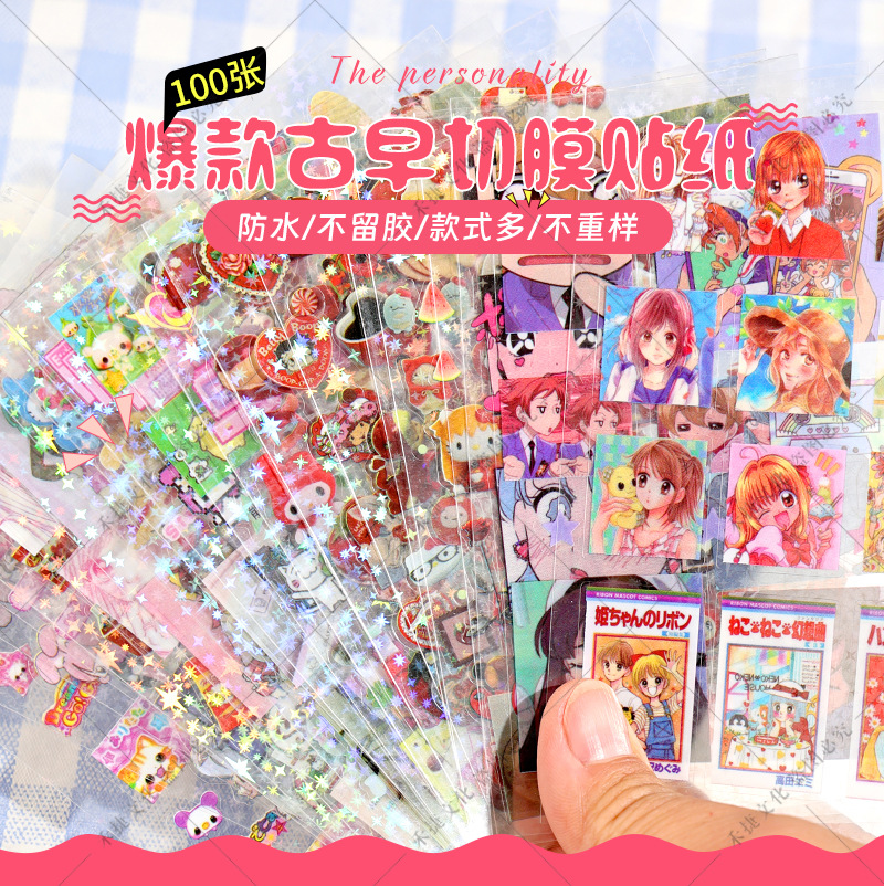 100 장의 반복되지 않는 컷 필름 스티커 Senbeier 4 잎 클로버 키티 쉬운 곰 토마토 고대 초기 바람 스티커스토어 가기