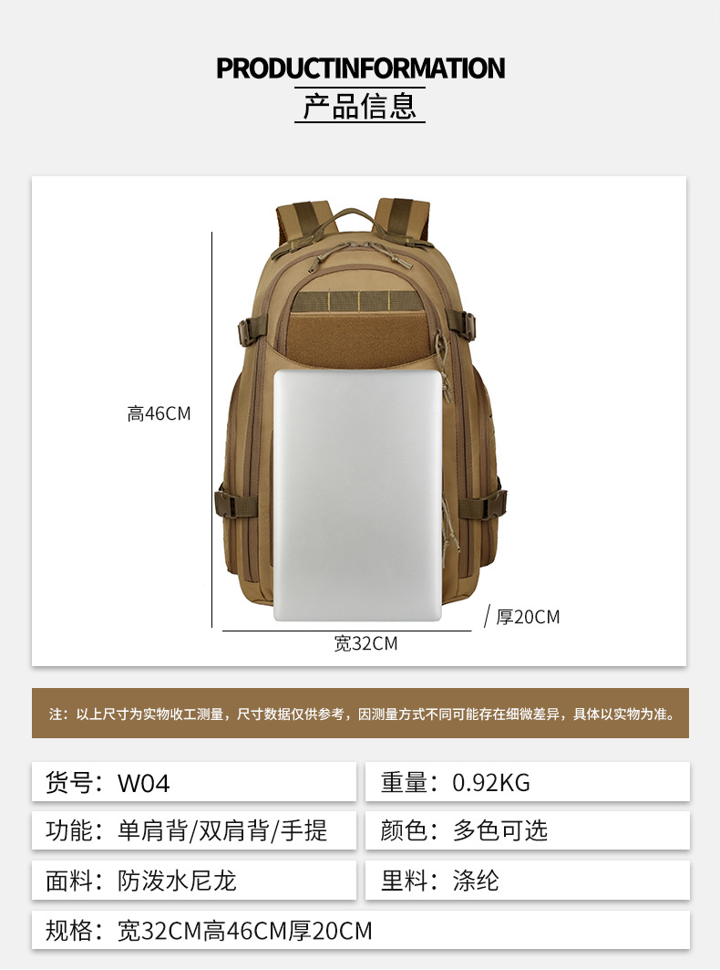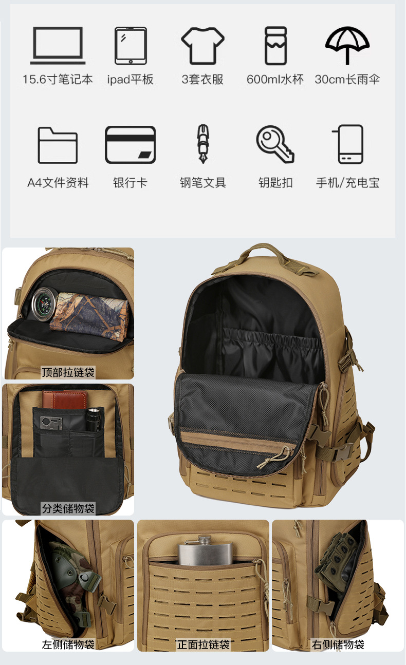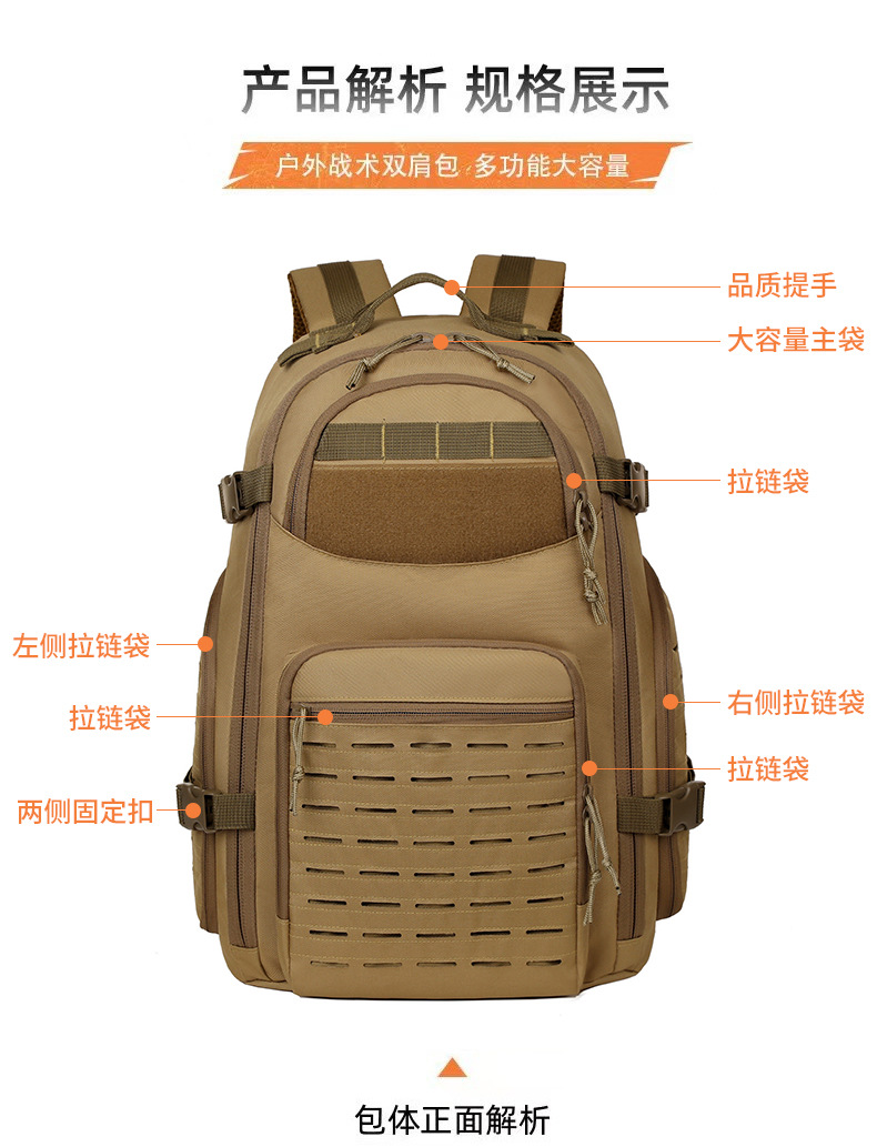 대용량 전술 배낭 야외 여행 하이킹 캠핑 배낭 등산 가방 남성용 발수 배낭