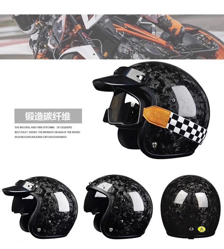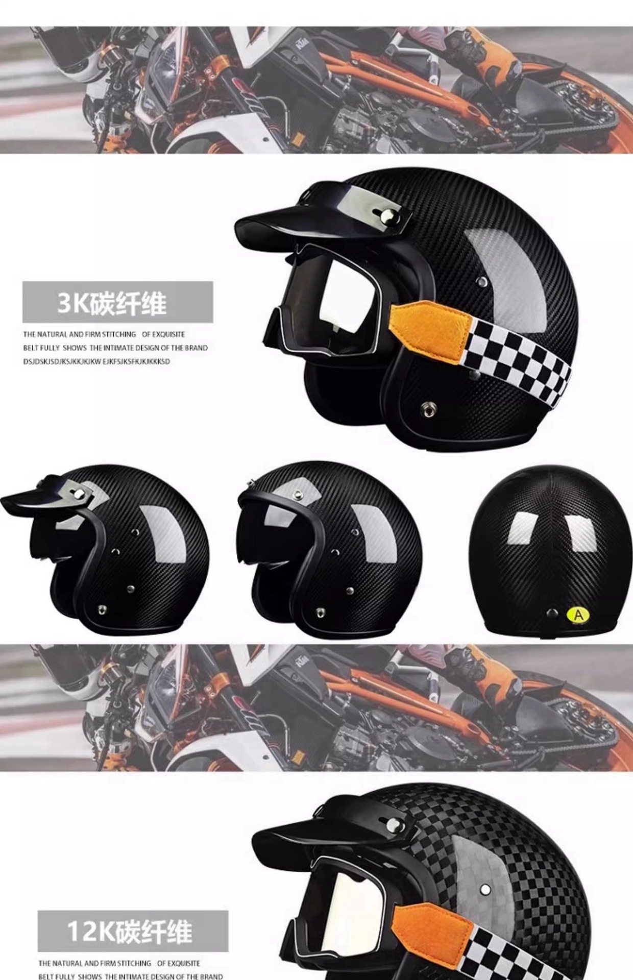 3C 인증 탄소 섬유 할리 전기 오토바이 헬멧 3/4 하프 헬멧 남성용 및 여성용 오토바이 헬멧 사계절 통근