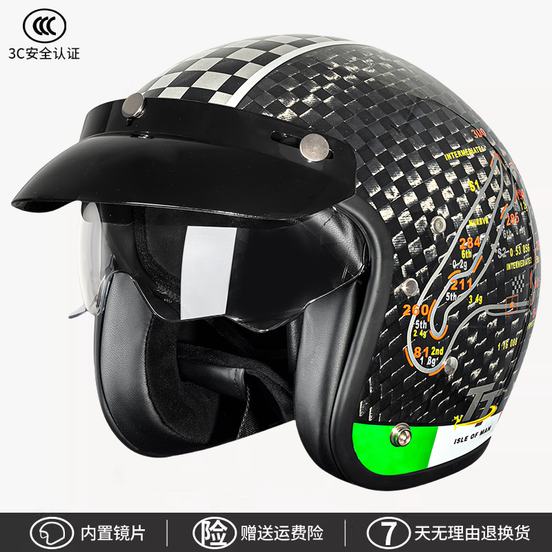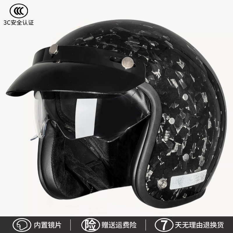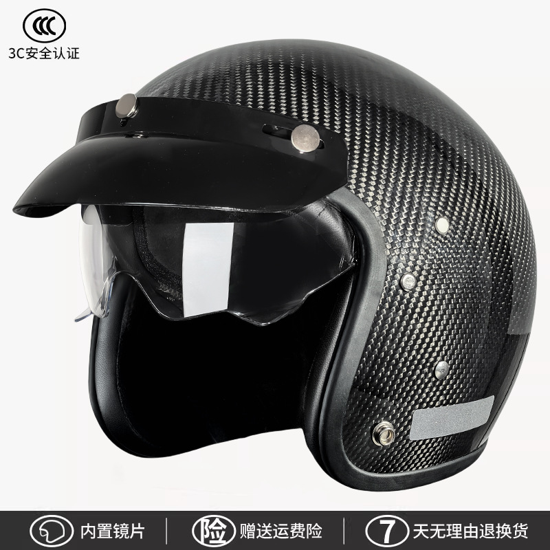 3C 인증 탄소 섬유 할리 전기 오토바이 헬멧 3/4 하프 헬멧 남성용 및 여성용 오토바이 헬멧 사계절 통근스토어 가기