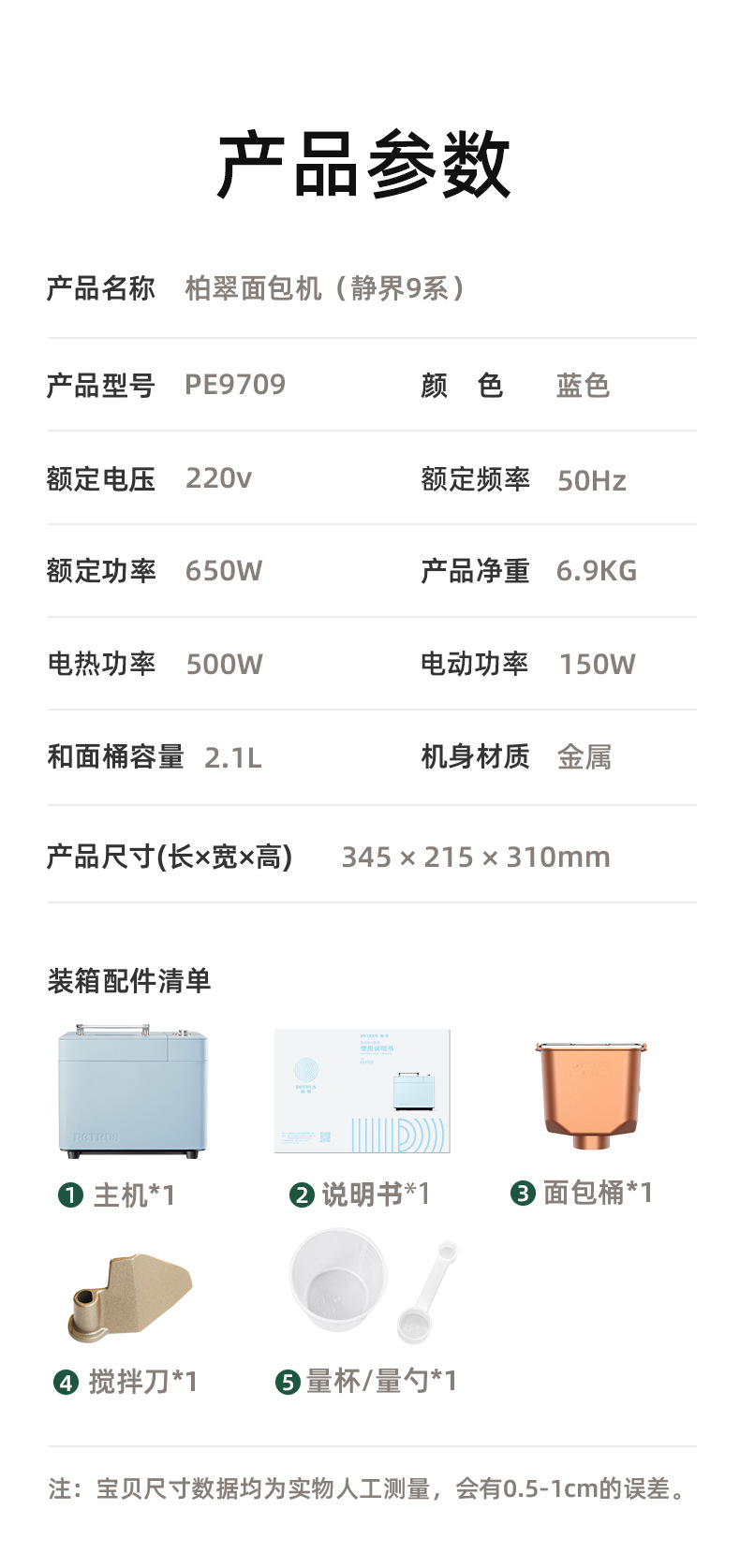 버드빵 제조기 PE9709 저소음 전자동 반죽기 다기능 아이스크림 제조기 토스트 베이킹 반죽기 고급스러운 디자인