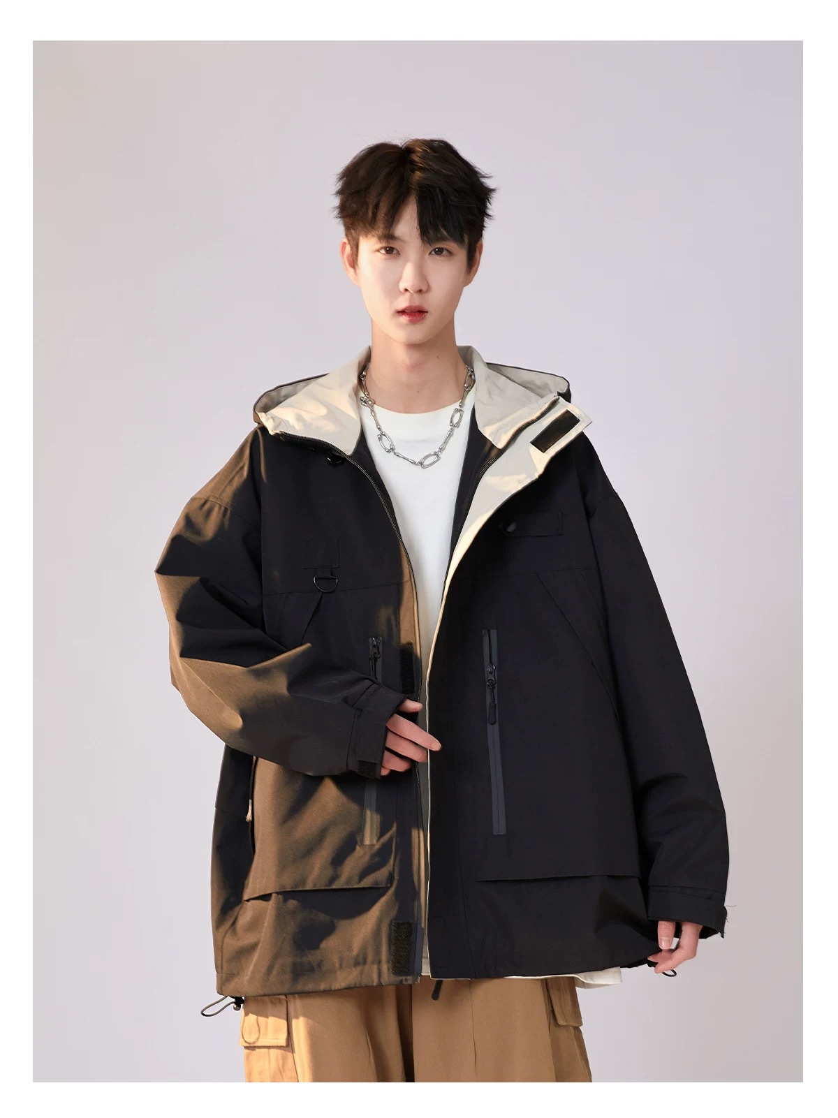 충전 재킷 남자의 가을 미국 스타일 기능성 방수 3 대 1 작업 재킷 플러스 사이즈 느슨한 후드 탑