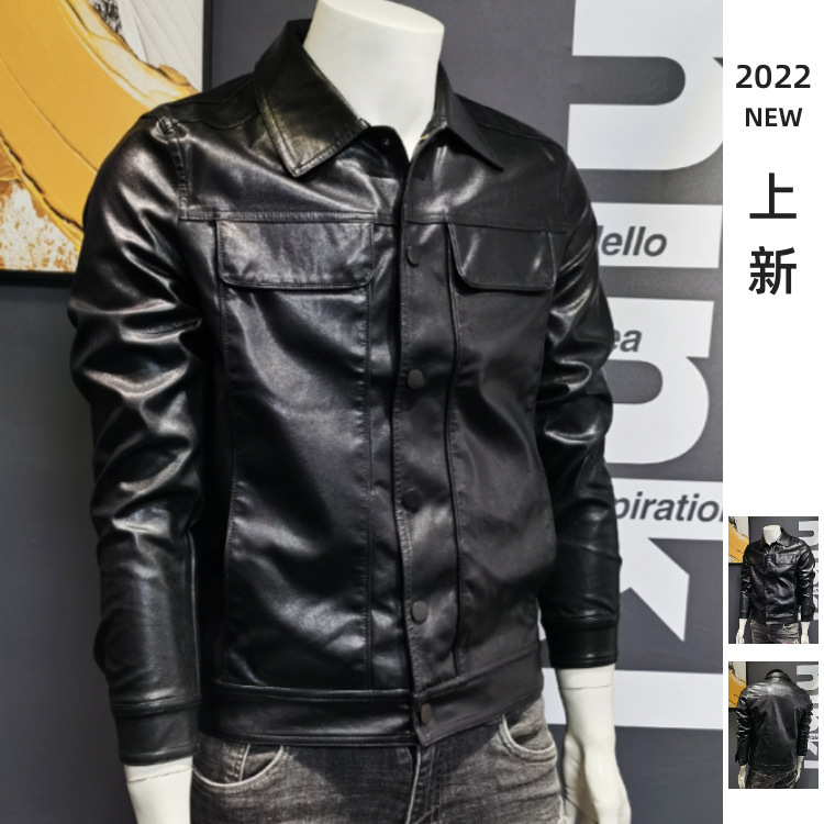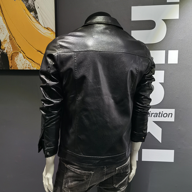 가을 겨울 남성용 가죽 자켓 2025년 신상 한국 스타일 트렌디 숏 라펠 바이커 자켓 PU 가죽 자켓 트렌디 브랜드스토어 가기