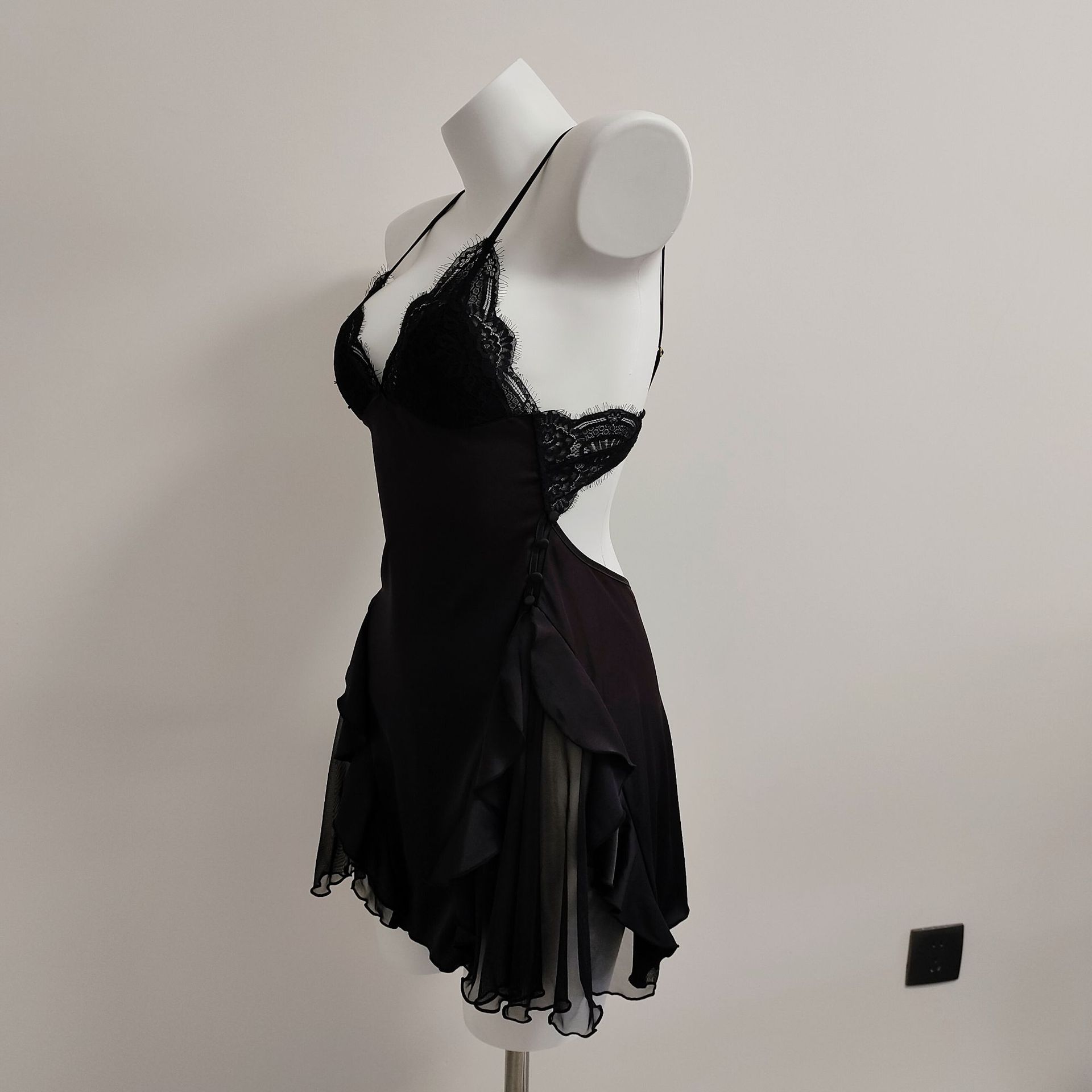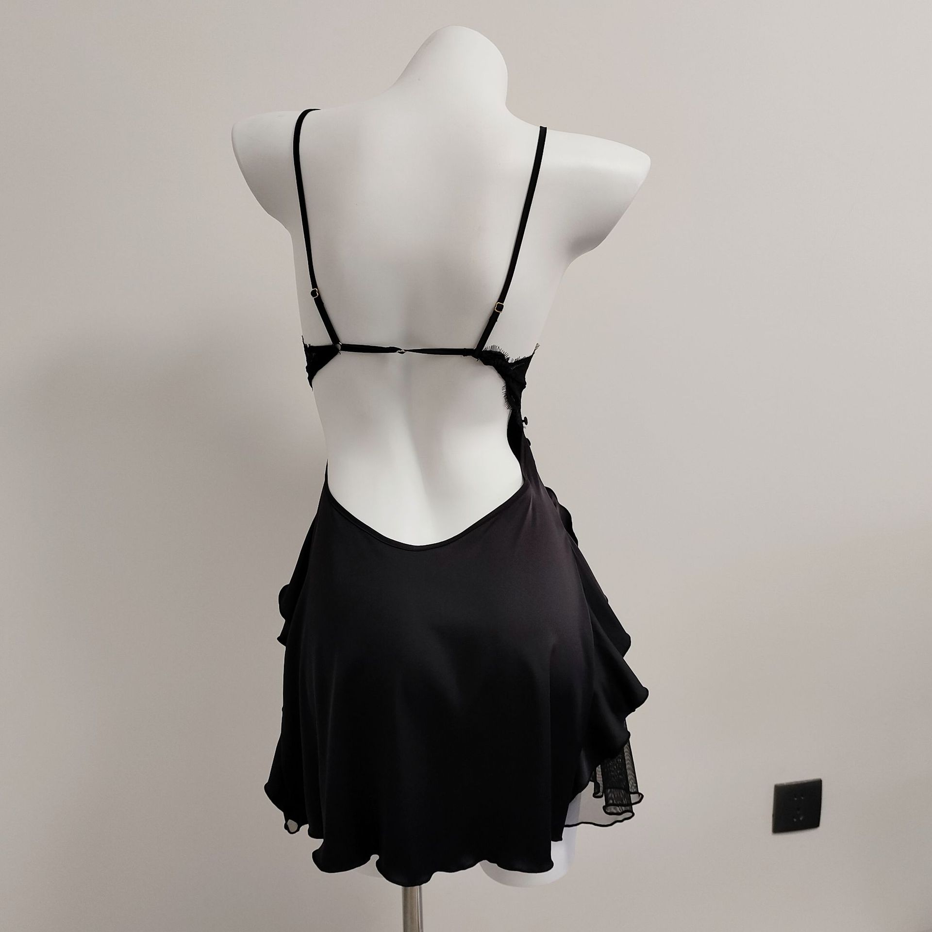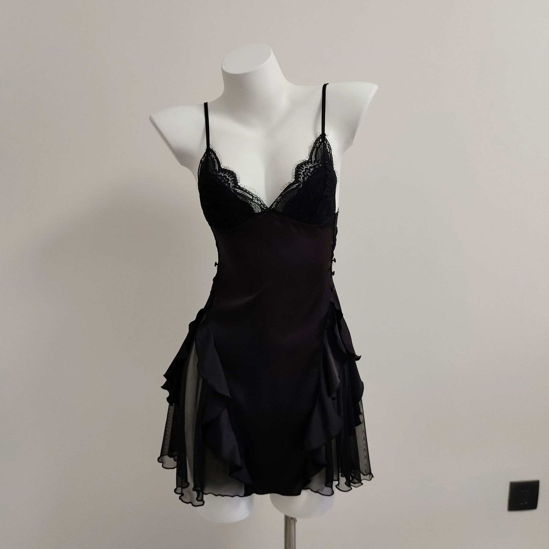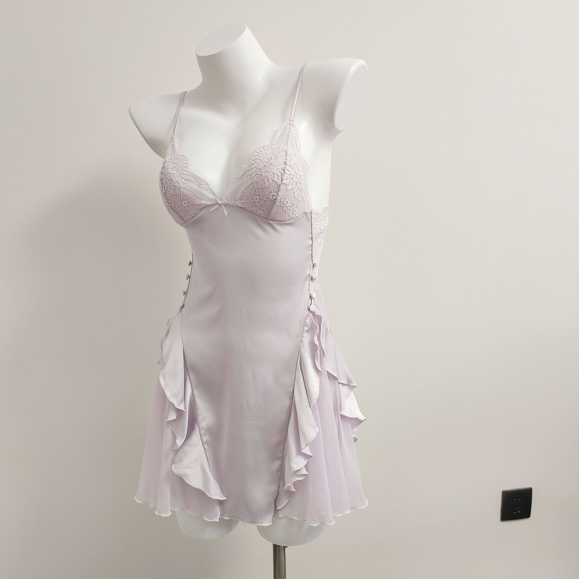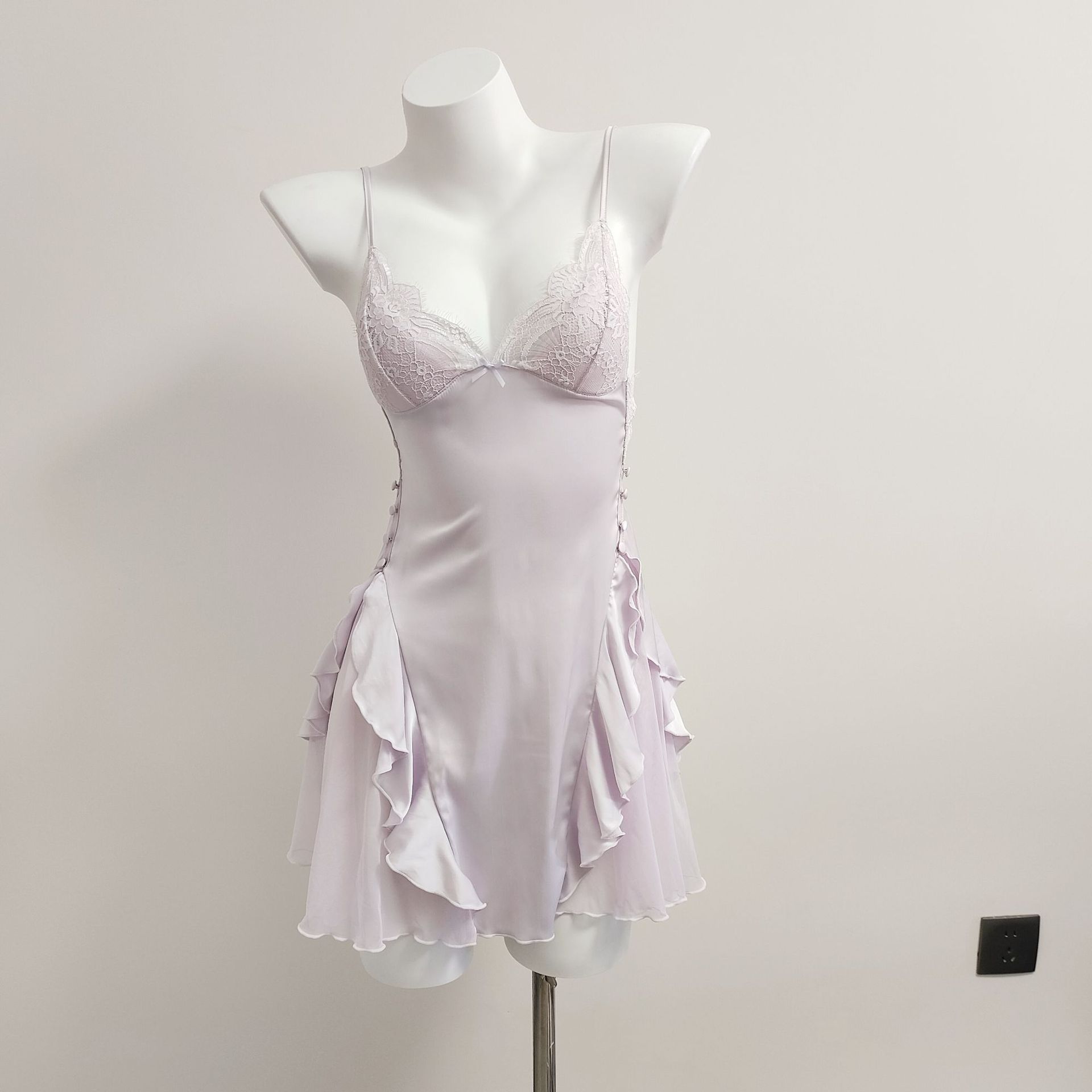 프랑스 스타일 섹시한 작은 가슴 슬리밍 파자마 가슴 패드 여성의 가을 새로운 아이스 실크 스티칭 메쉬 순수한 욕망 슬링 나이트 가운
