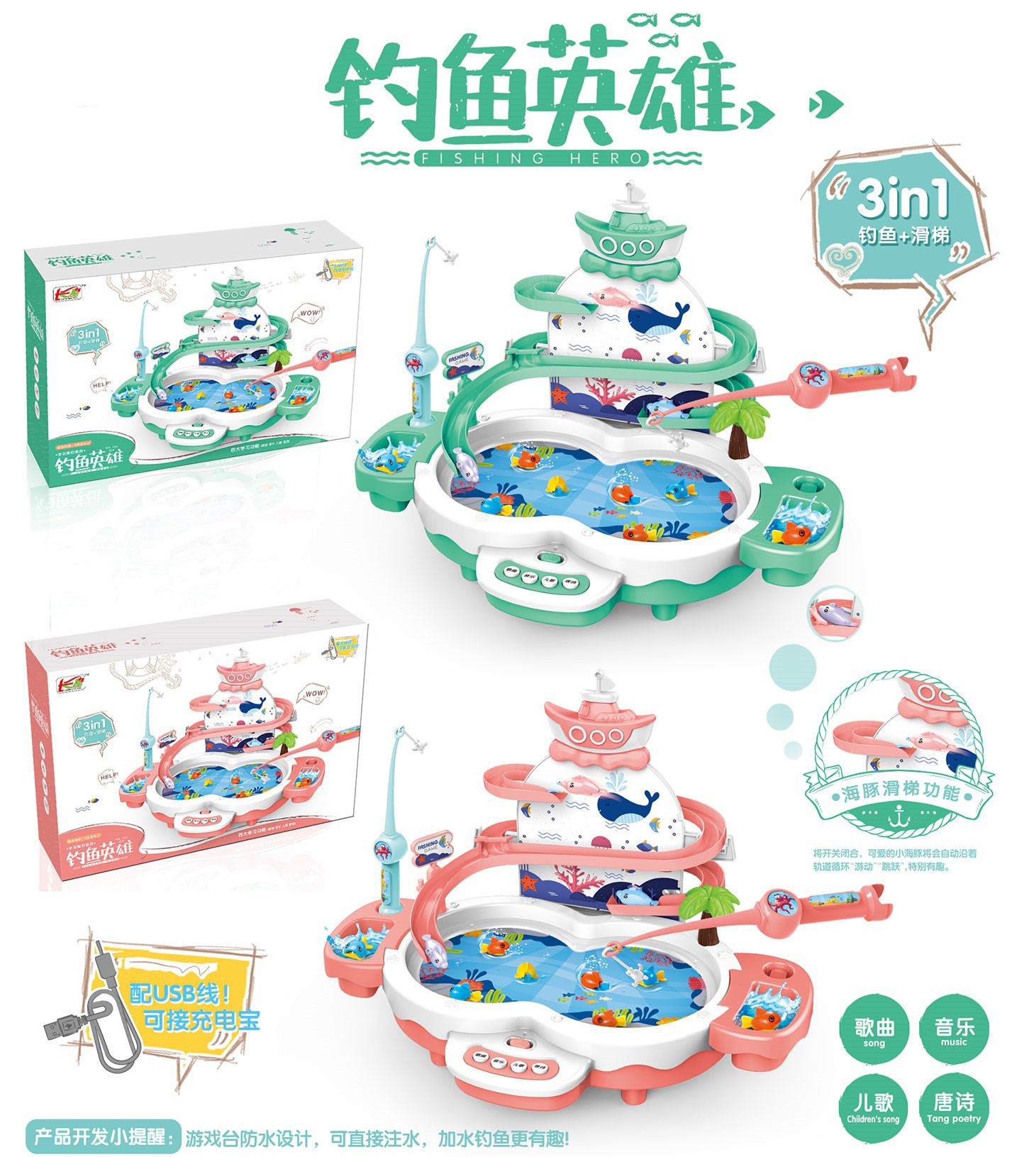 • 돌고래 날아다니는 3층 낚시대 [핑크] 충전식 버전