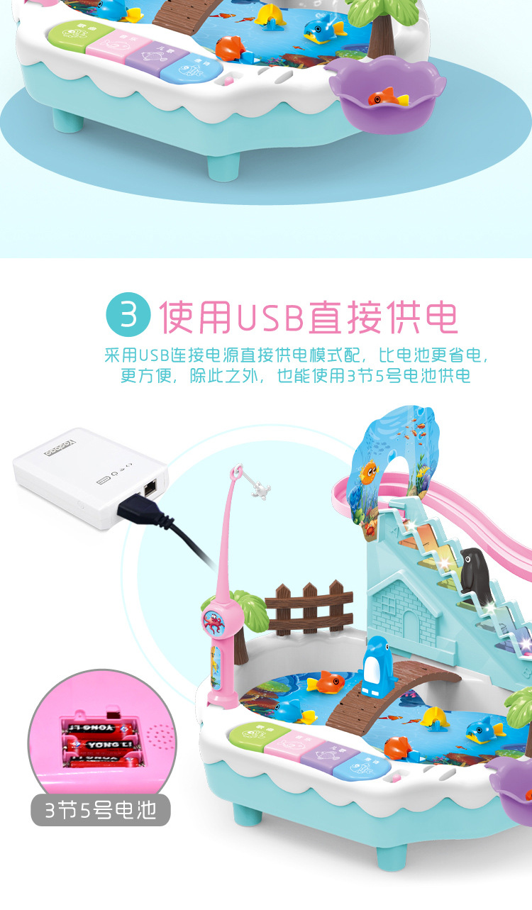 어린이 낚시 장난감 세트 전기 계단 등반 소년 1-3-6 세 자기 조기 교육 낚시 수영장