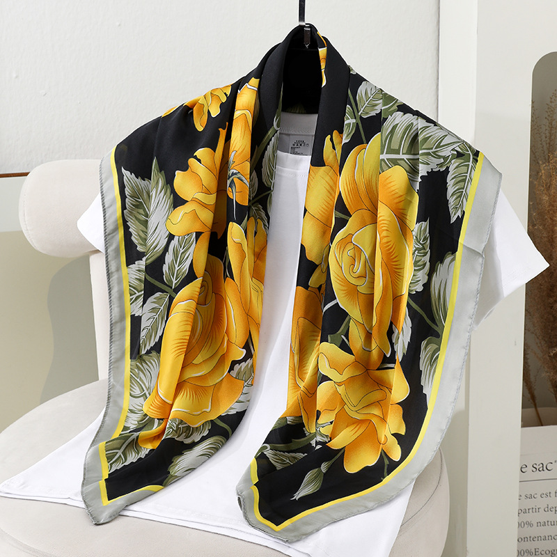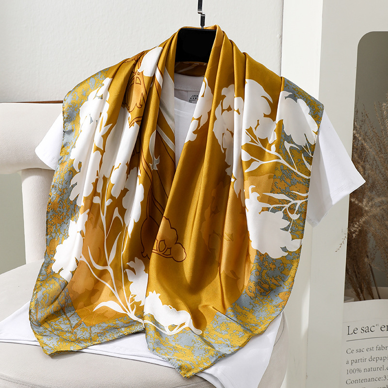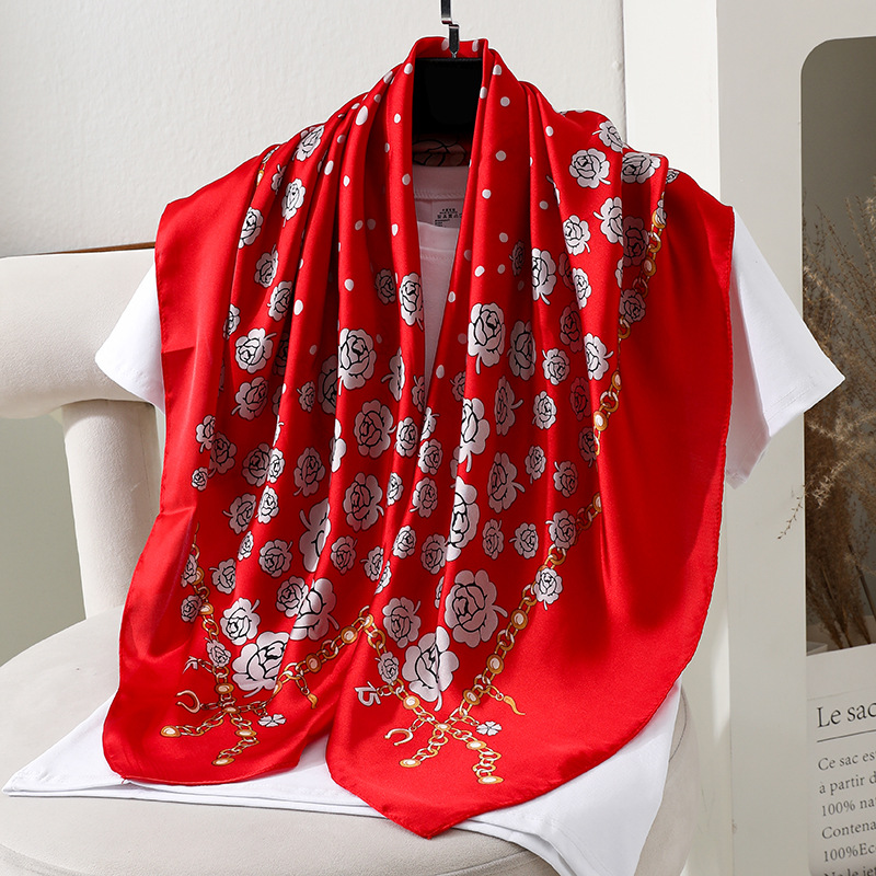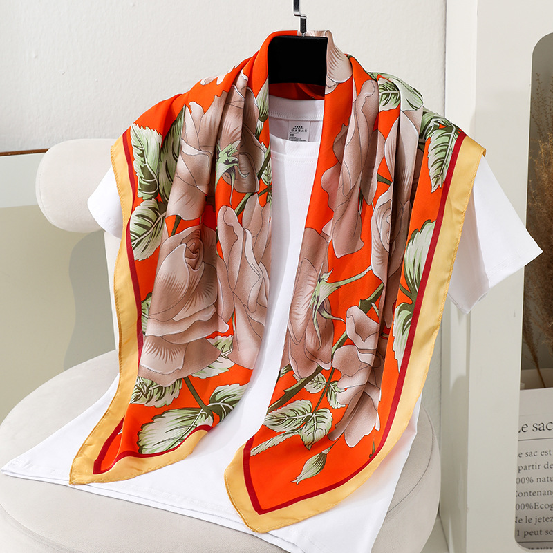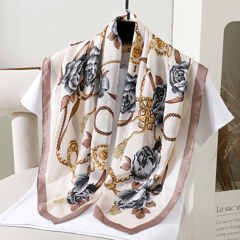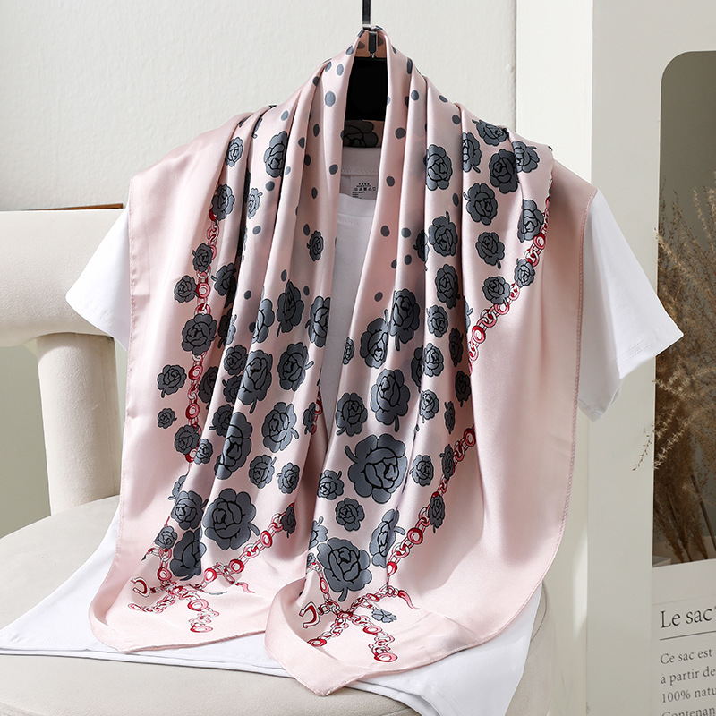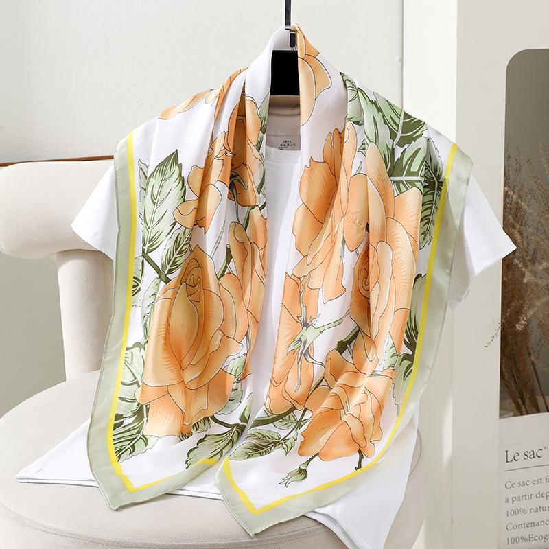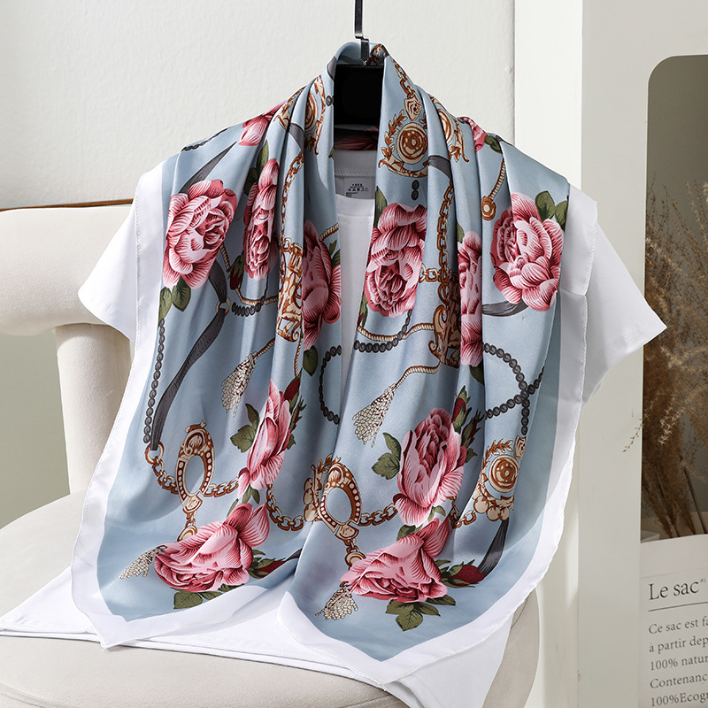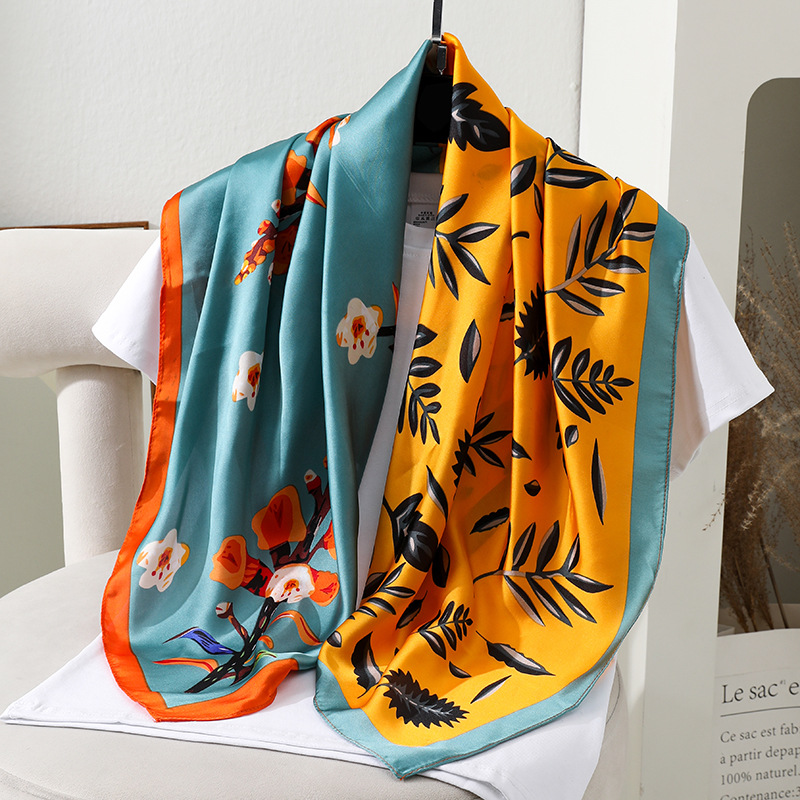 실크 스카프 여성의 봄과 여름 새로운 새틴 모방 실크 90CM 스퀘어 스카프 한국식 올매치 프로 스카프 인쇄 스카프스토어 가기