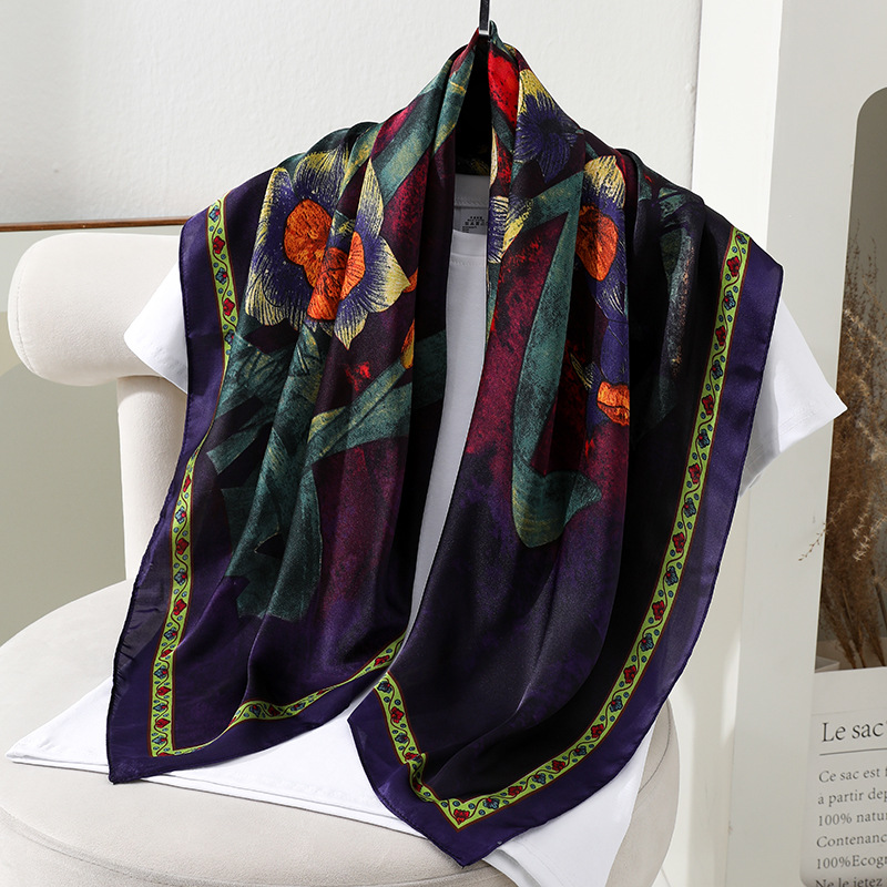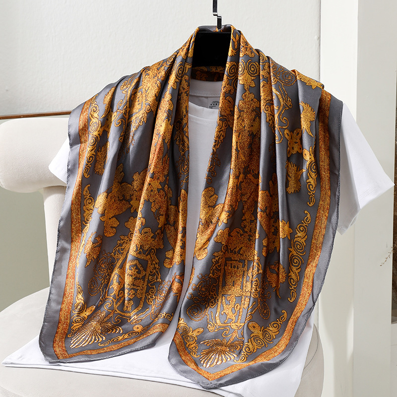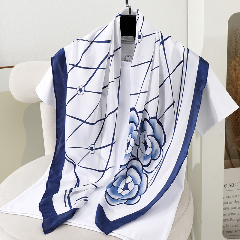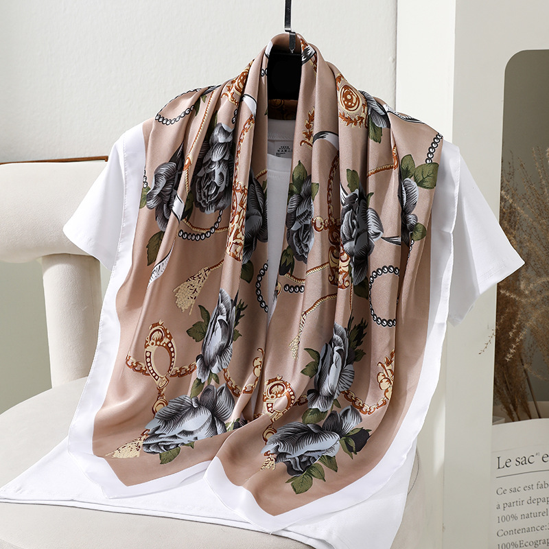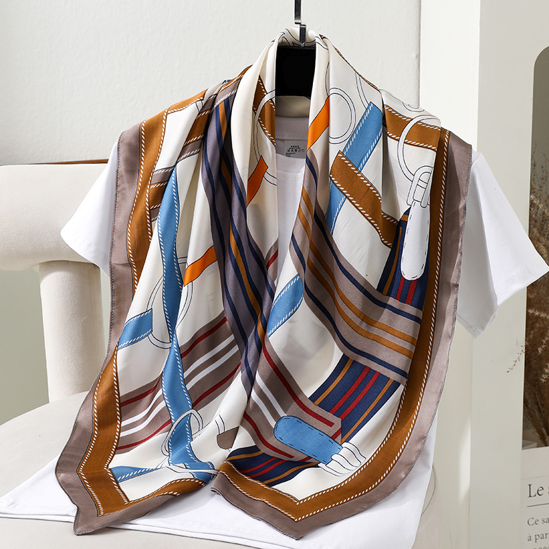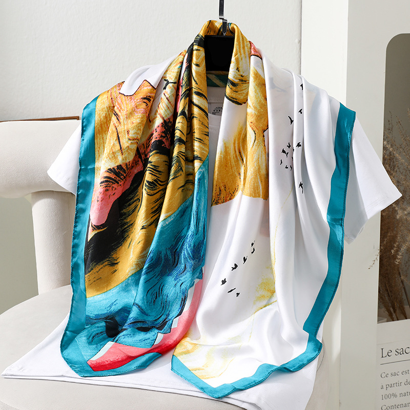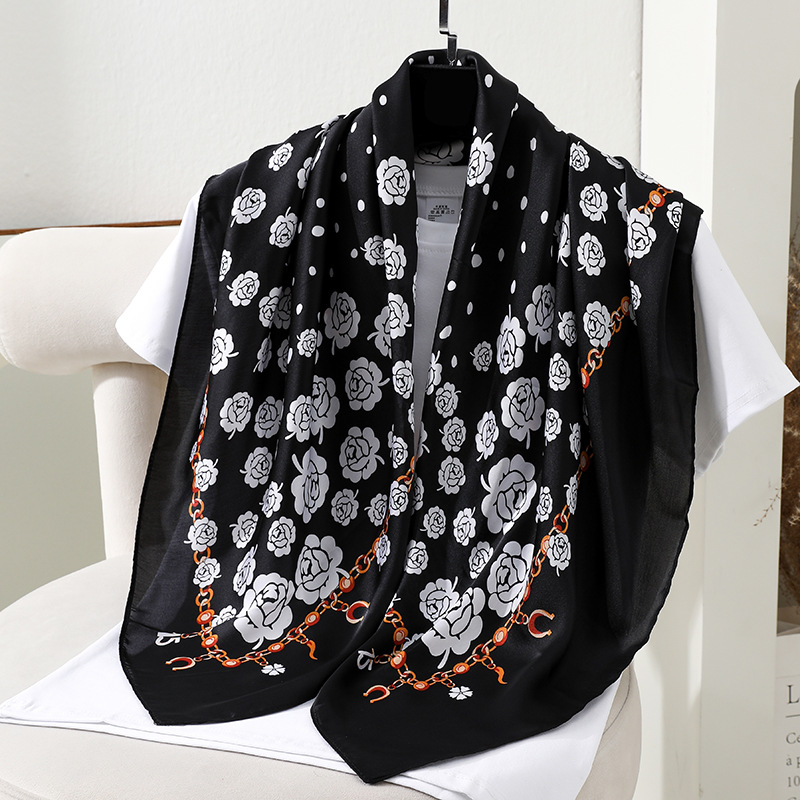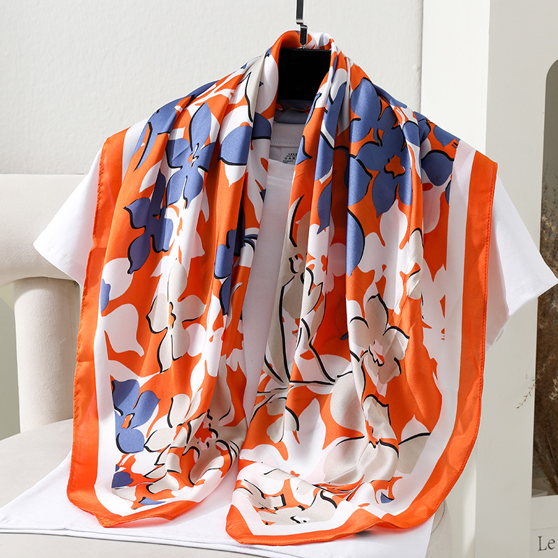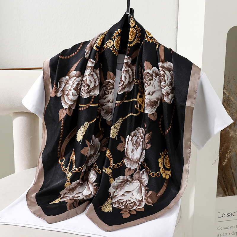 실크 스카프 여성의 봄과 여름 새로운 새틴 모방 실크 90CM 스퀘어 스카프 한국식 올매치 프로 스카프 인쇄 스카프스토어 가기