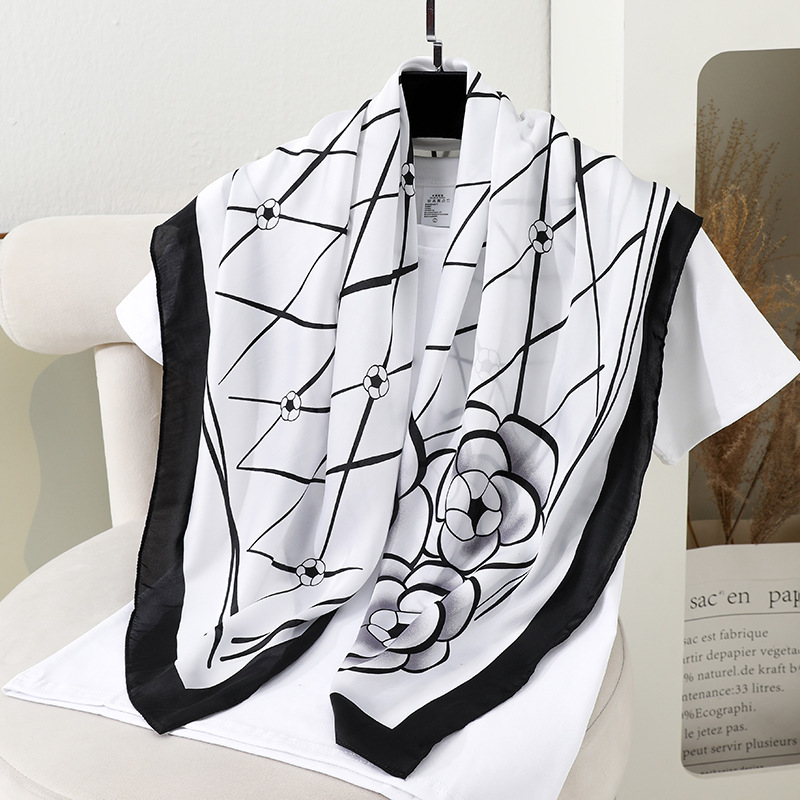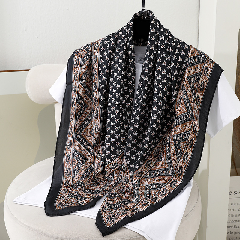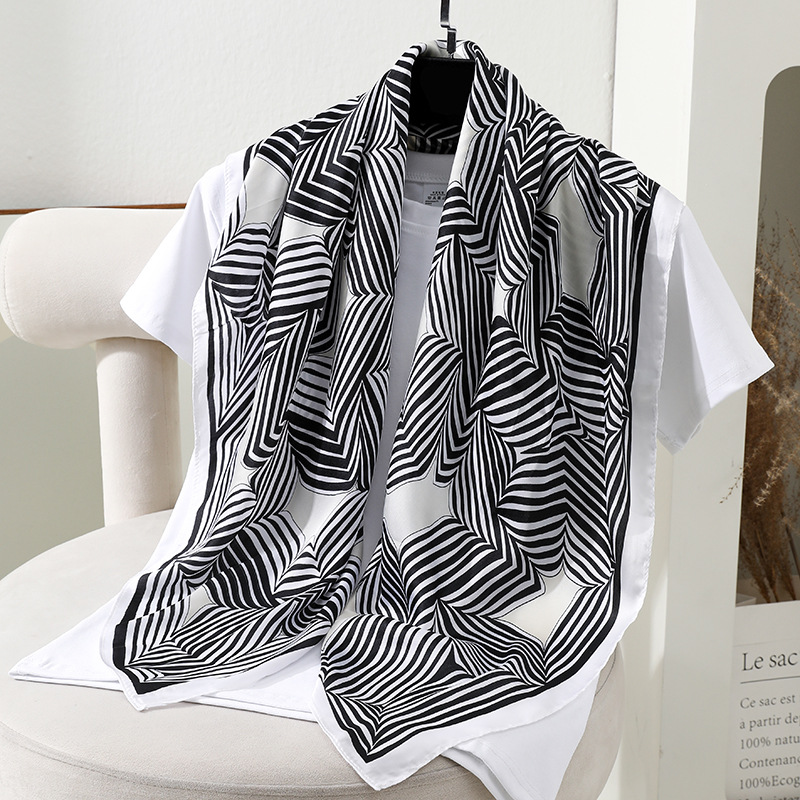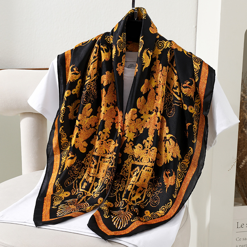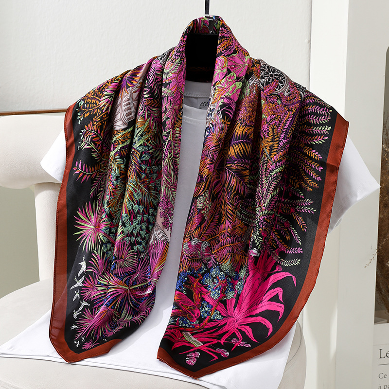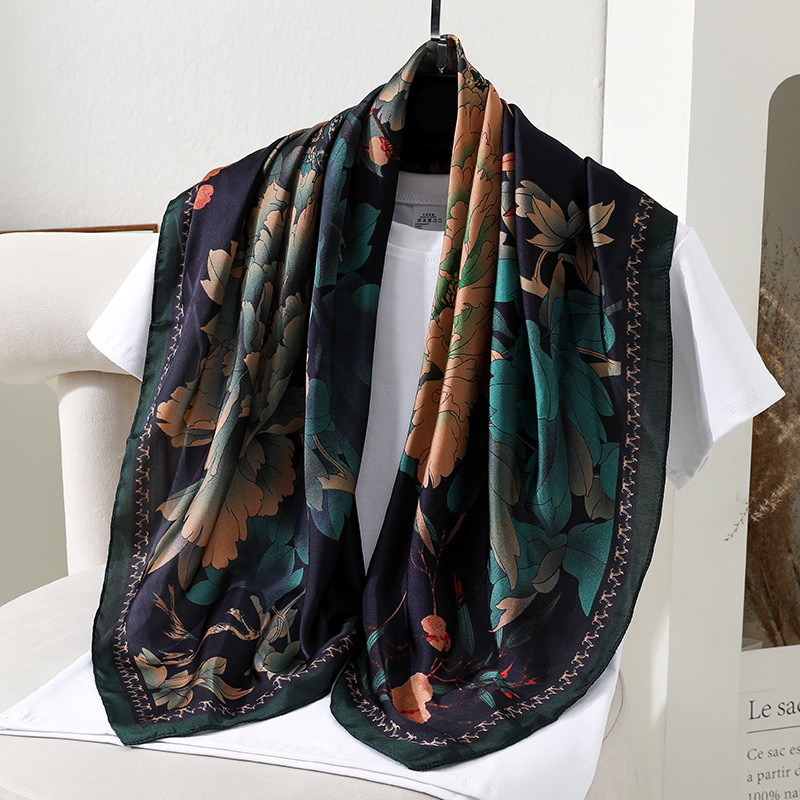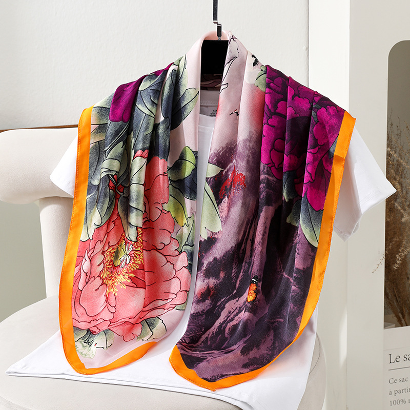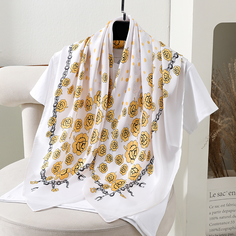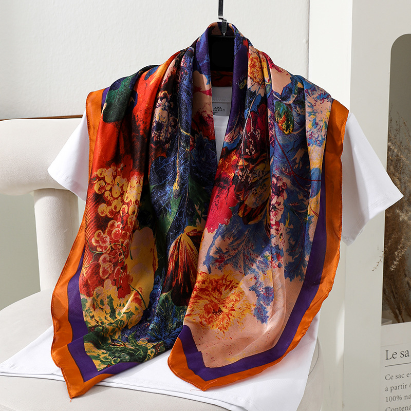 실크 스카프 여성의 봄과 여름 새로운 새틴 모방 실크 90CM 스퀘어 스카프 한국식 올매치 프로 스카프 인쇄 스카프스토어 가기