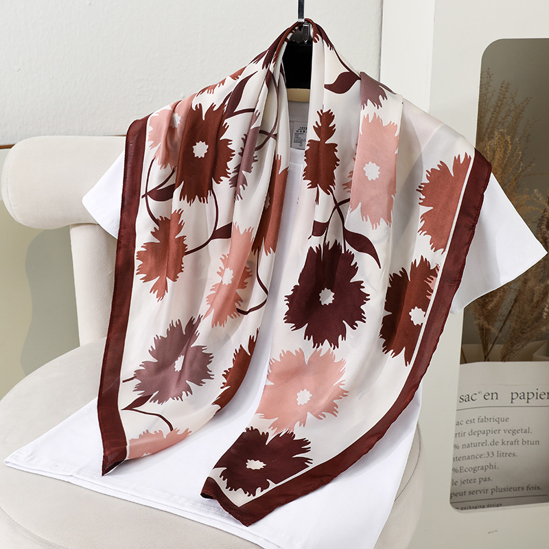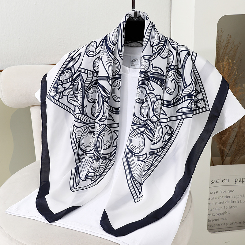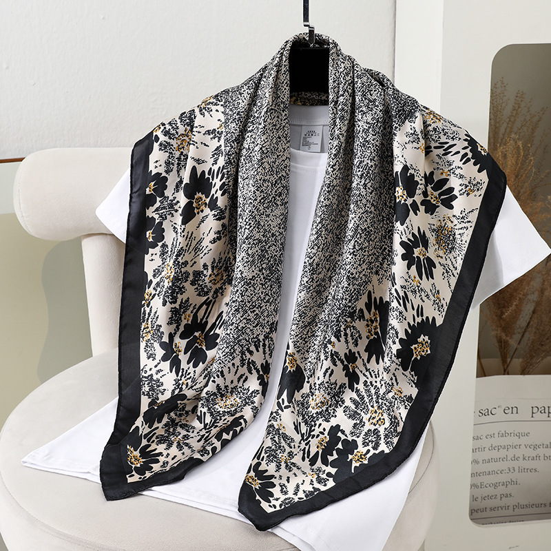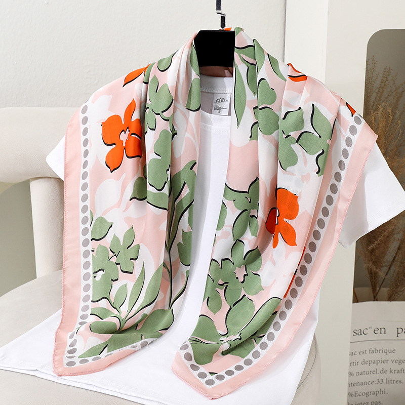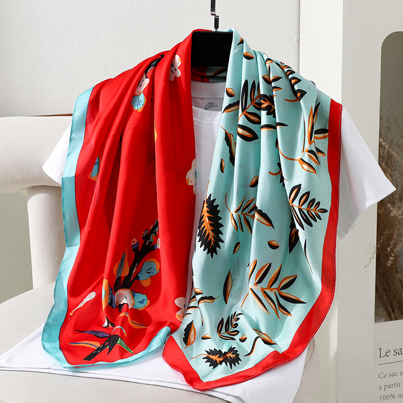 실크 스카프 여성의 봄과 여름 새로운 새틴 모방 실크 90CM 스퀘어 스카프 한국식 올매치 프로 스카프 인쇄 스카프