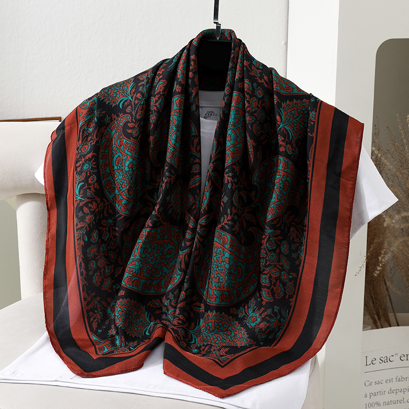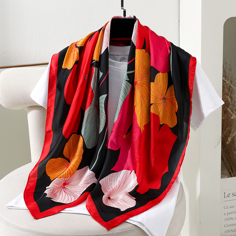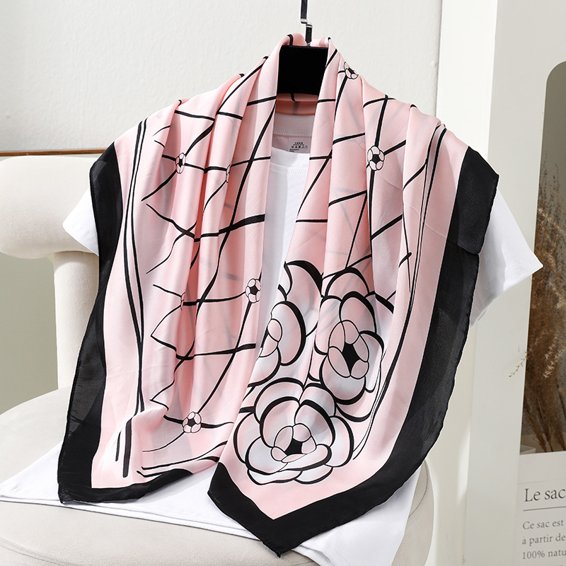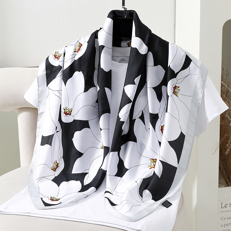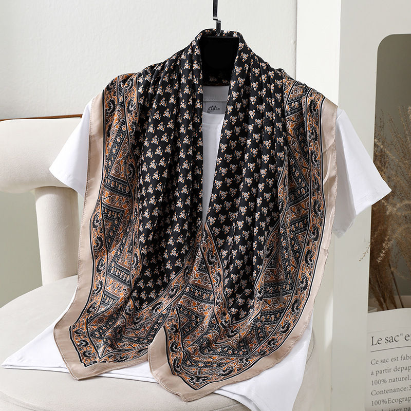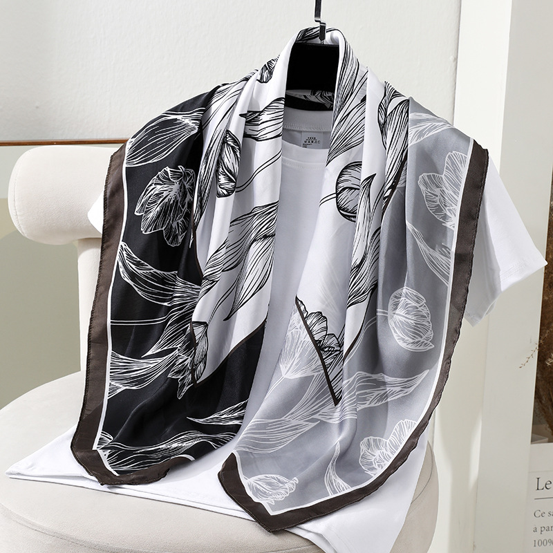 실크 스카프 여성의 봄과 여름 새로운 새틴 모방 실크 90CM 스퀘어 스카프 한국식 올매치 프로 스카프 인쇄 스카프