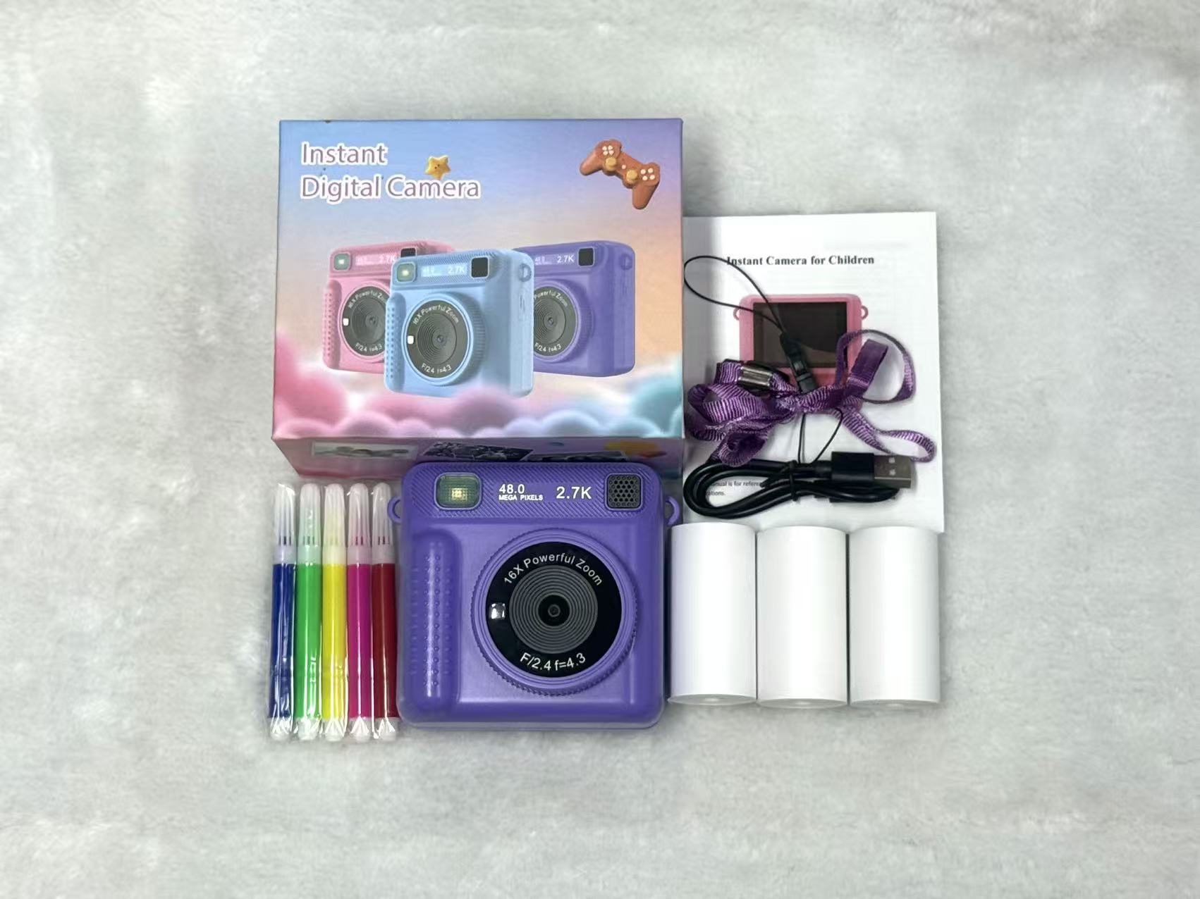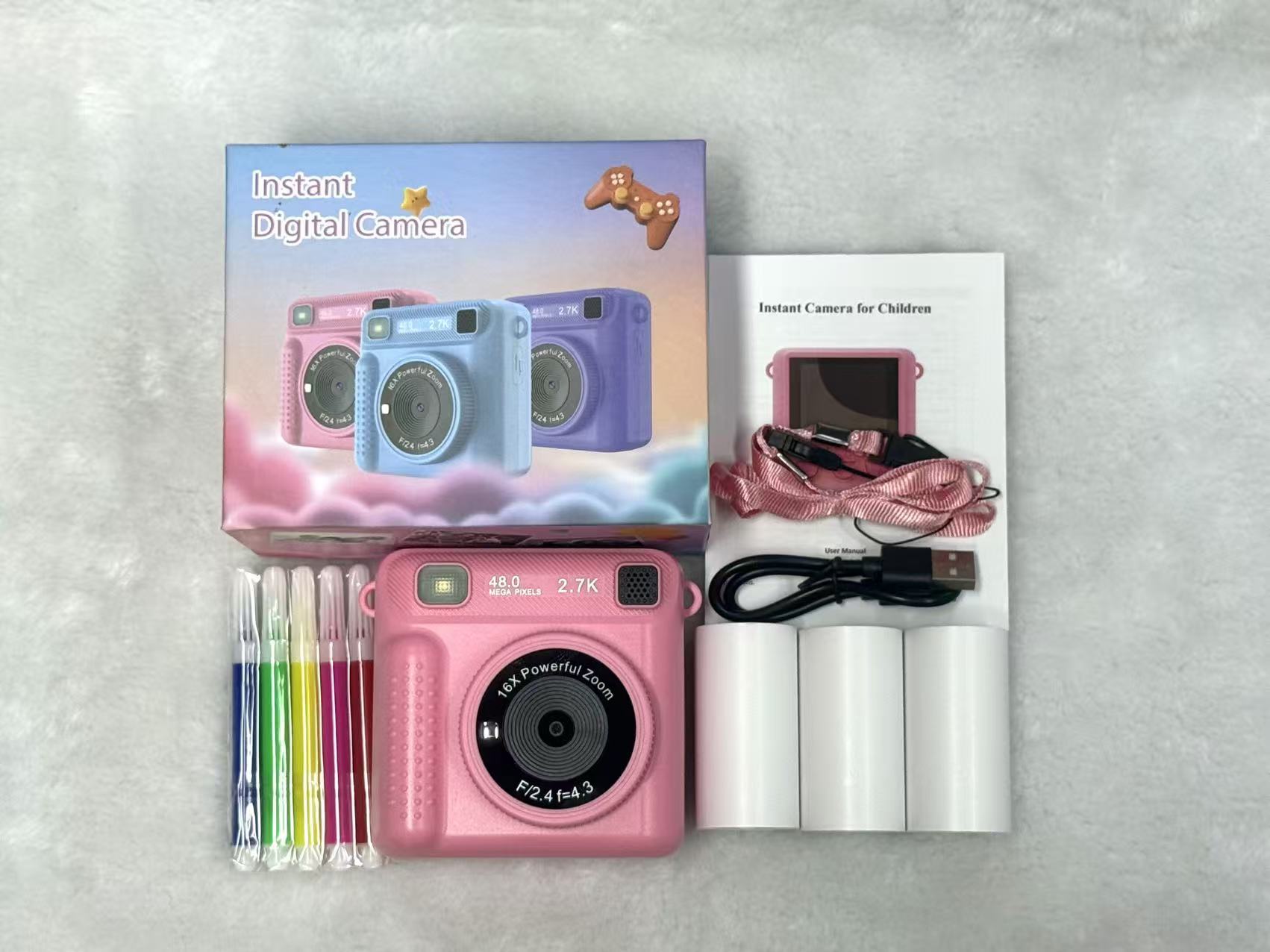 새로운 어린이 HD 인쇄 카메라 2.4 인치 HD 스크린 휴대용 무료 촬영 카메라