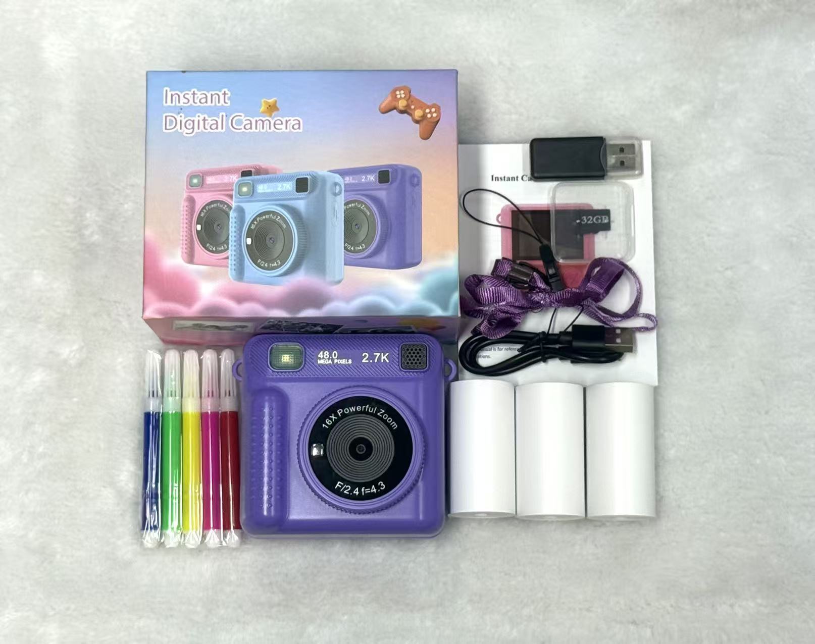 • 보라색(인쇄 카메라) + 32G 메모리 카드 + 카드 리더기