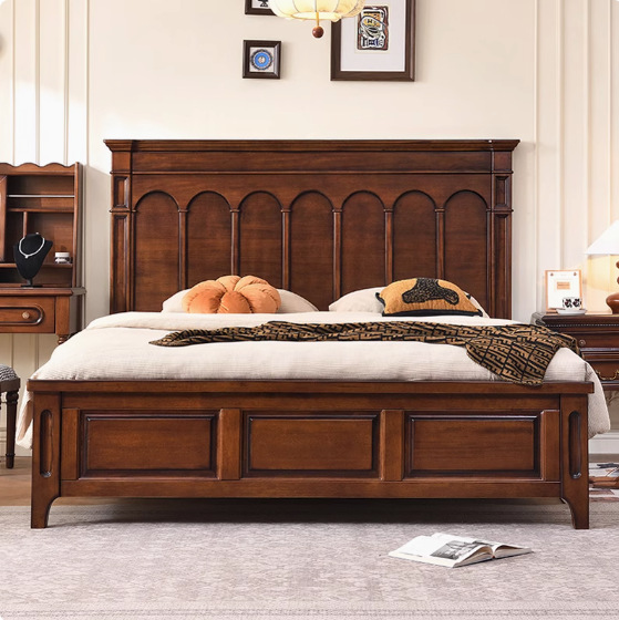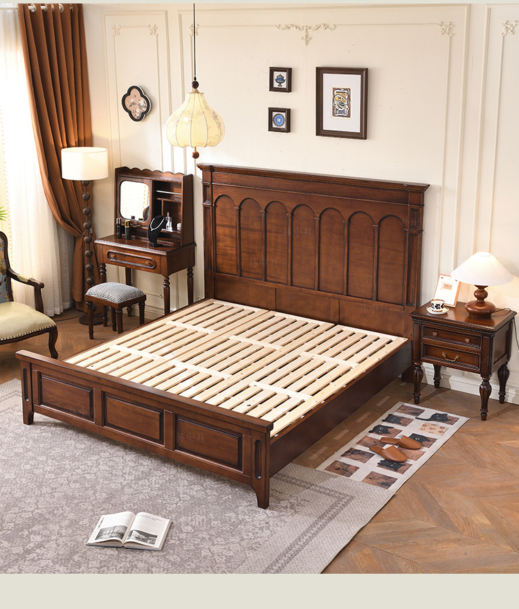 새로운 골동품 스타일 모든 단단한 나무 침대 마스터 침실 웨딩 침대 프랑스 복고풍 1.8 m 더블 큰 침대 작은 아파트 미국 스타일