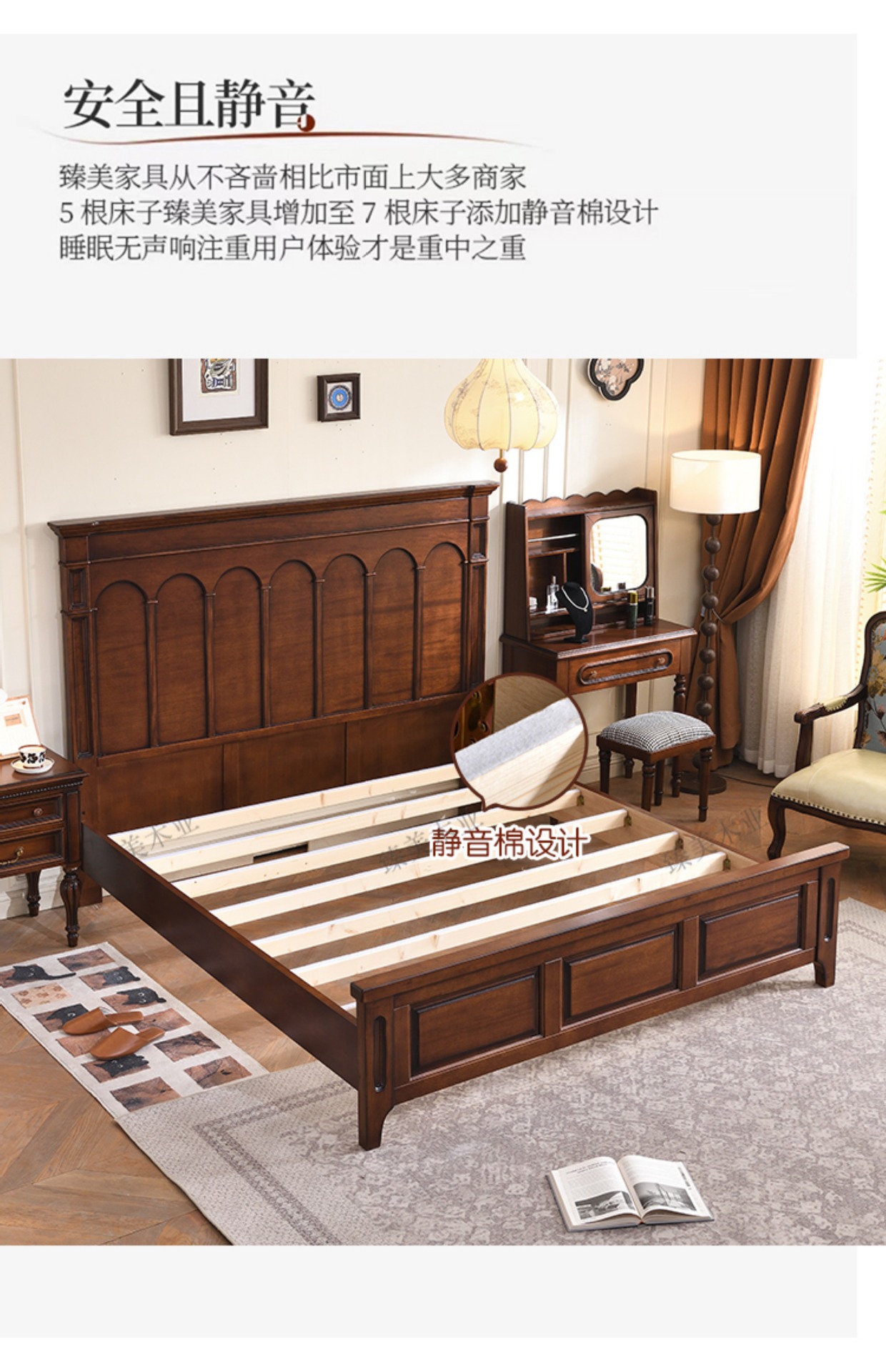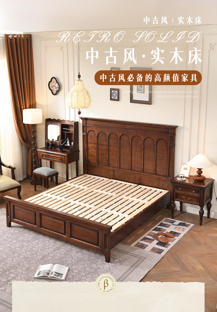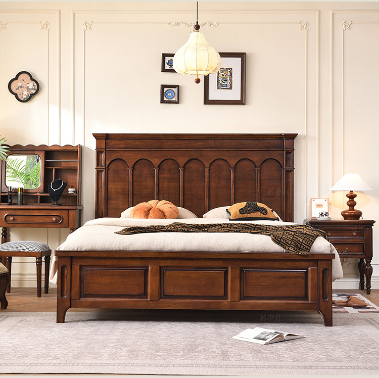 새로운 골동품 스타일 모든 단단한 나무 침대 마스터 침실 웨딩 침대 프랑스 복고풍 1.8 m 더블 큰 침대 작은 아파트 미국 스타일스토어 가기