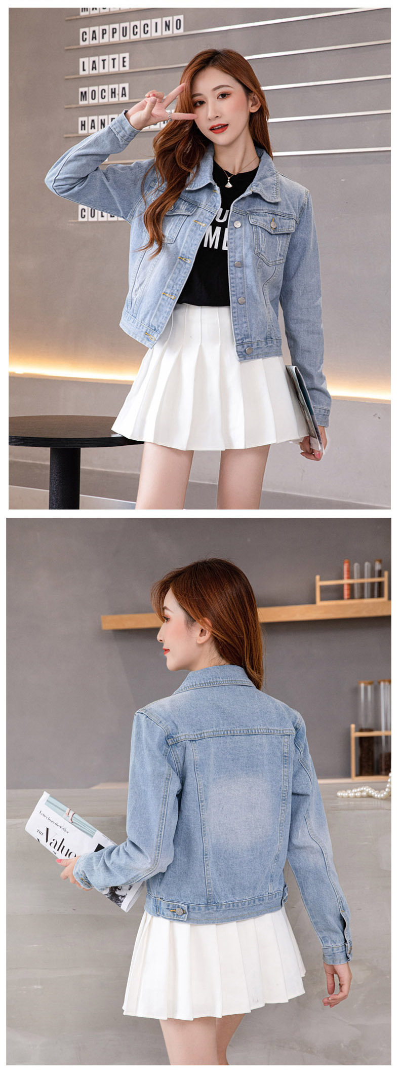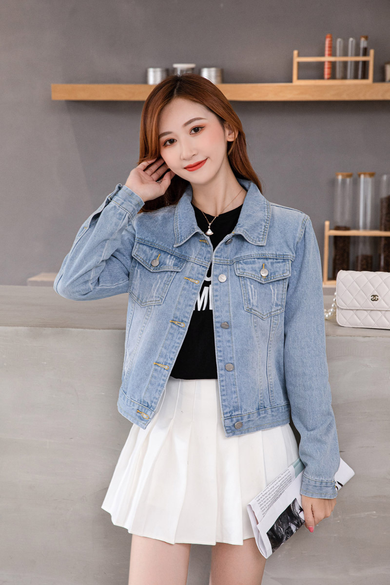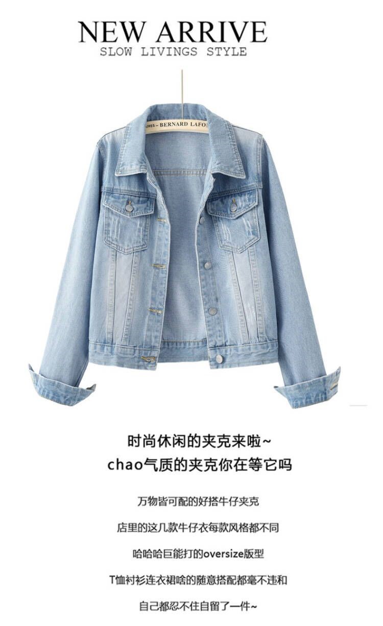 인터넷 연예인 폭발성 데님 재킷 여자 작은 데님 재킷 홍콩 맛 작업 재킷 올 매치 학생 재킷스토어 가기