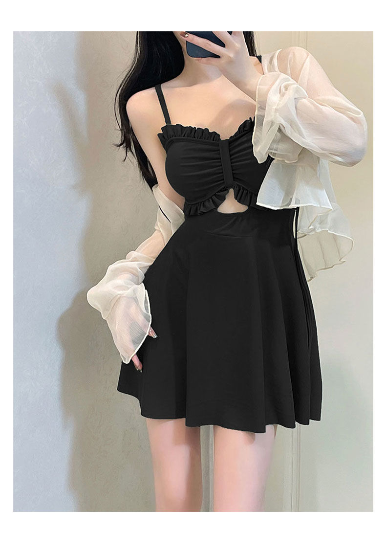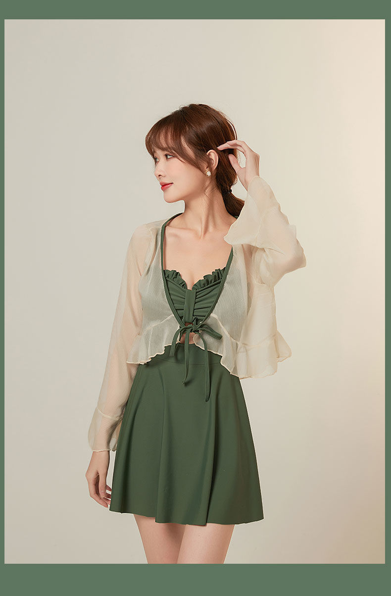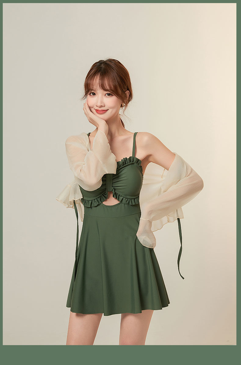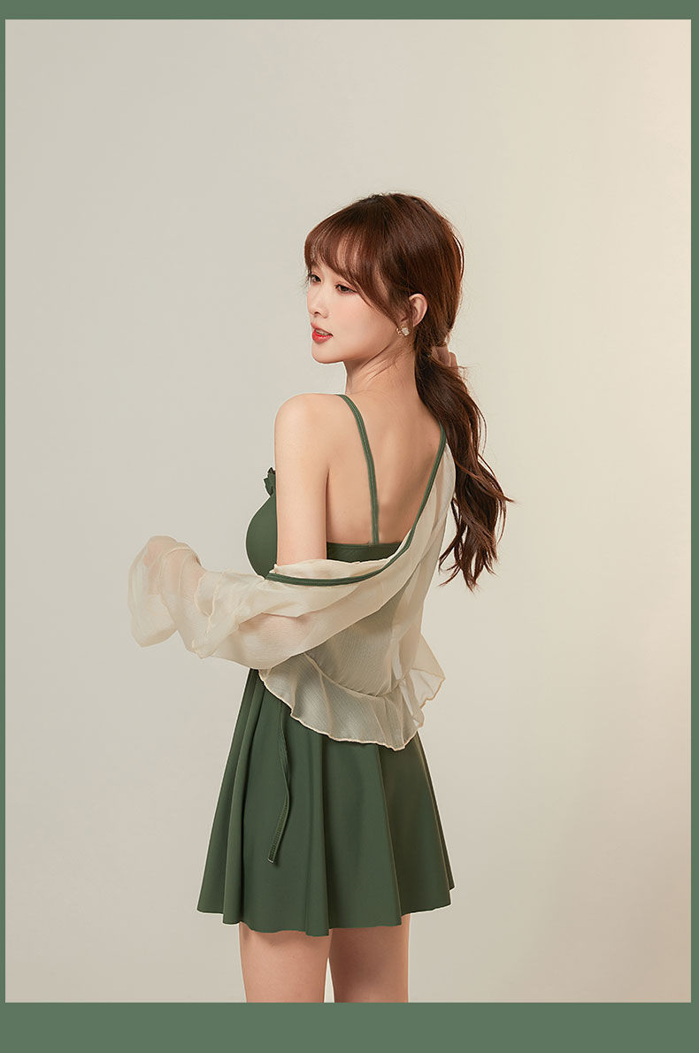 여름 신간 스타일 수영복 여성 투피스 세트 슬리밍 배꼽 커버 보수적 인 온천 수영복