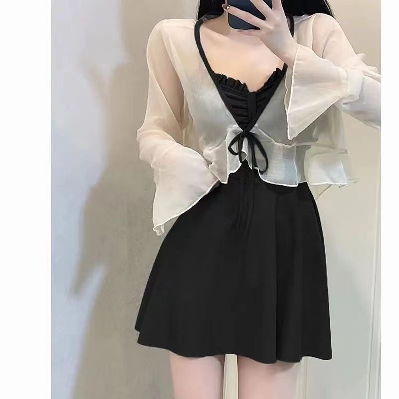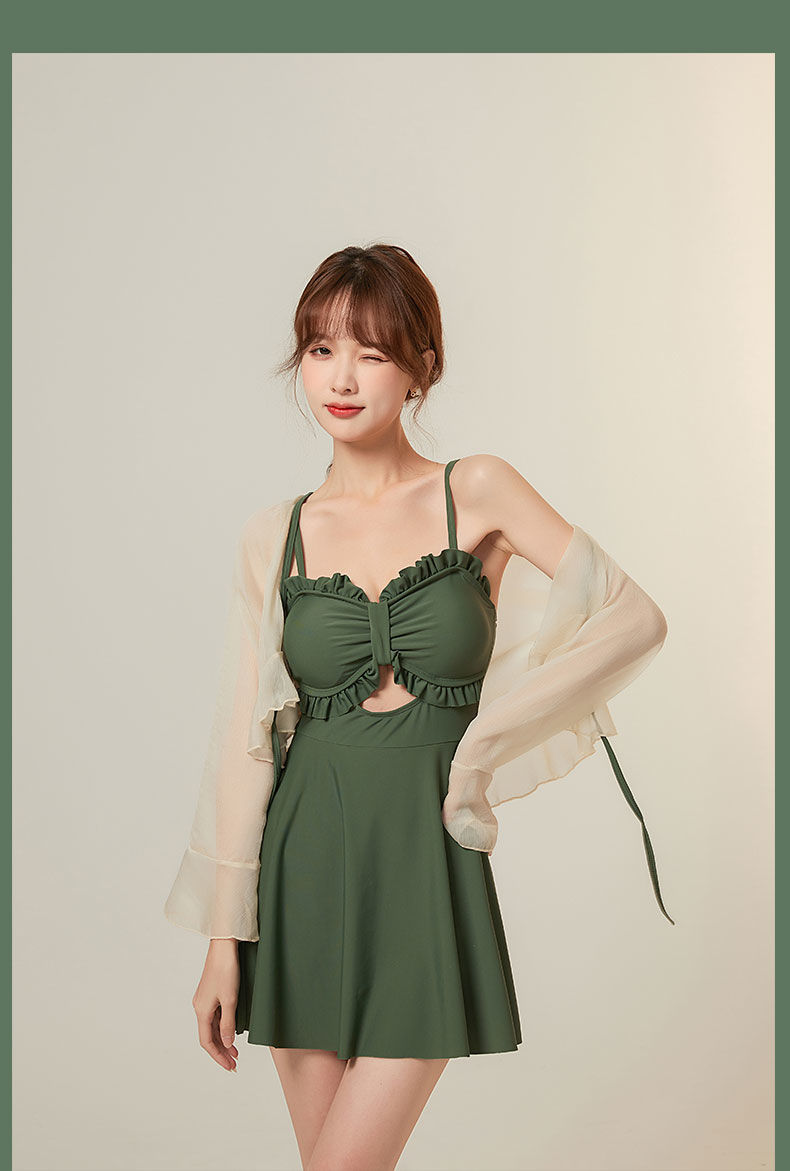여름 신간 스타일 수영복 여성 투피스 세트 슬리밍 배꼽 커버 보수적 인 온천 수영복스토어 가기