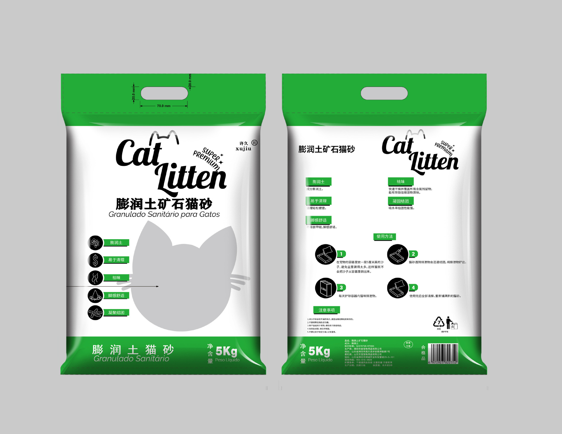 • 벤토나이트 광석 분쇄 고양이 모래 10kg