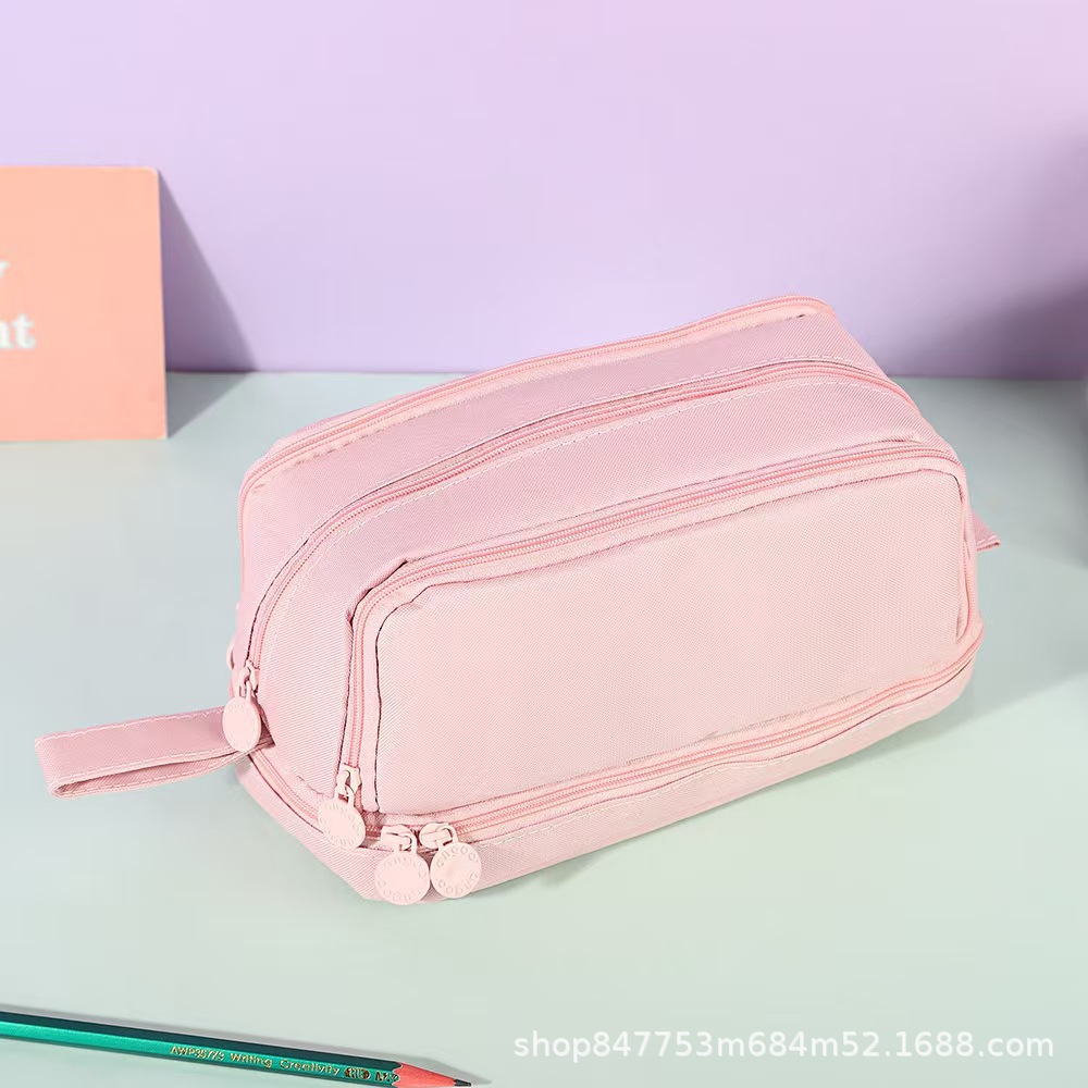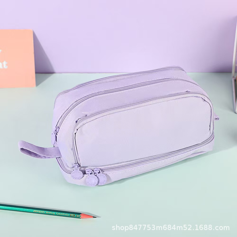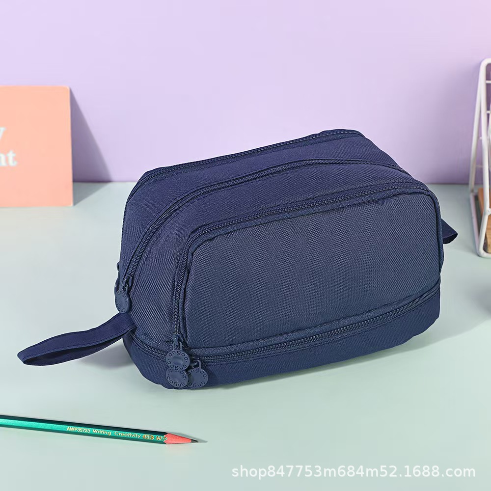 더블 레이어 더블 윈도우 연필 케이스 간단한 솔리드 컬러 대용량 다기능 저장 가방 초등학생을위한 더러운 저항하는 문구 보관 가방스토어 가기