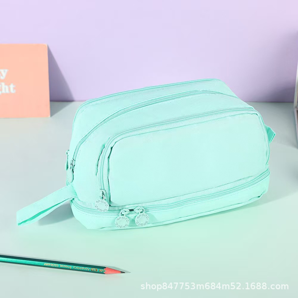 더블 레이어 더블 윈도우 연필 케이스 간단한 솔리드 컬러 대용량 다기능 저장 가방 초등학생을위한 더러운 저항하는 문구 보관 가방