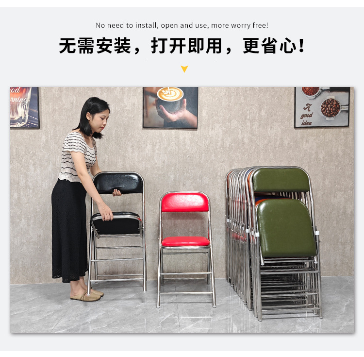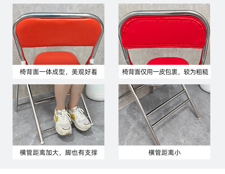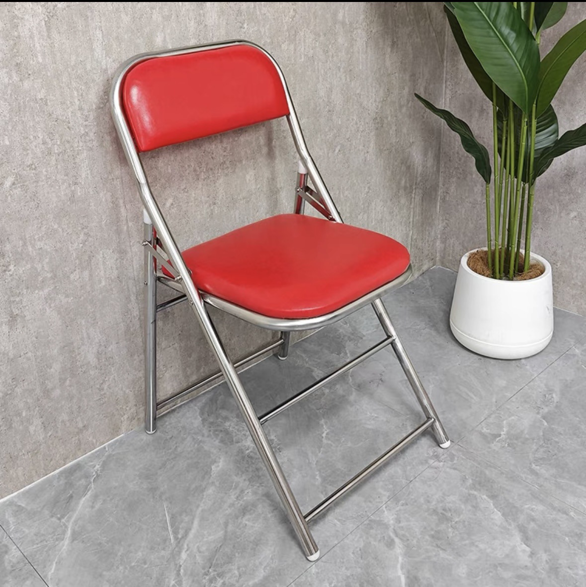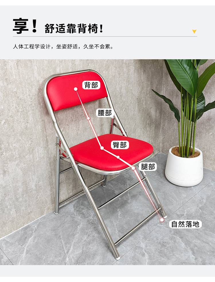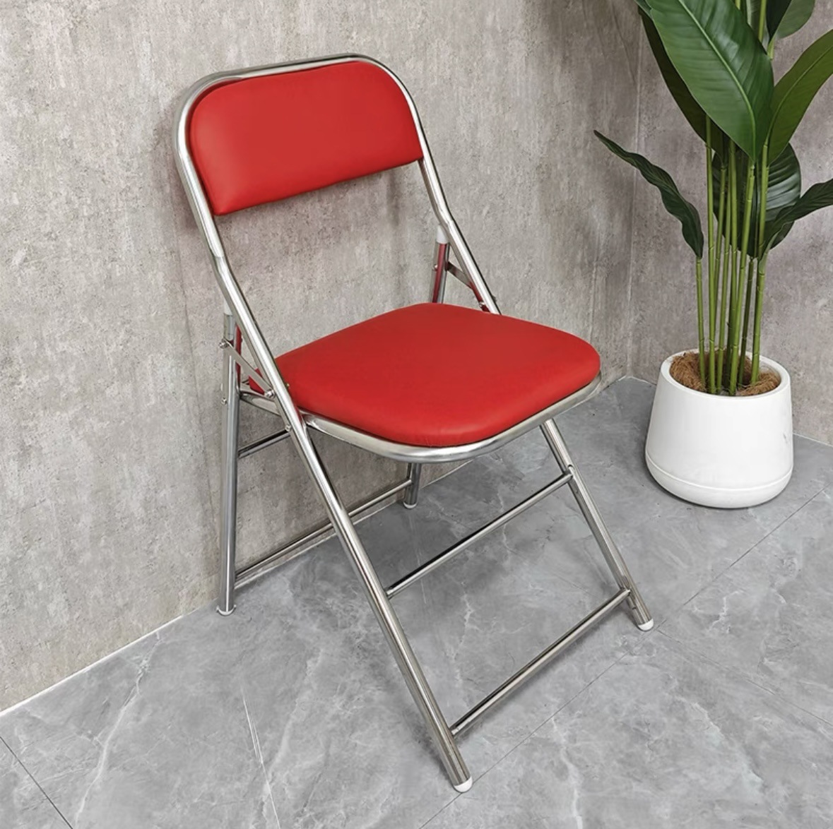 좌식 편안한 접이식 의자 등받이 의자 가정용 레드 웨딩 빈티지 시트를위한 두꺼운 스테인레스 스틸 의자스토어 가기
