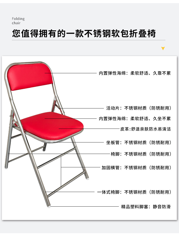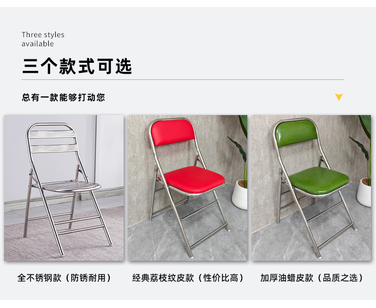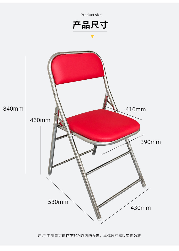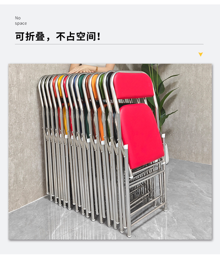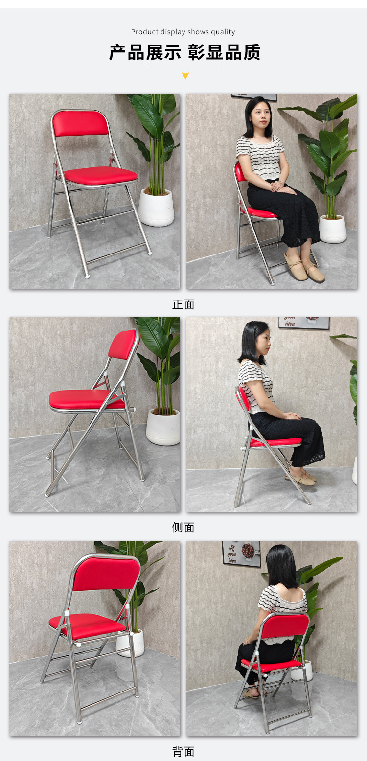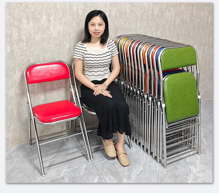 좌식 편안한 접이식 의자 등받이 의자 가정용 레드 웨딩 빈티지 시트를위한 두꺼운 스테인레스 스틸 의자스토어 가기