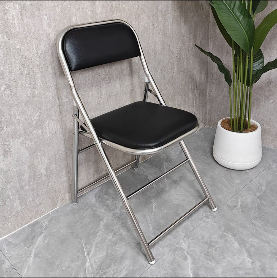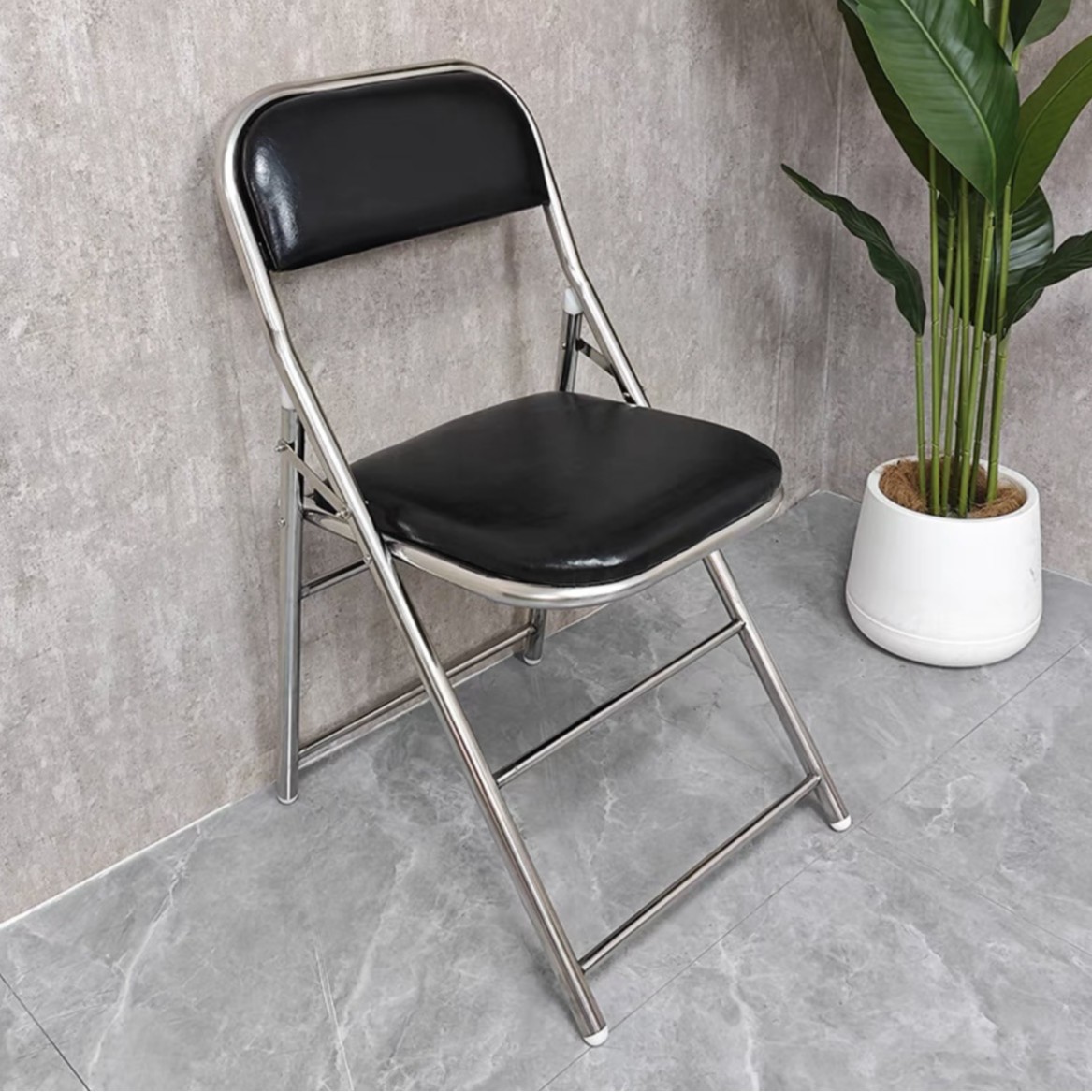• 201 블랙 접이식 의자 [리치 엠보 가죽] 1.2T 두께 강화형