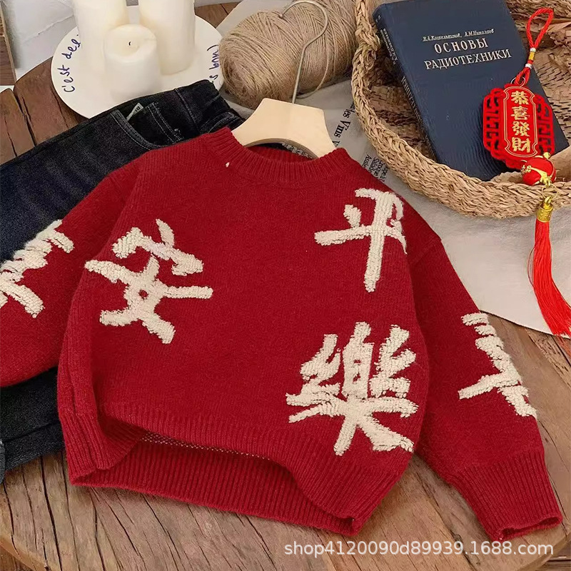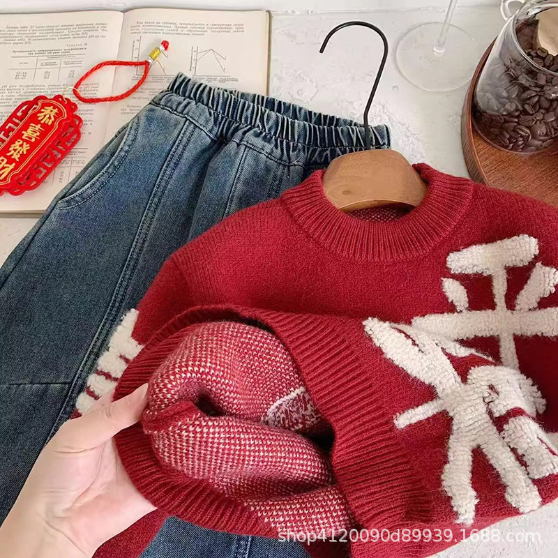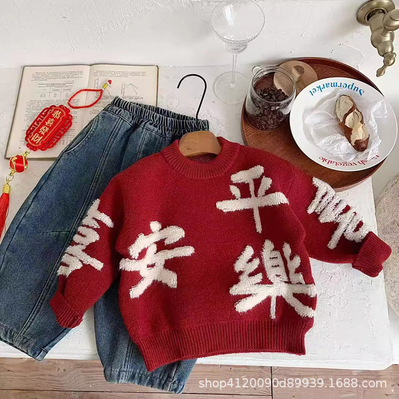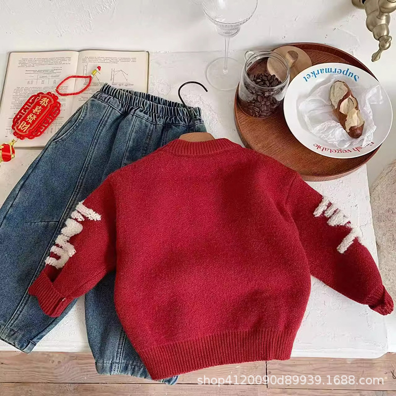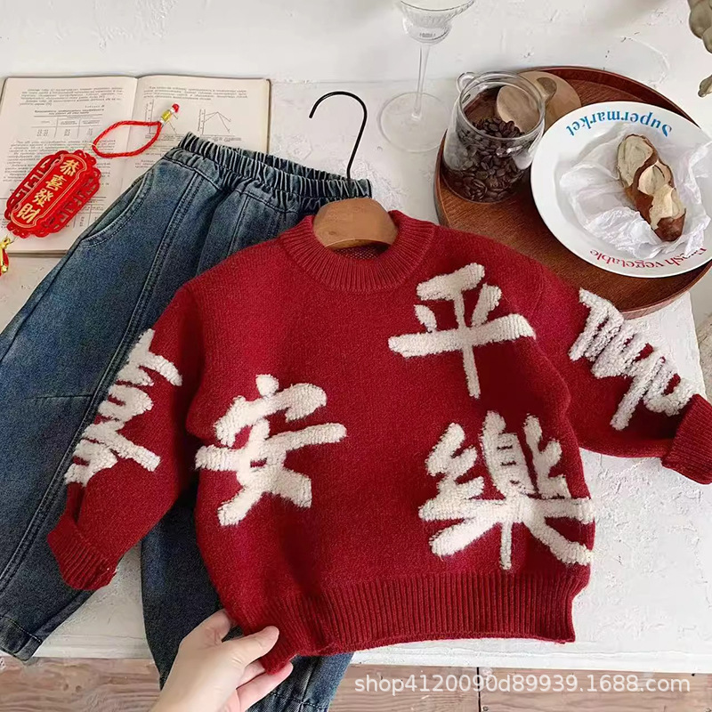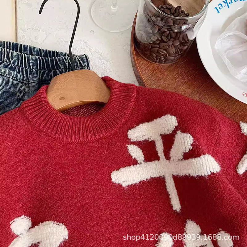 도매 어린이 니트 스웨터 가을과 겨울 남학생 최고 중소 규모 어린이 스네이크 겨울 옷 아기 레드 신년 서비스스토어 가기