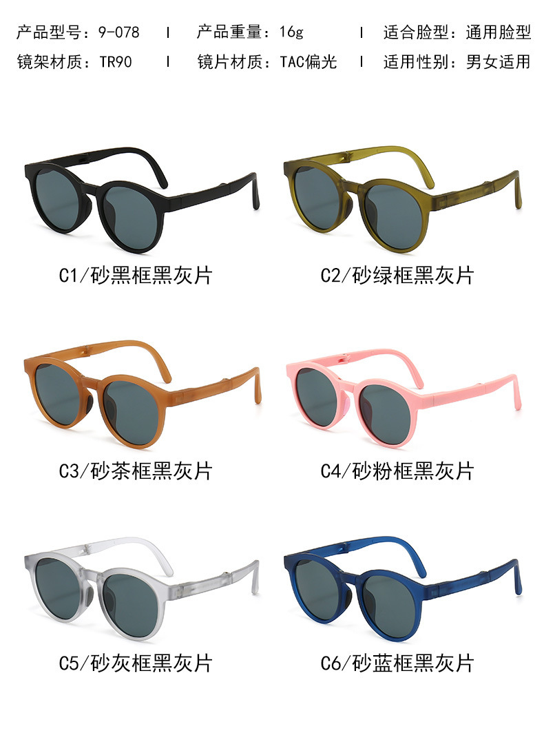 새로운 접는 어린이 선글라스 둥근 프레임 편광 선글라스 아기 선글라스 9-078 공장 도매